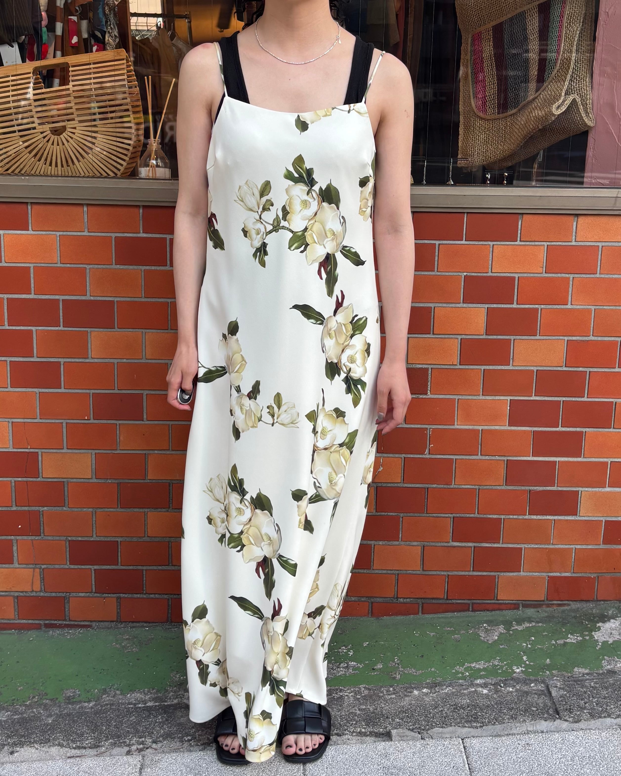 flower motif print camisole one piece