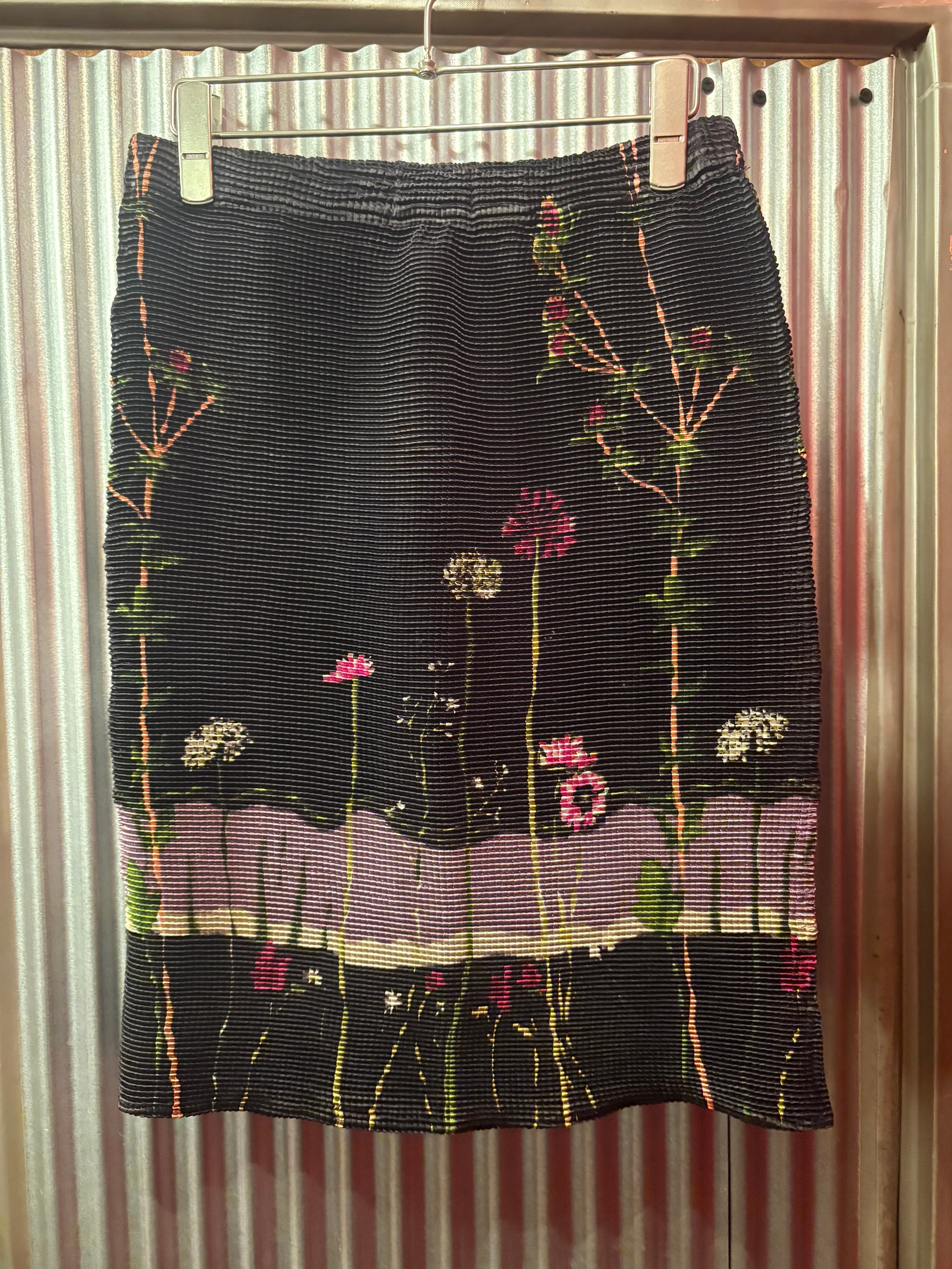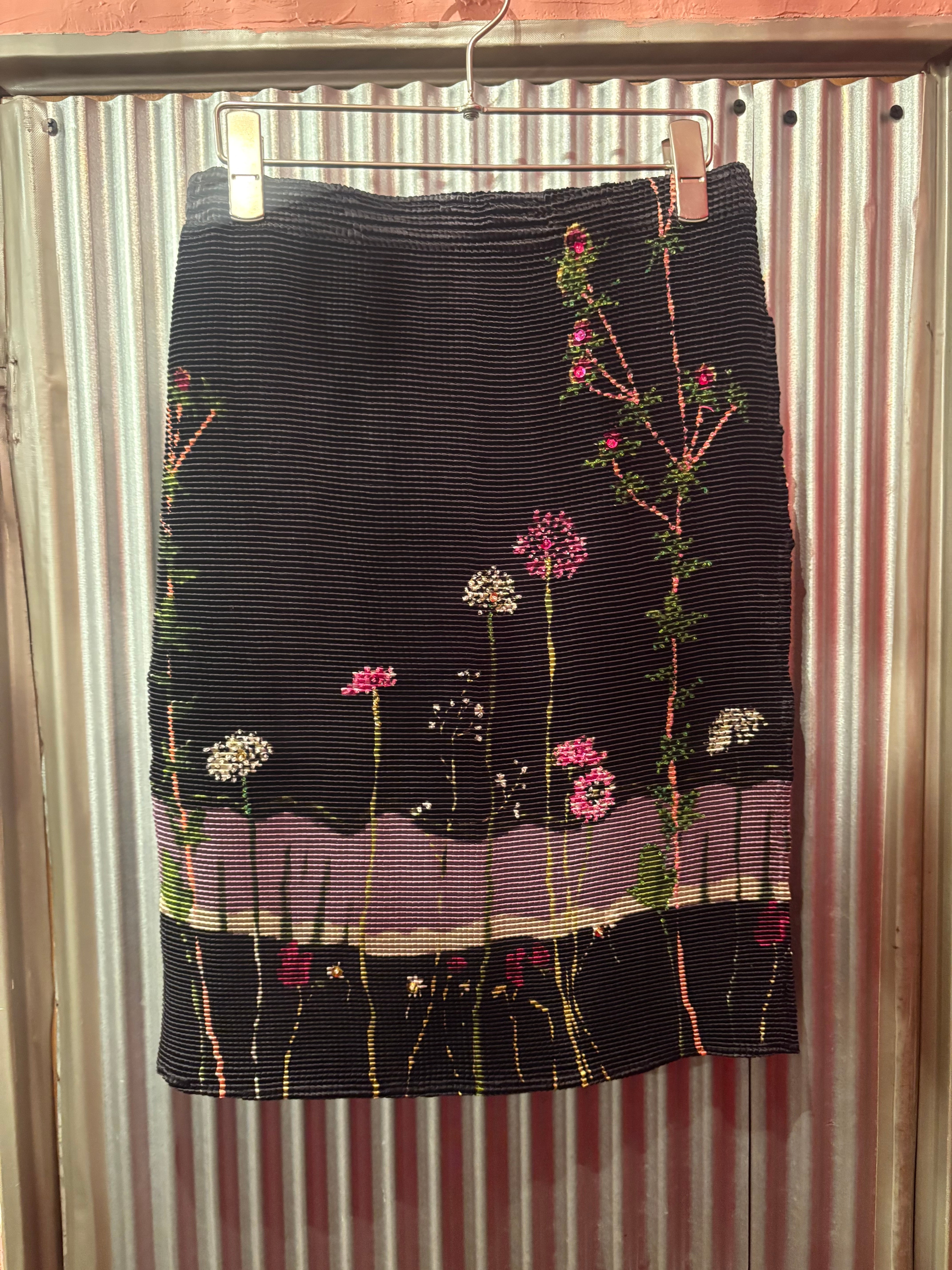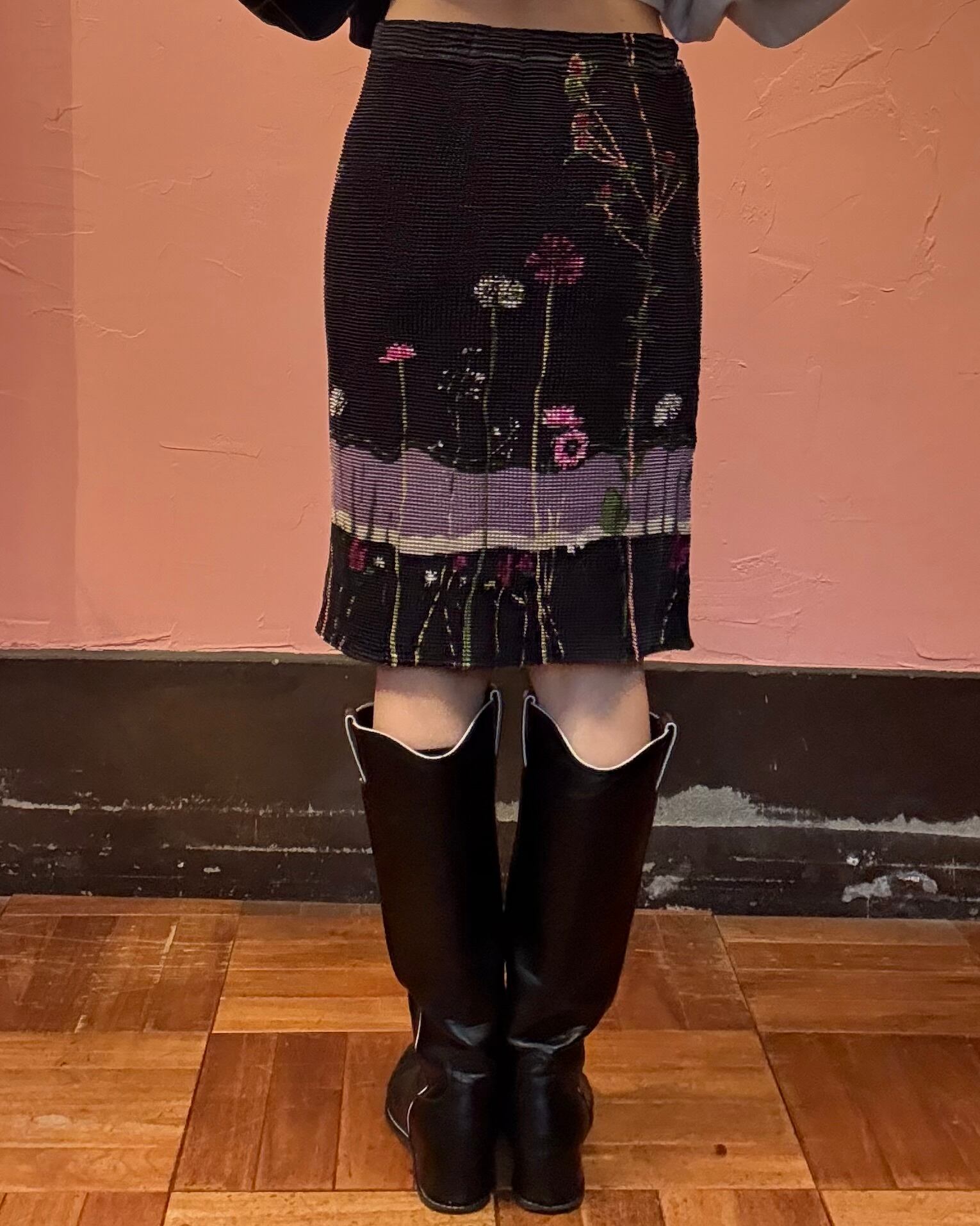 1990's flower motif pleats tight skirt