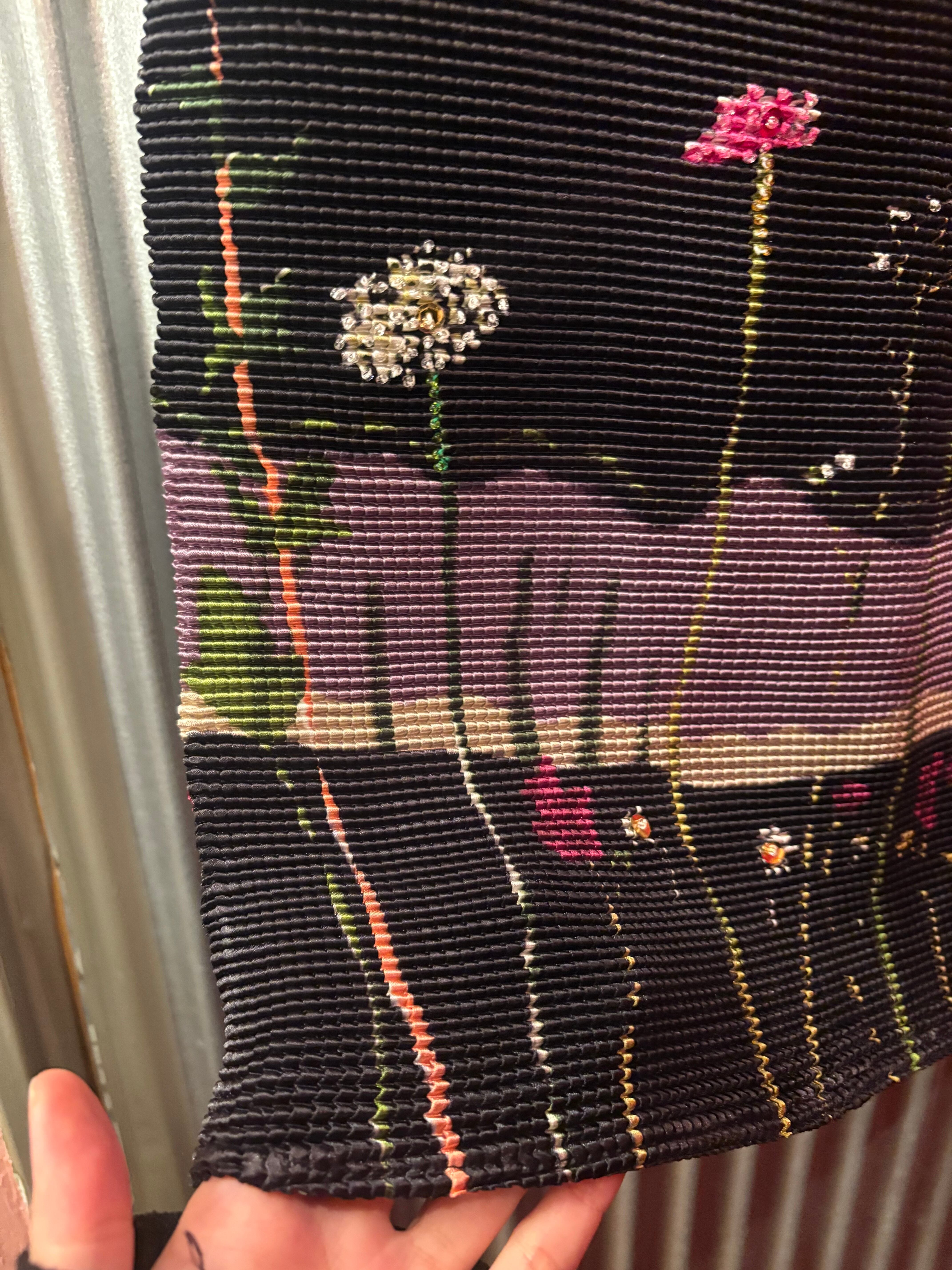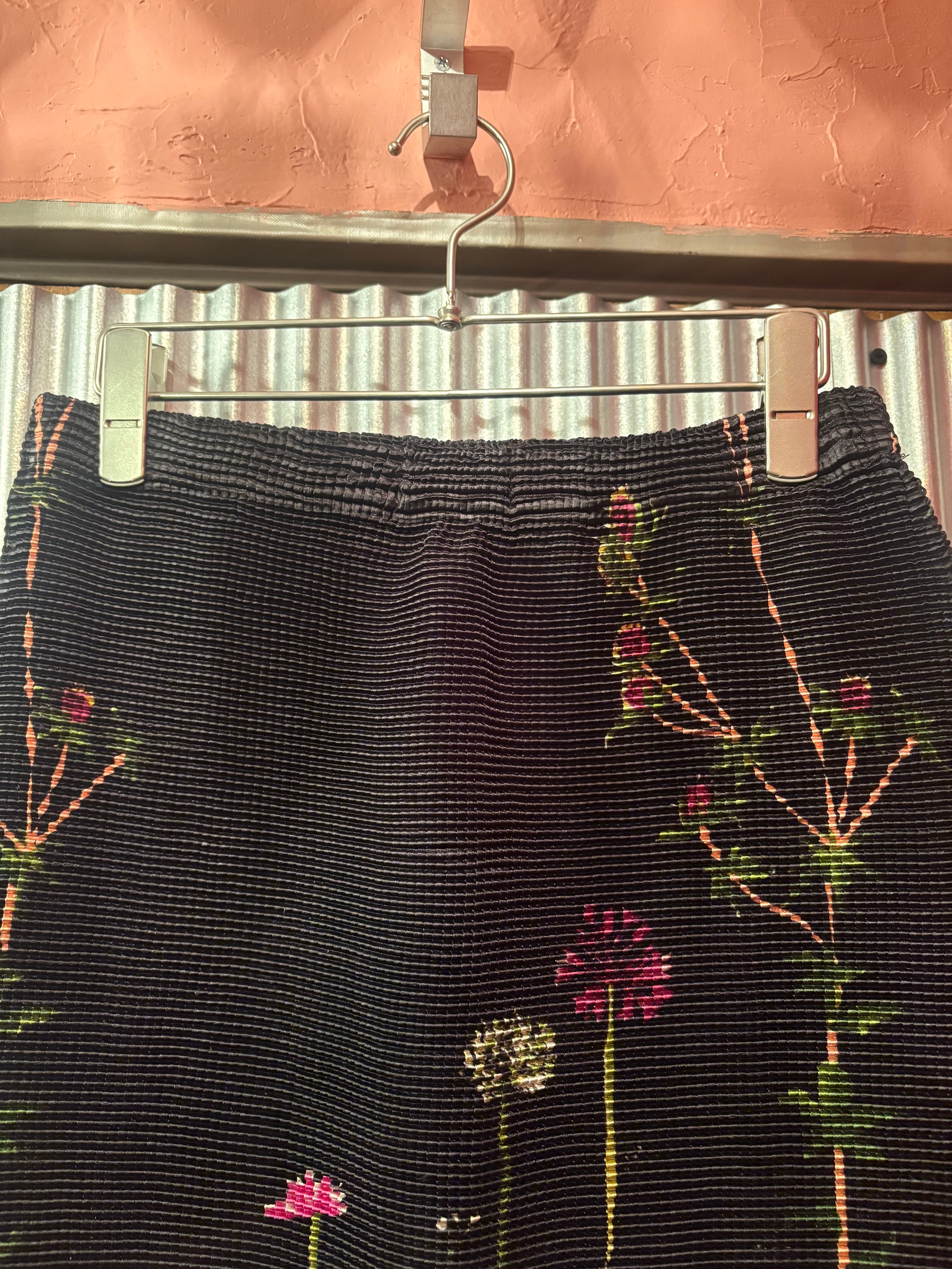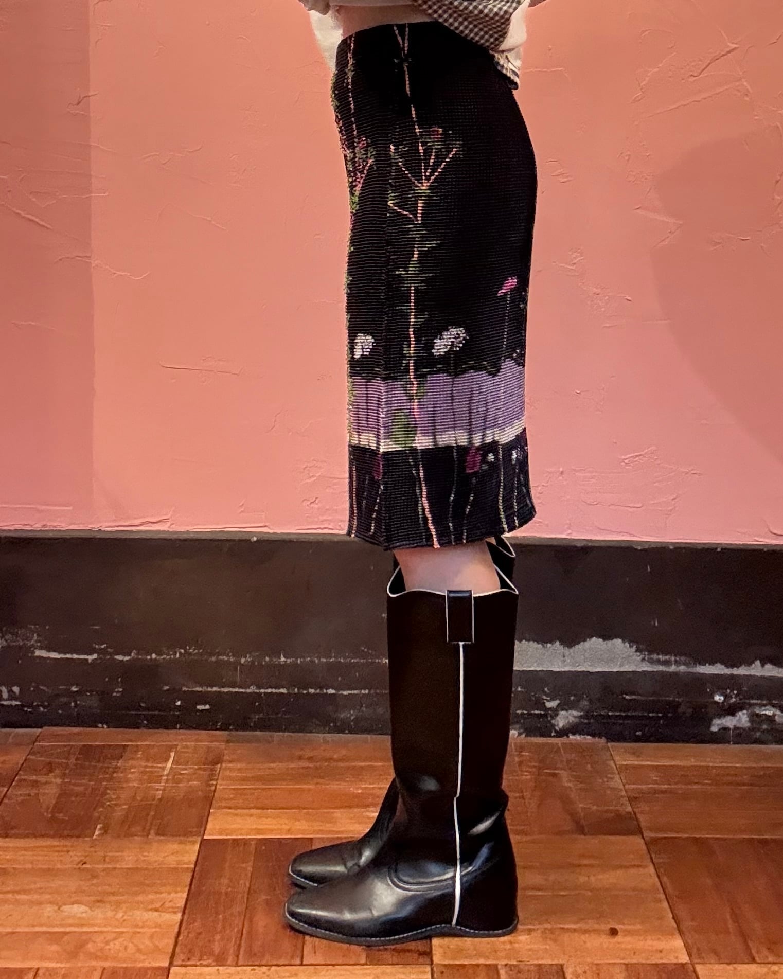 1990's flower motif pleats tight skirt