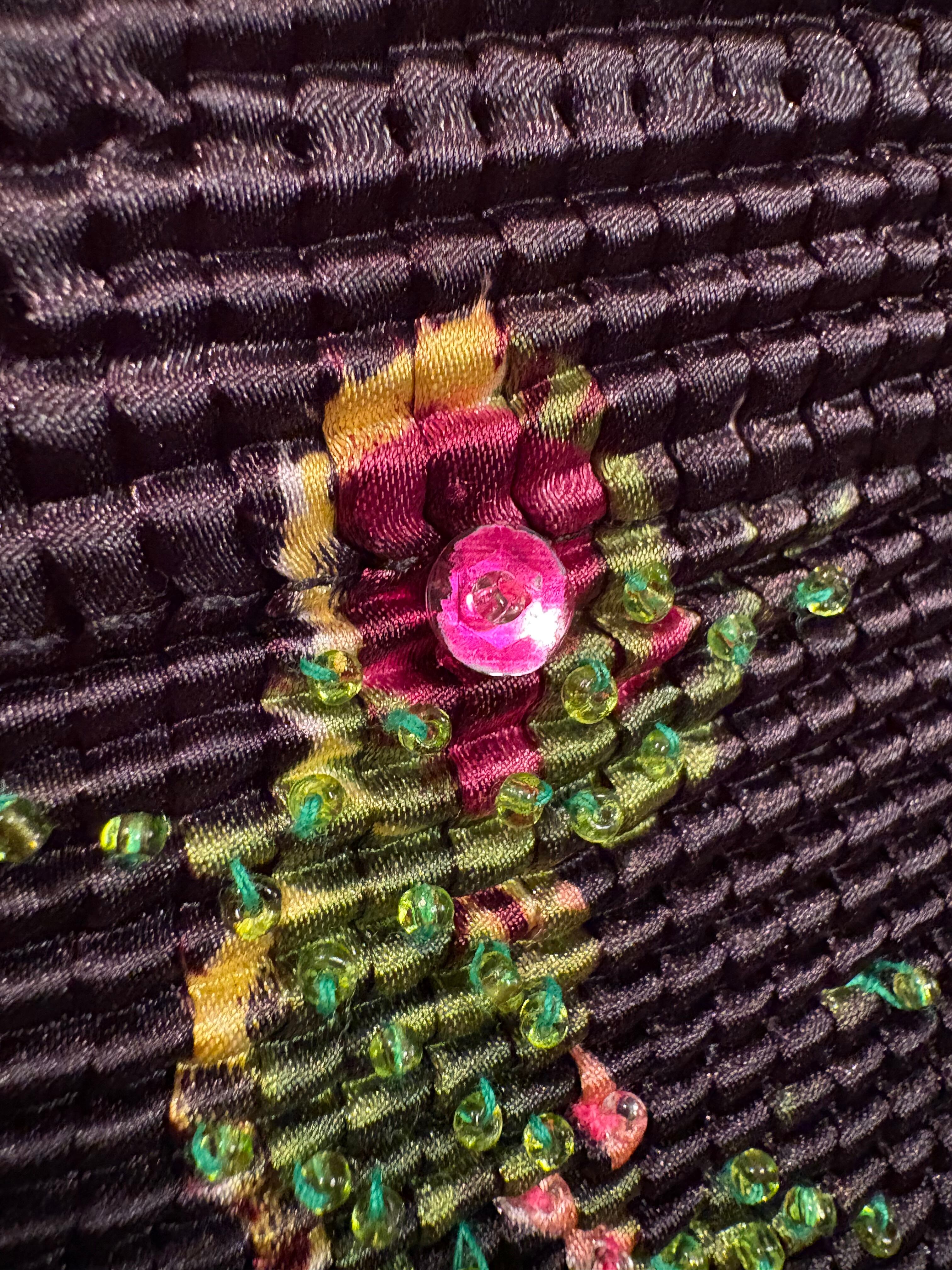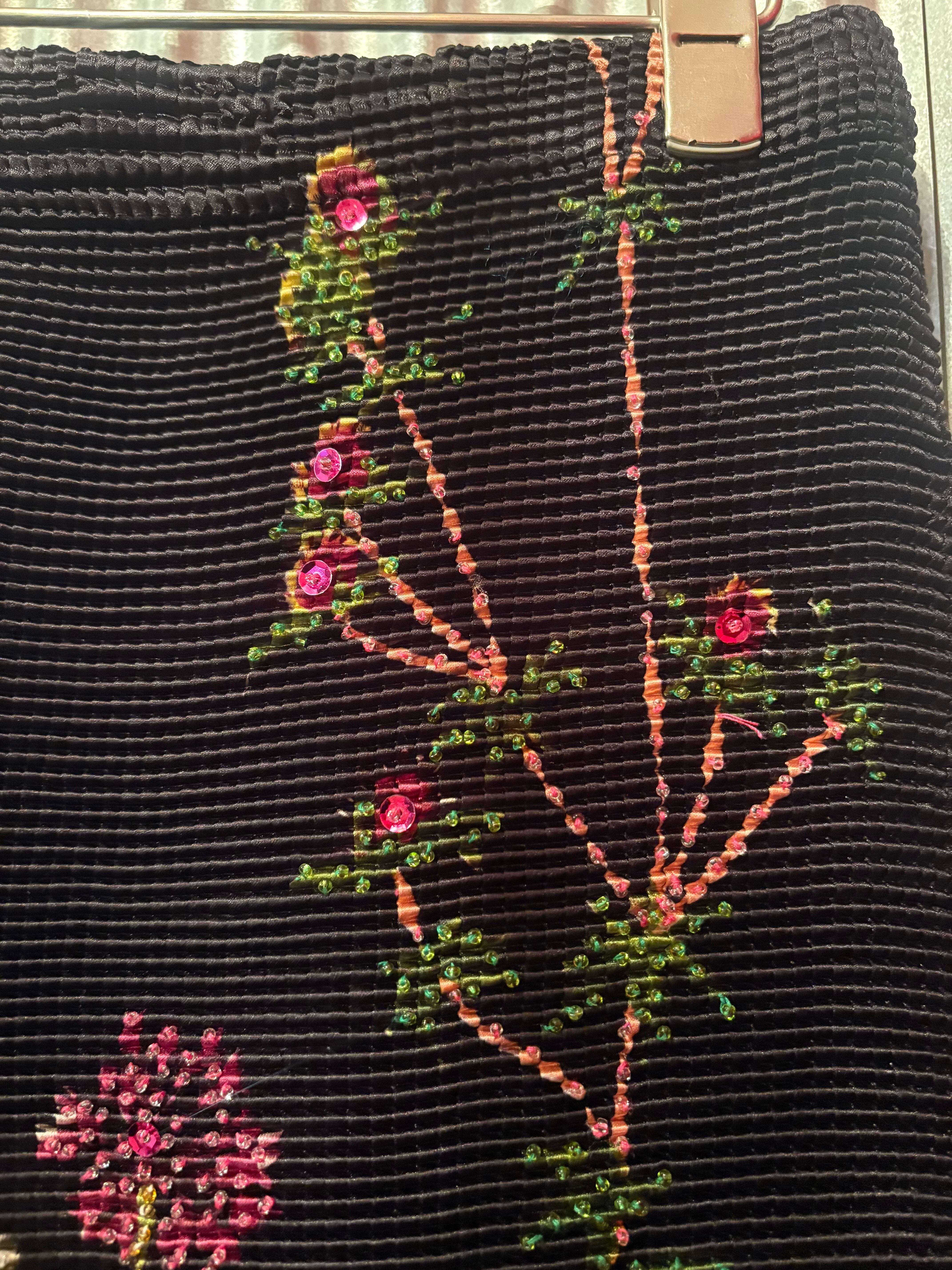 前面にビーズとスパンコールの刺繍がございます。
