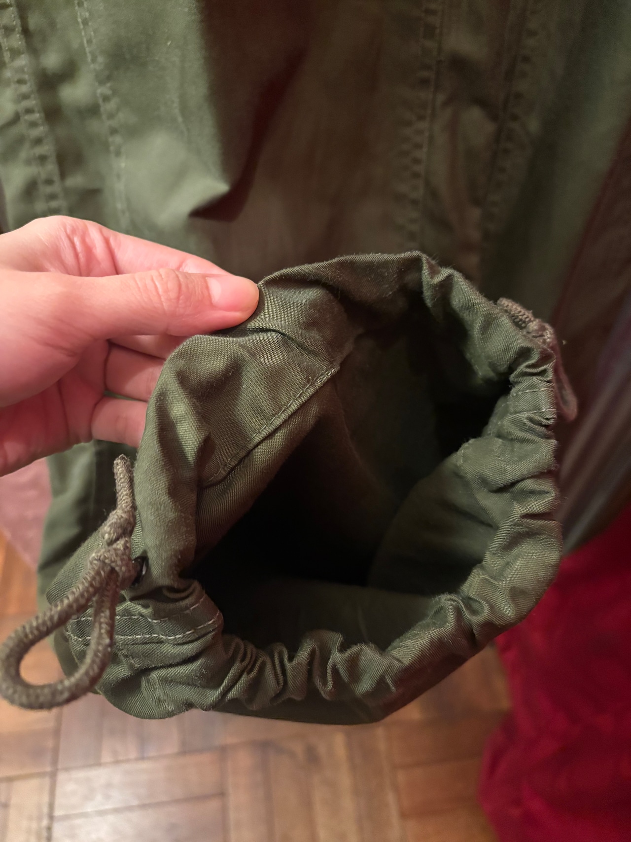 ウエストと裾に調整可能な紐がついており、お好みのサイズやシルエットにアレンジできます。