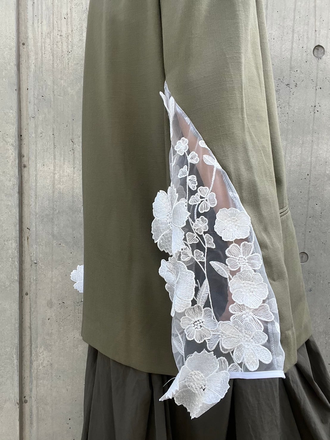 シアー部分は、お花の量やバランスを調整しながら手縫いでつけています