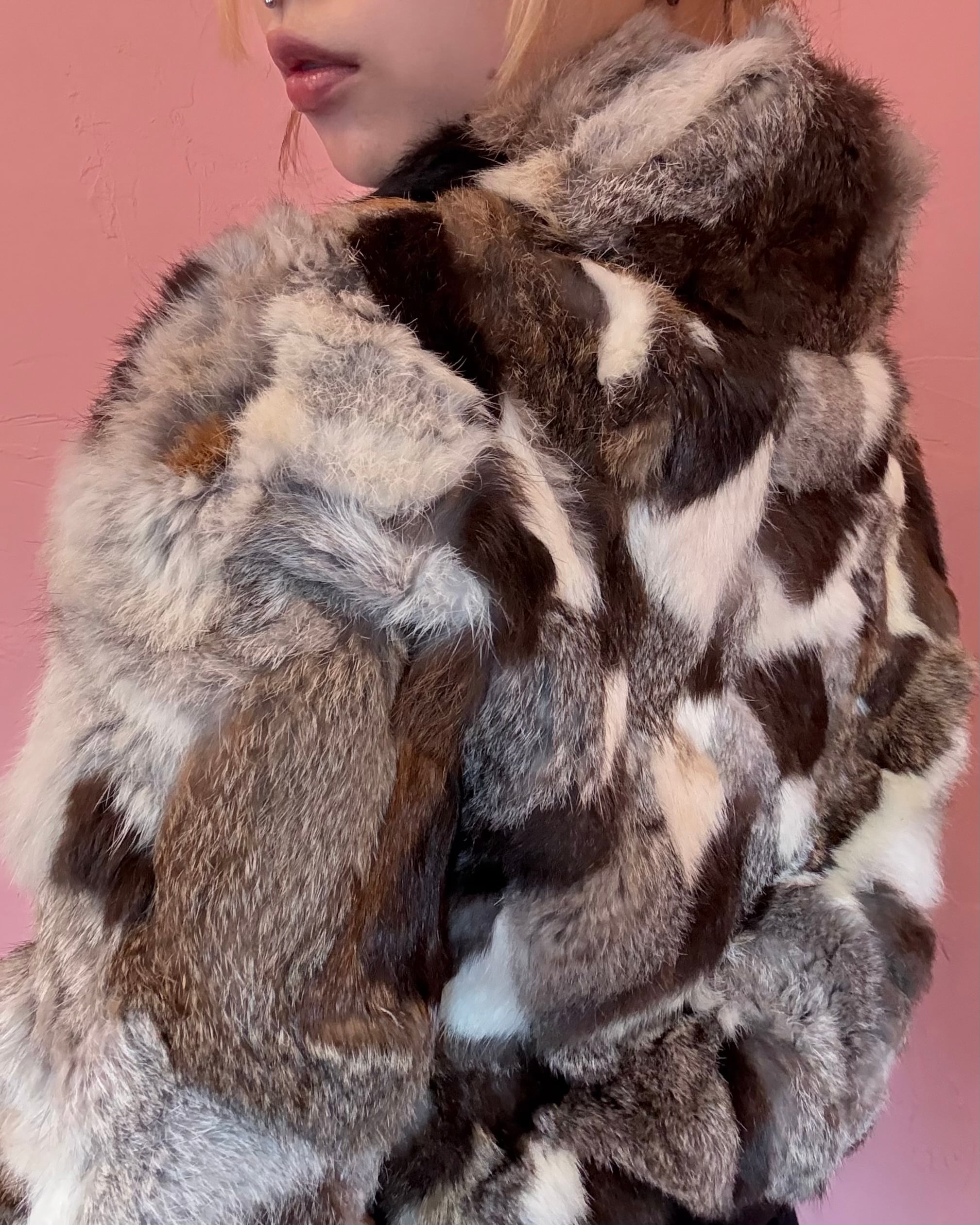 ラビットファーの柔らかい肌触りと質感が素敵な1枚です。