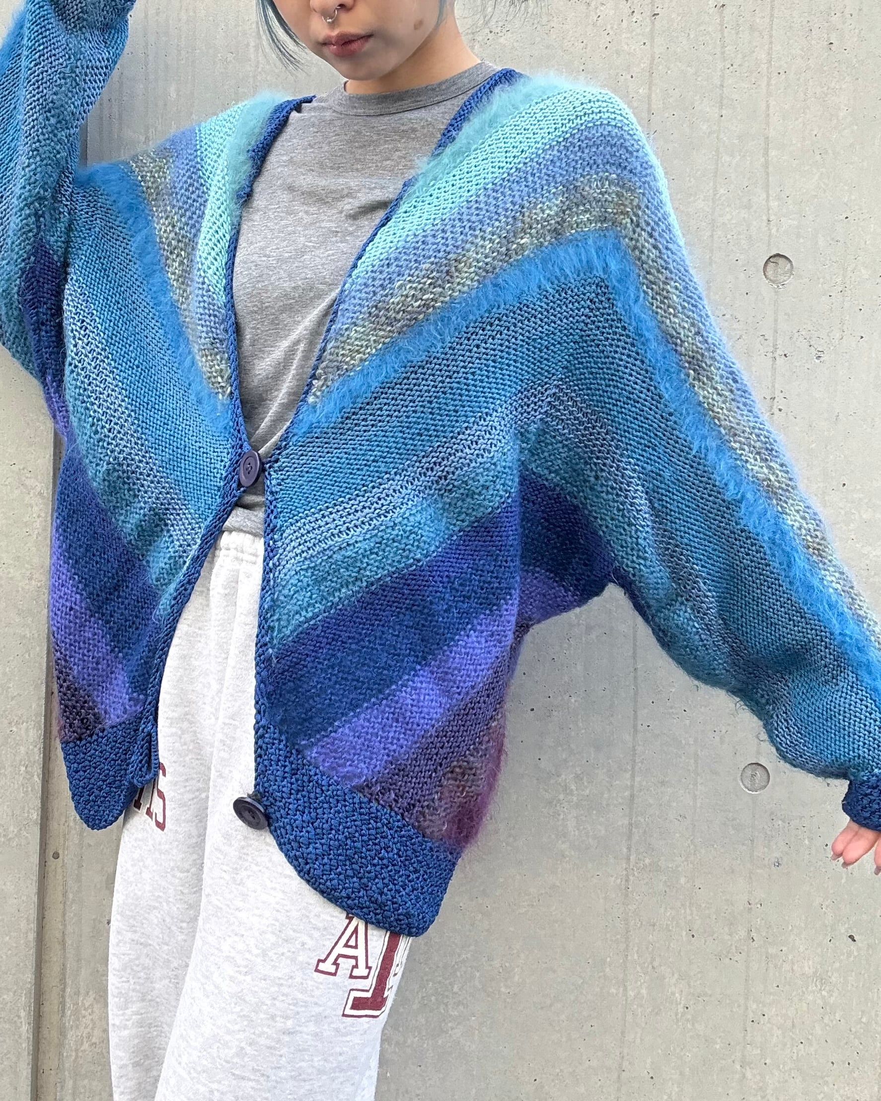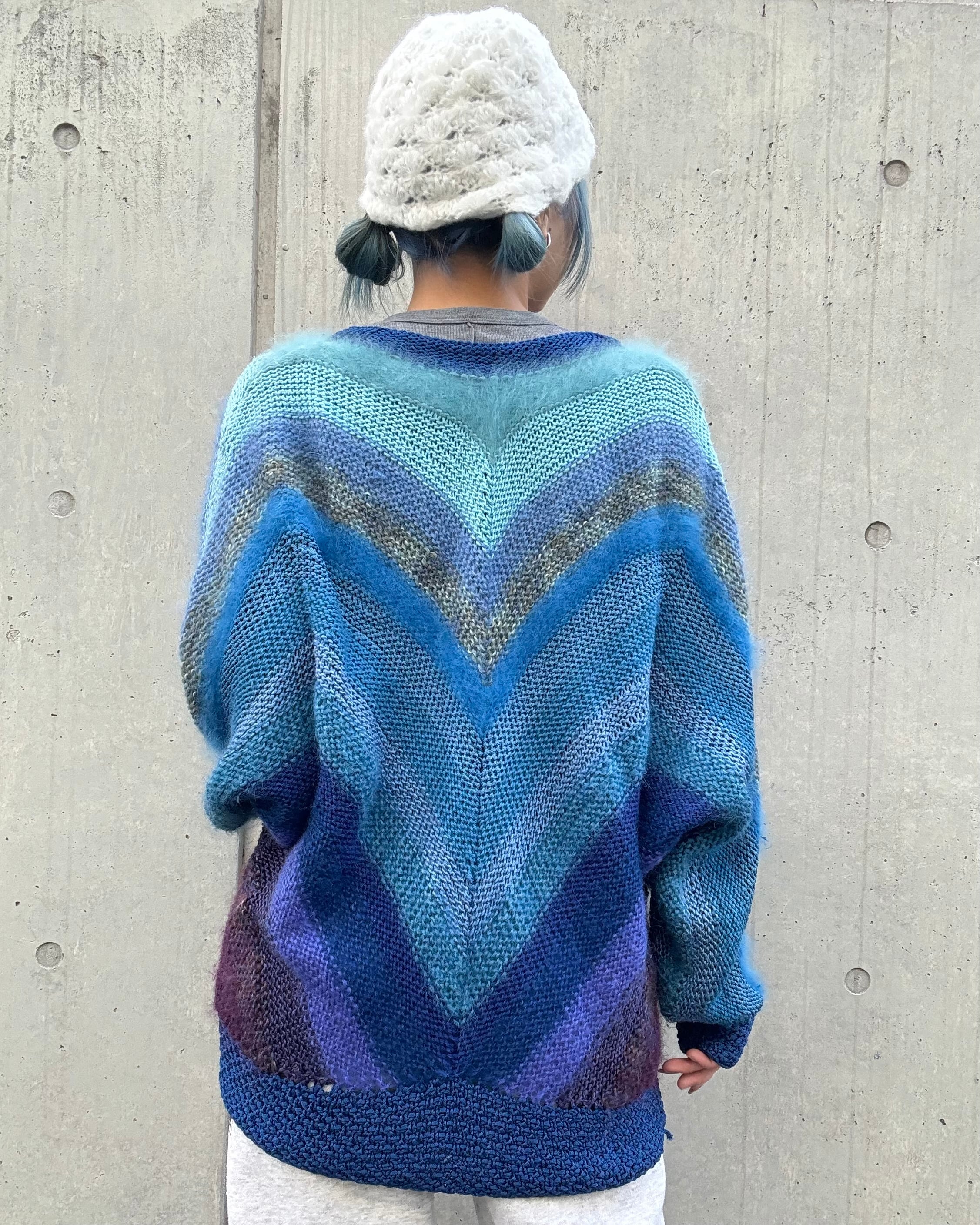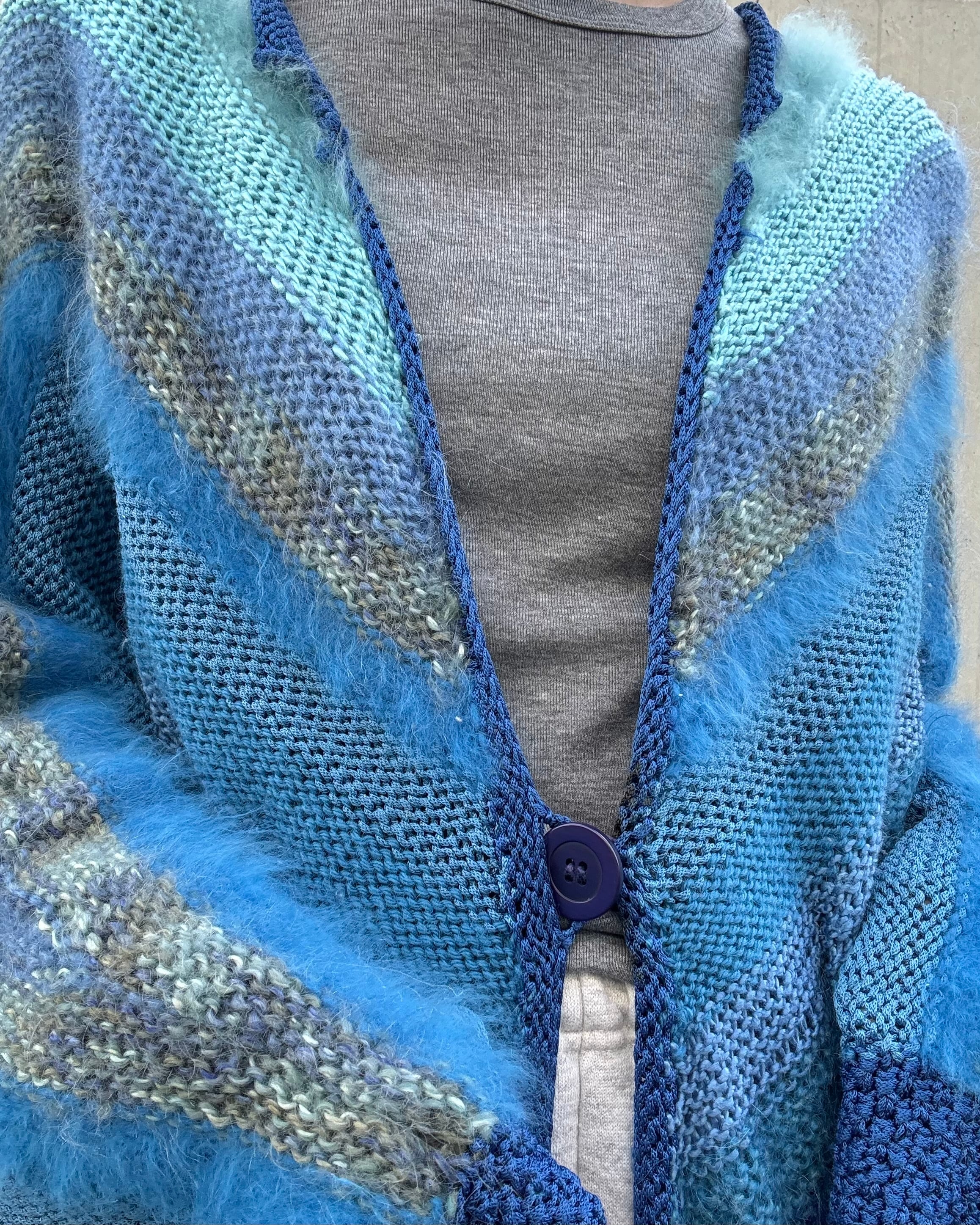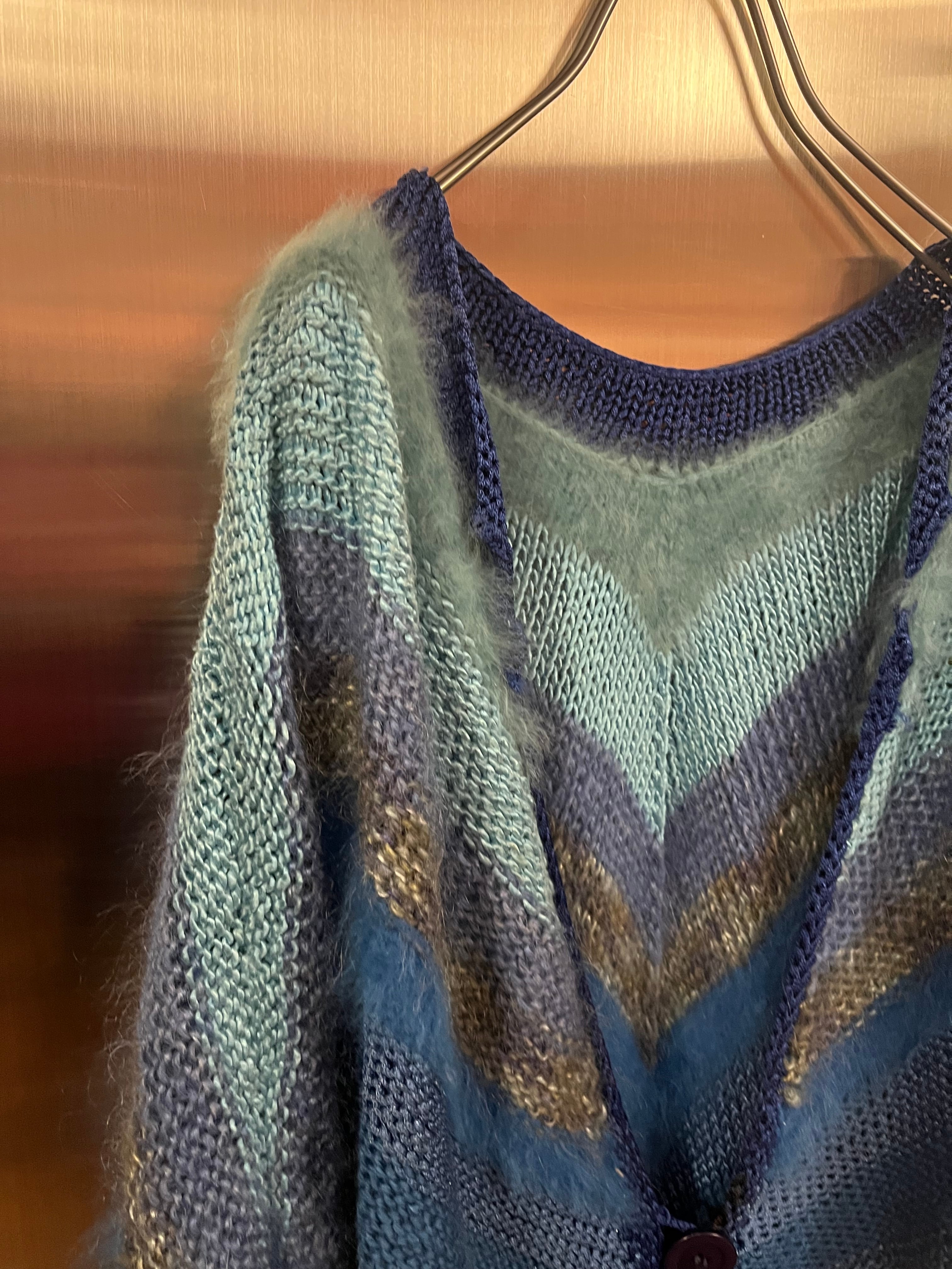 euro 1980's angora mix handmade knit cardigan