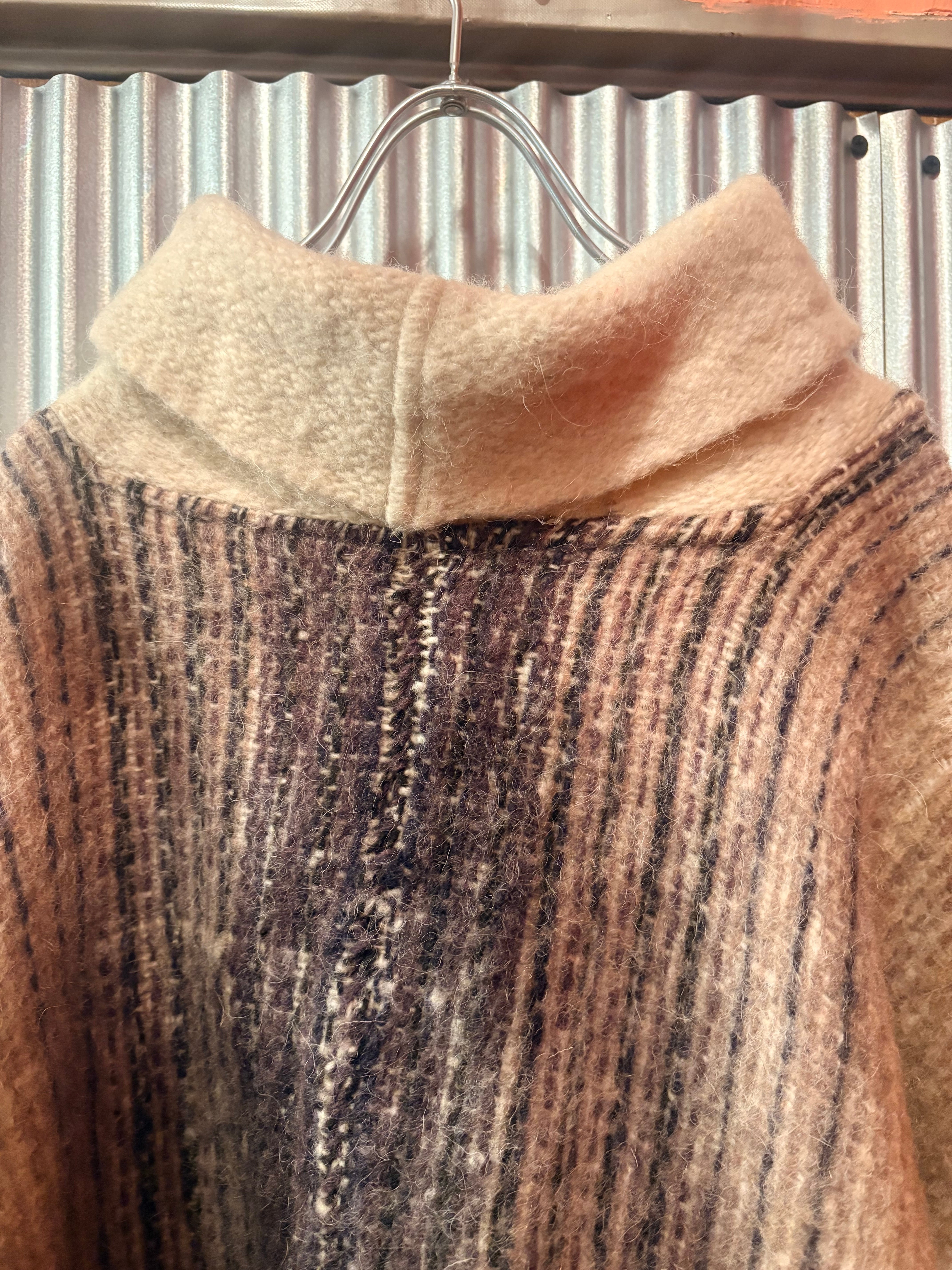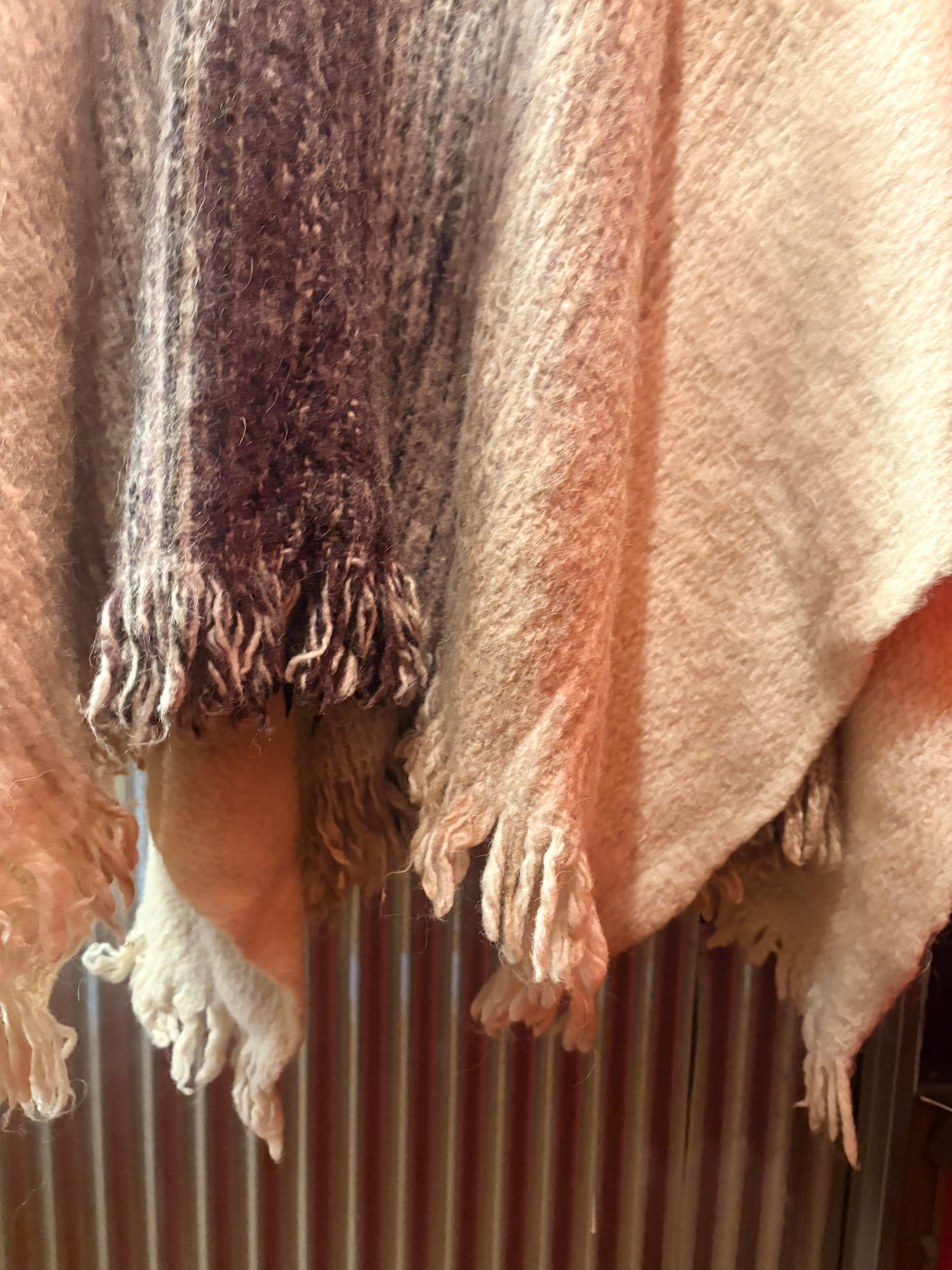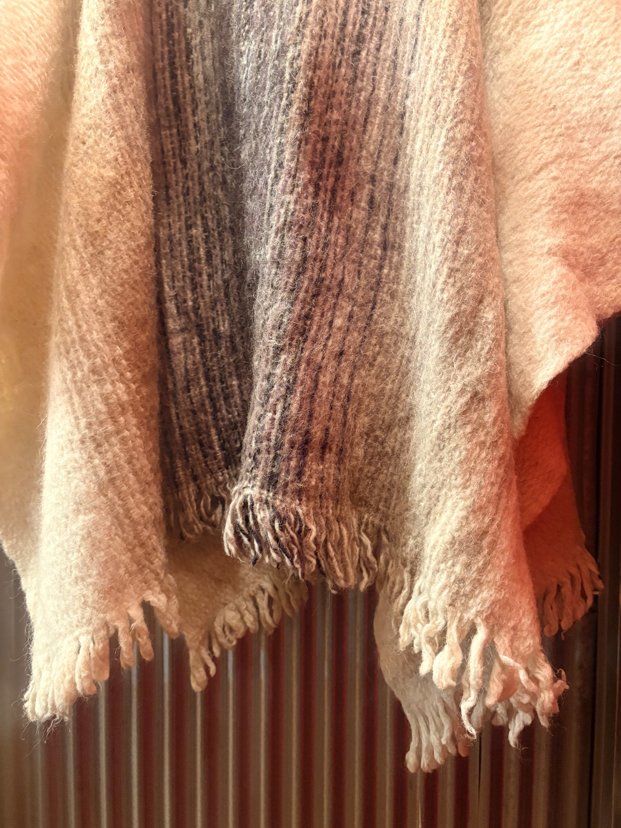 ブラウンカラーの毛糸が刺子のように中央部分にかけてグラデーションになっております