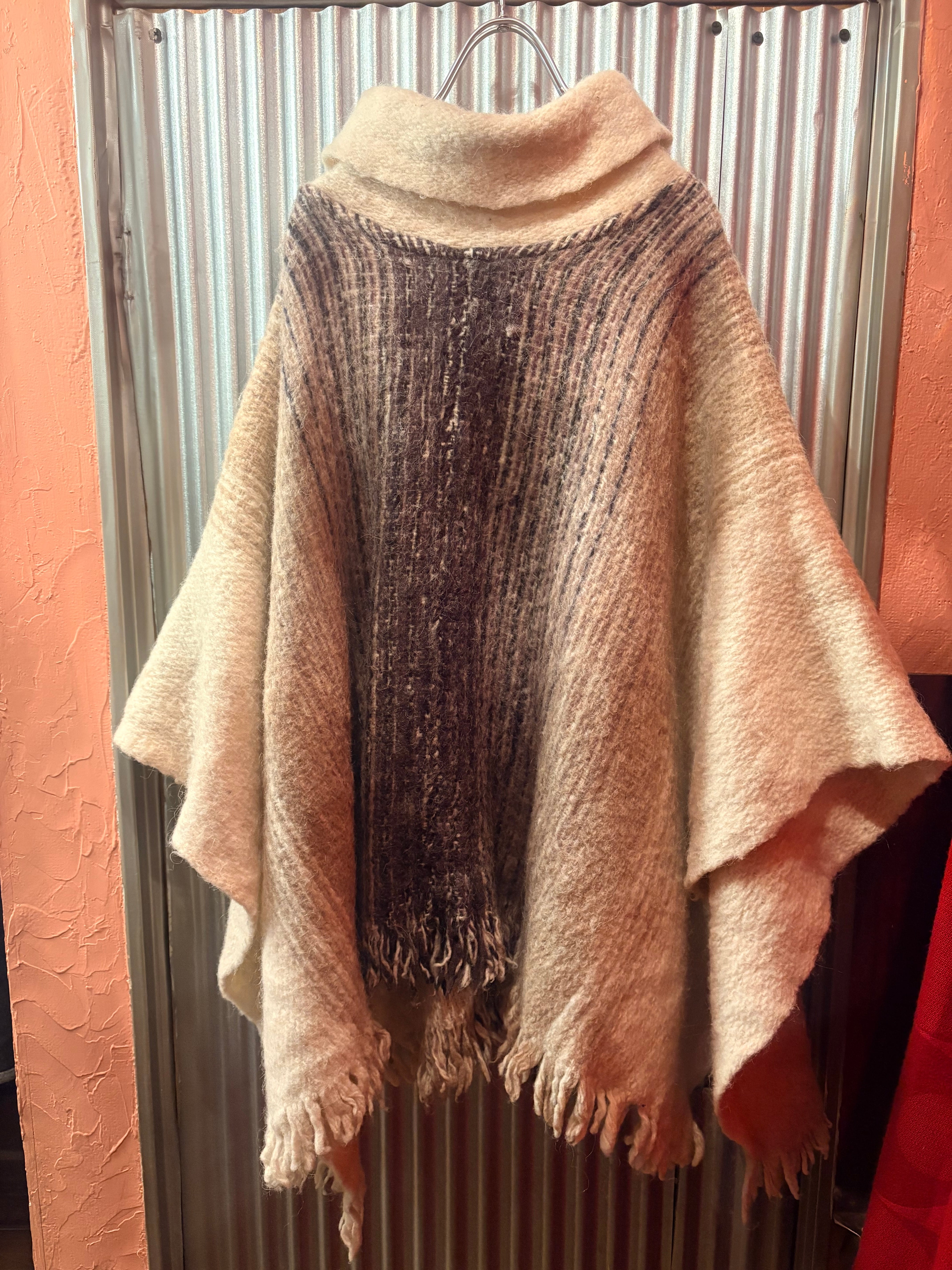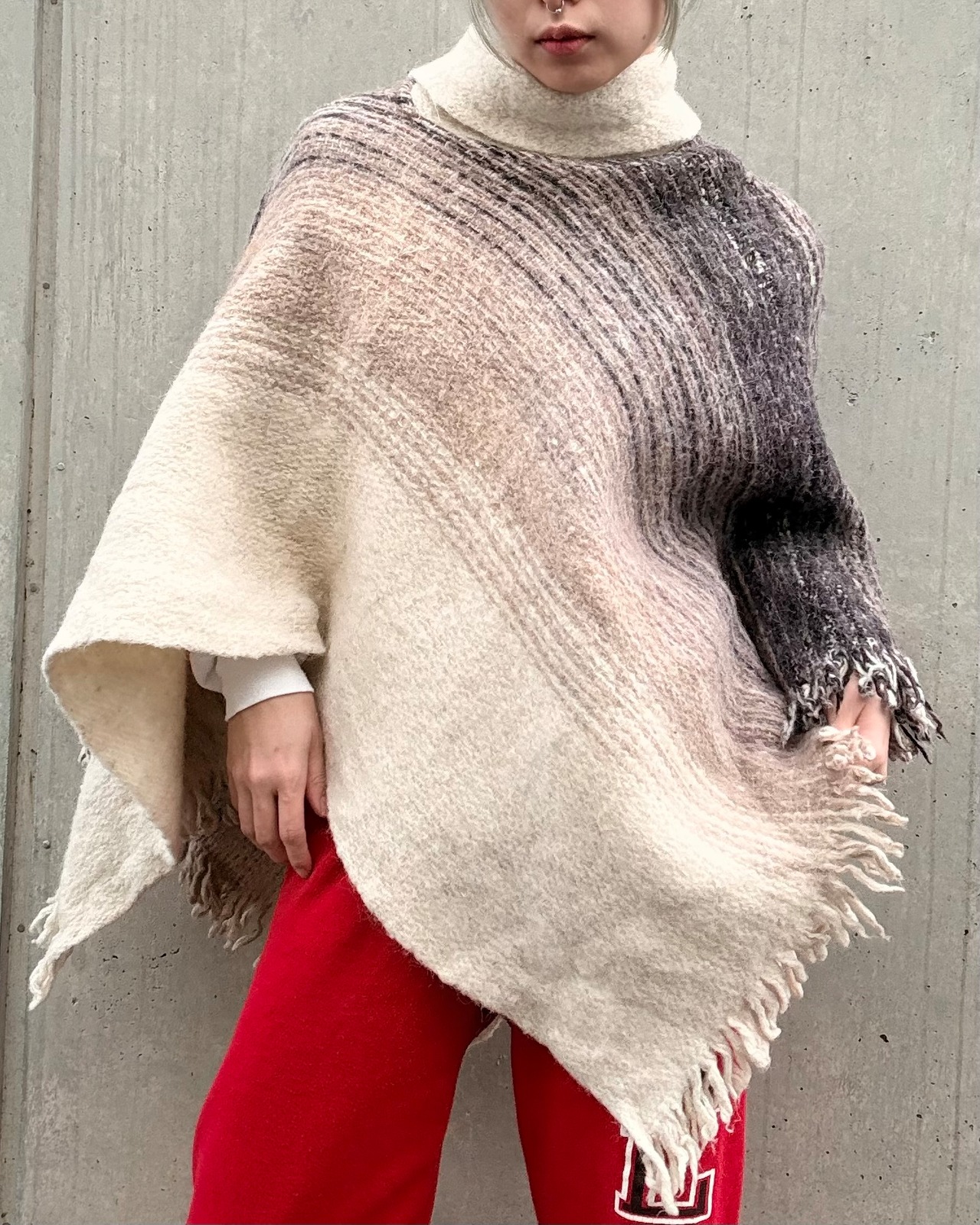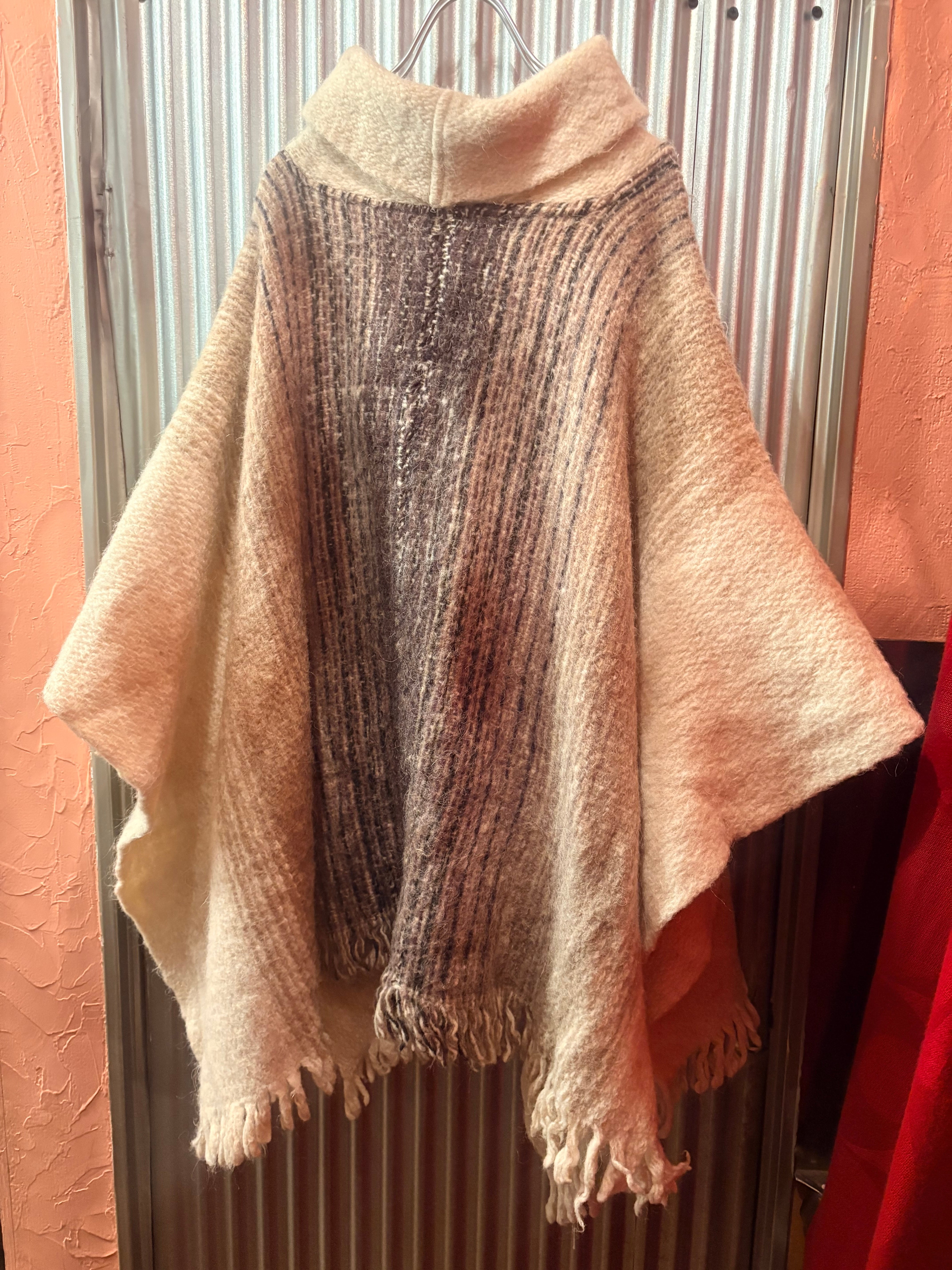 。ポンチョにしては短めの丈で動きやすく軽いアイテムです。