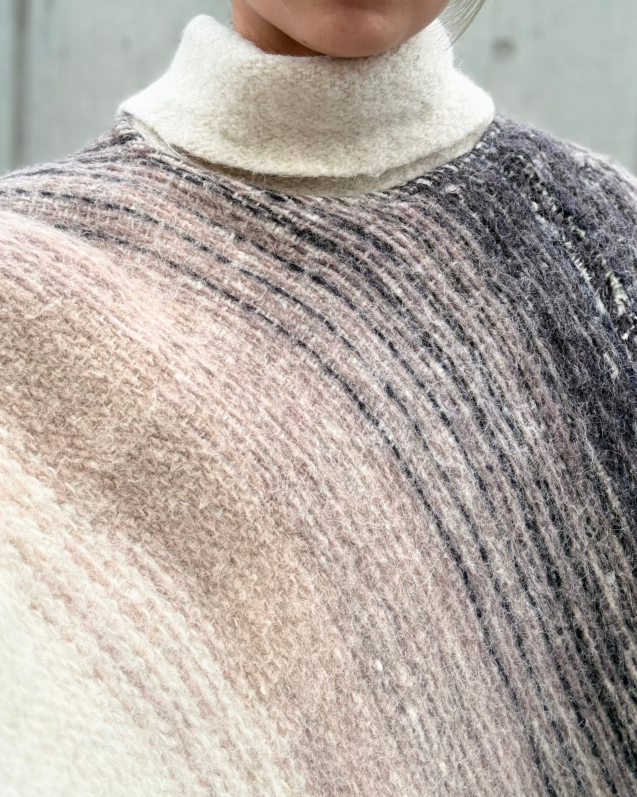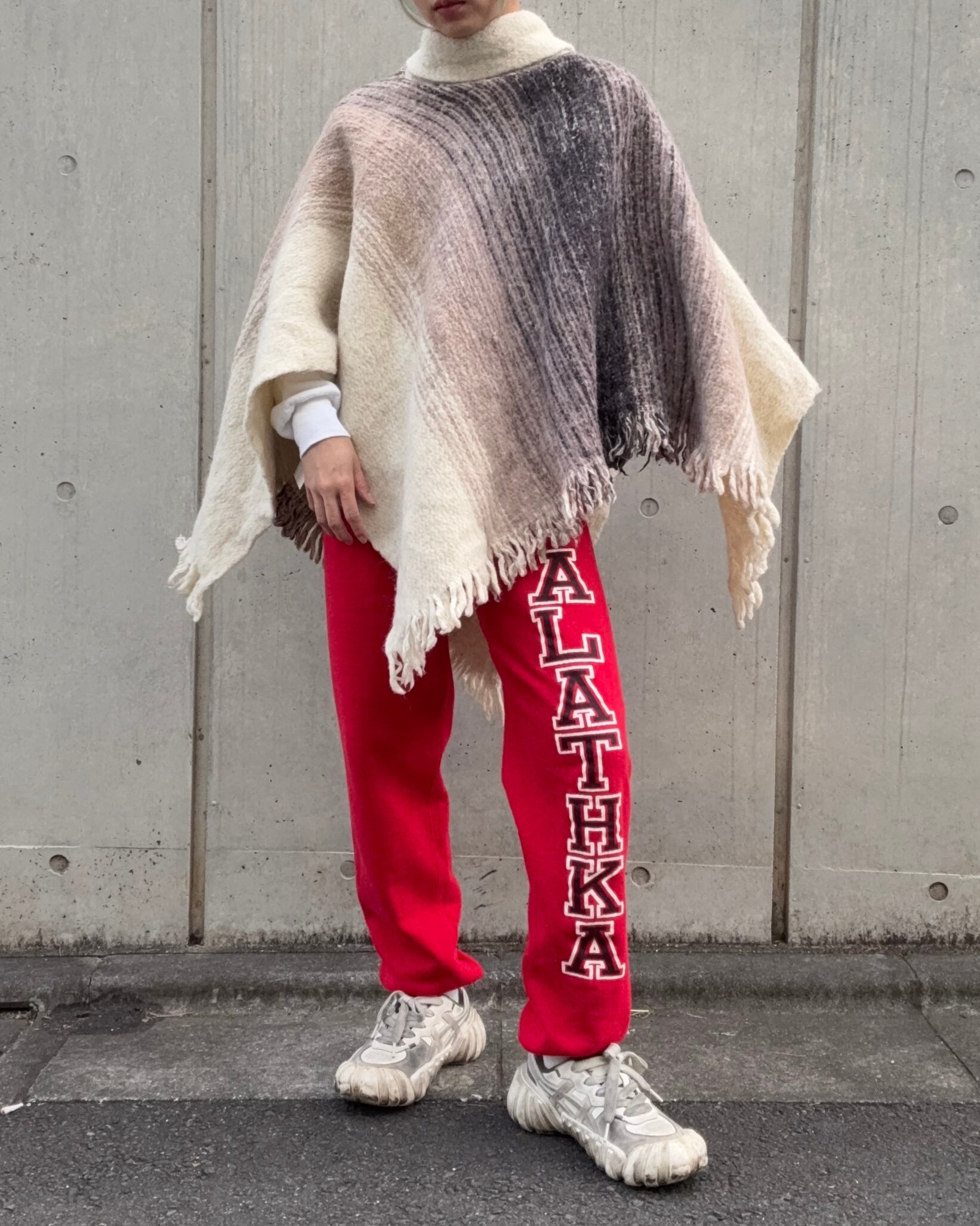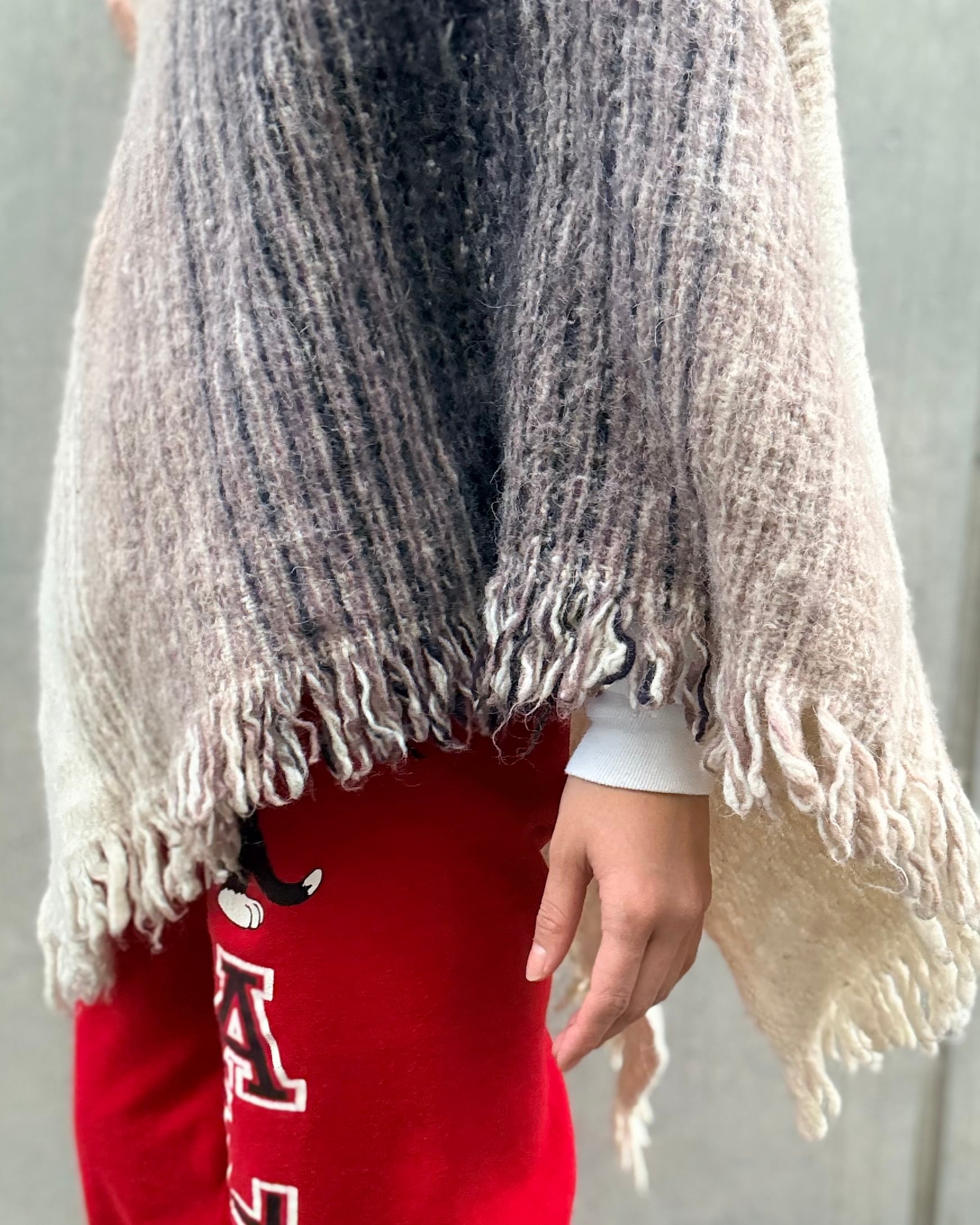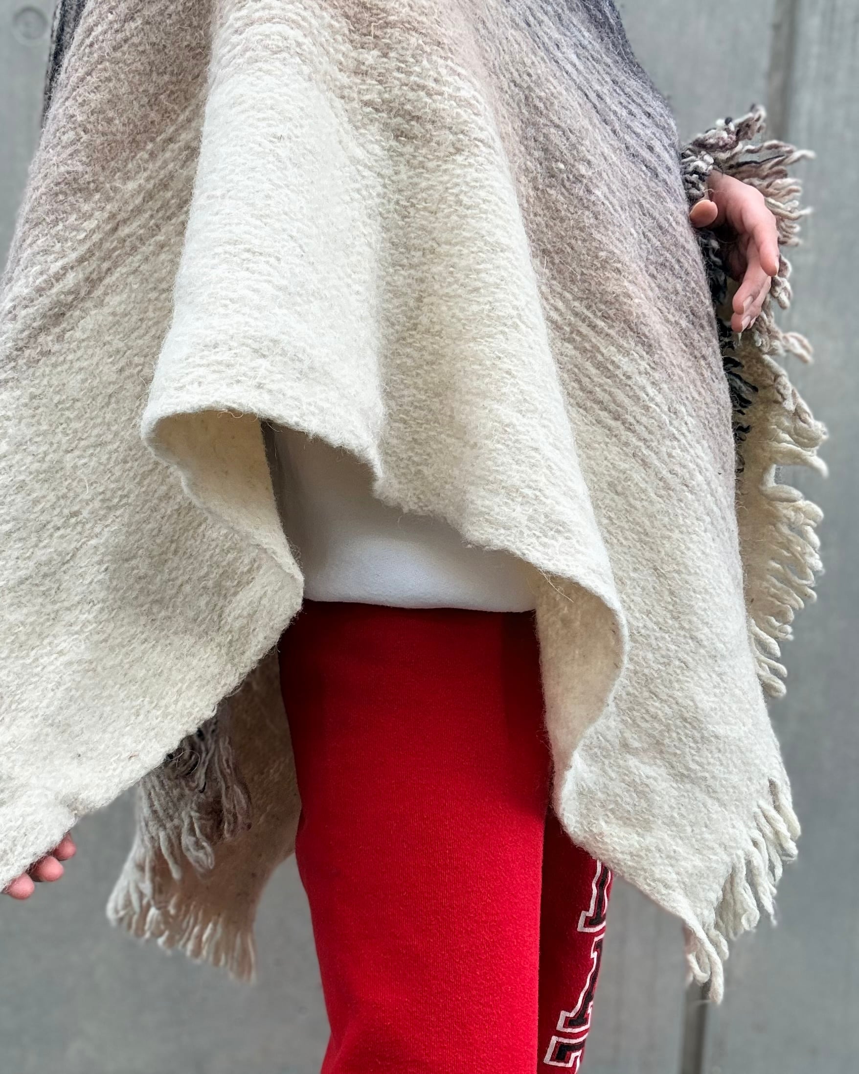 。ポンチョにしては短めの丈で動きやすく軽いアイテムです。