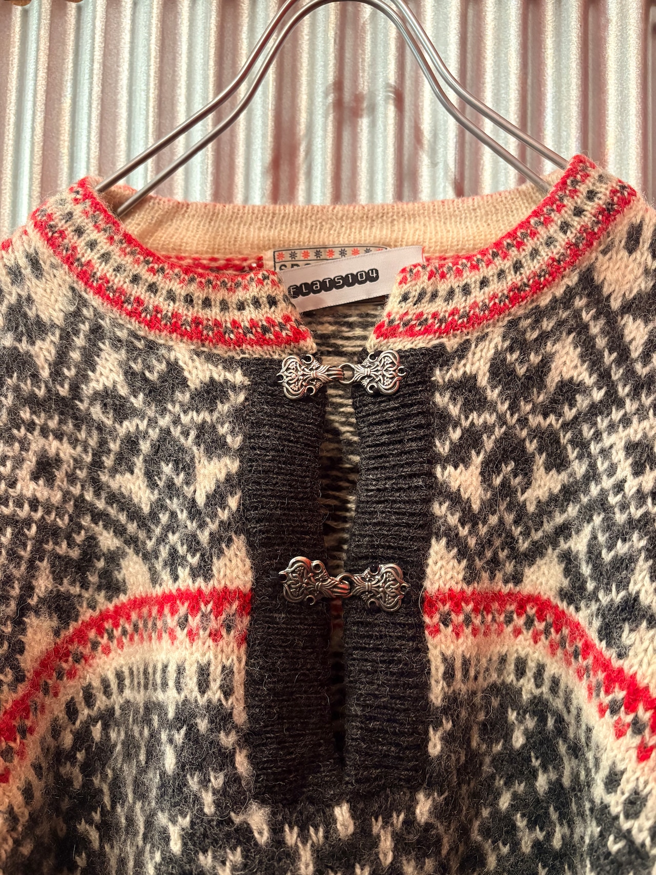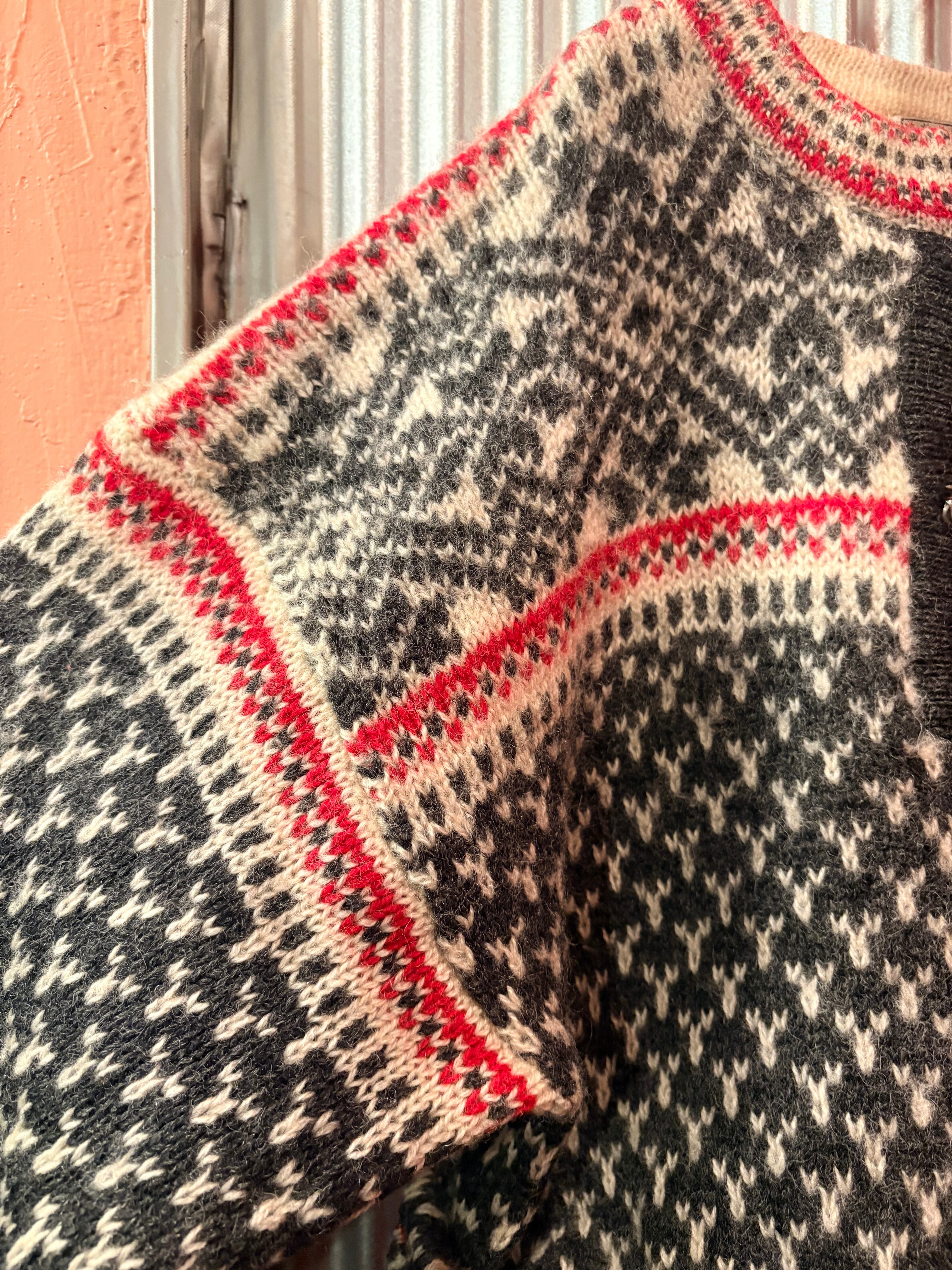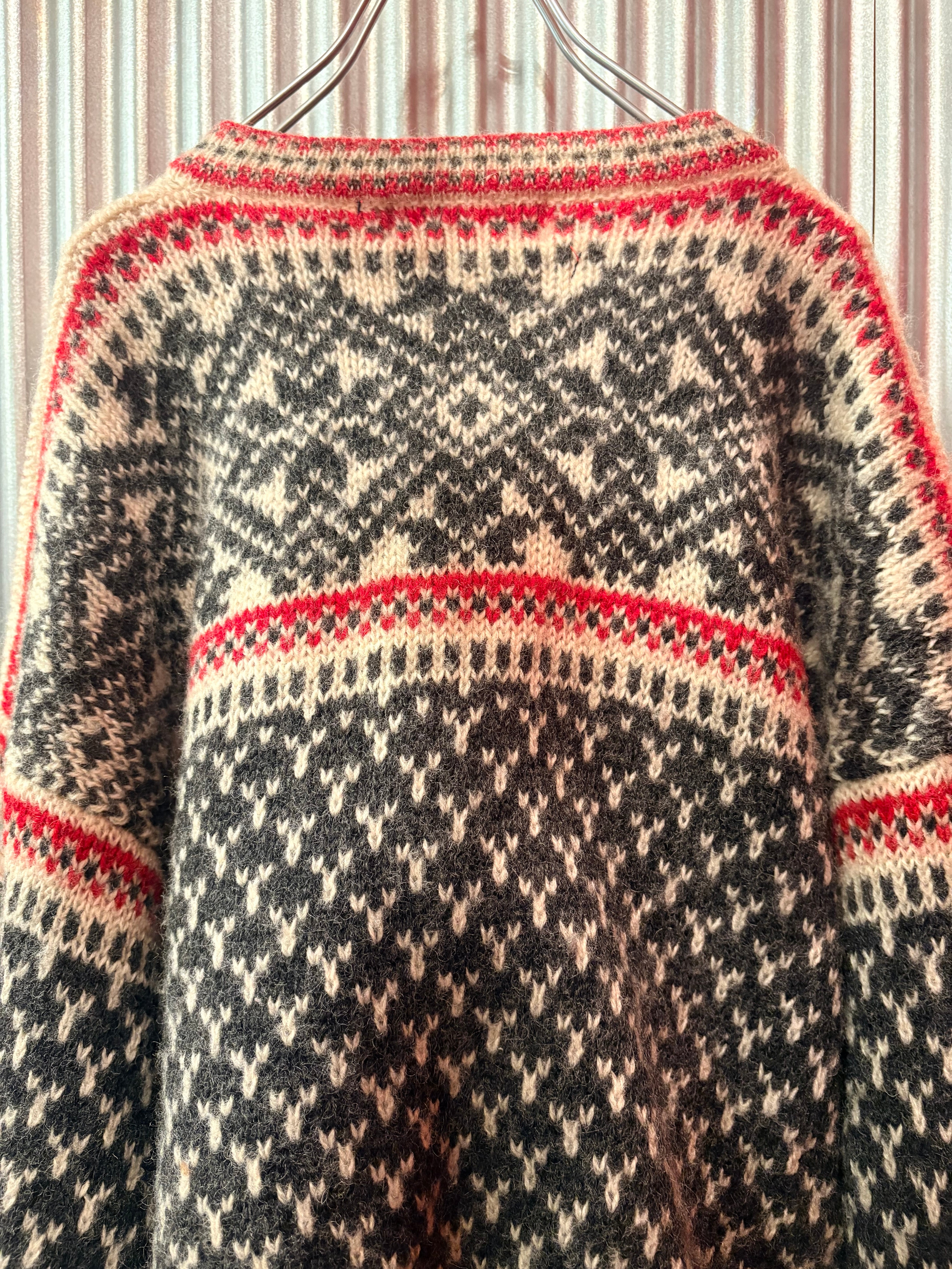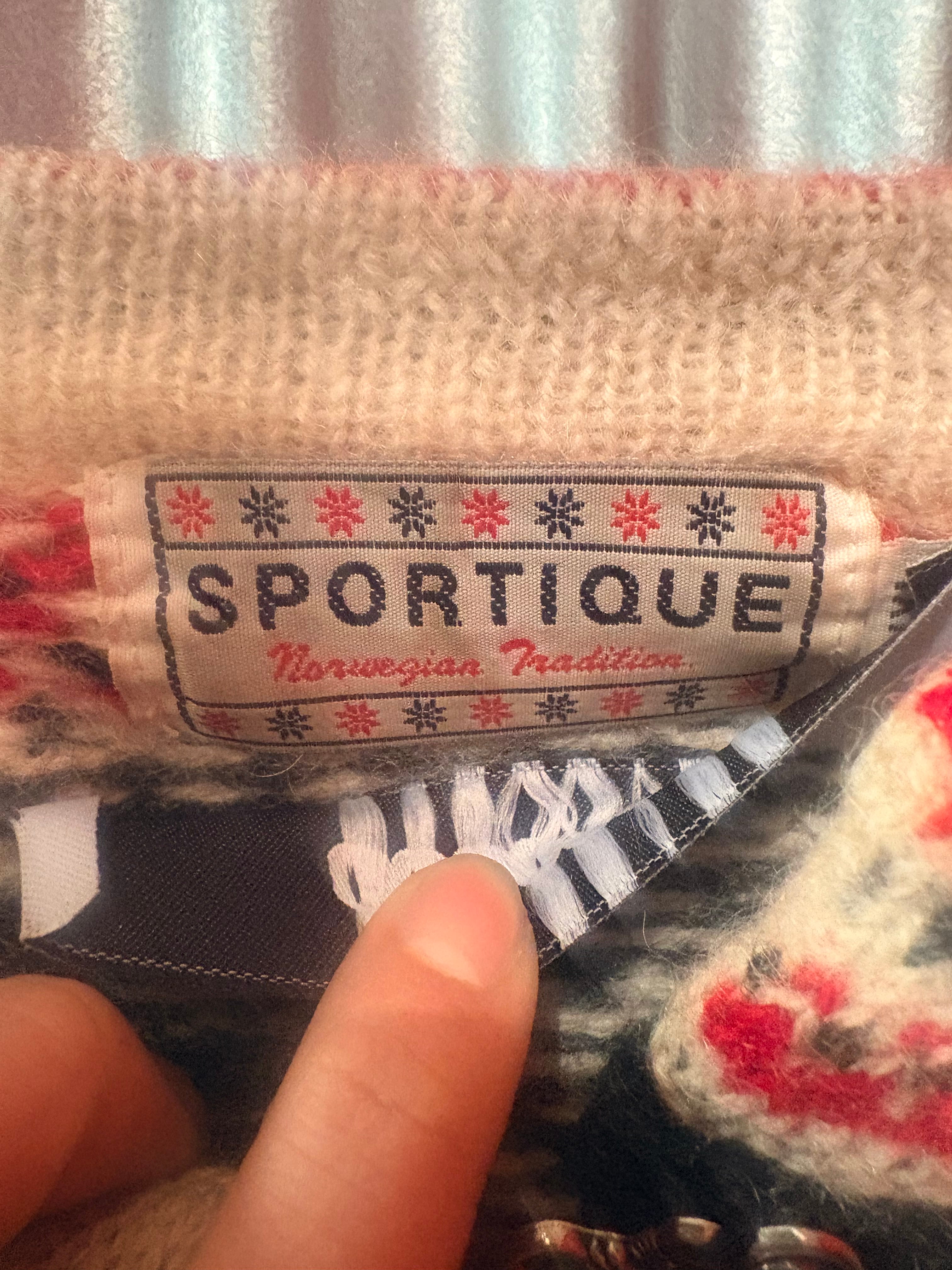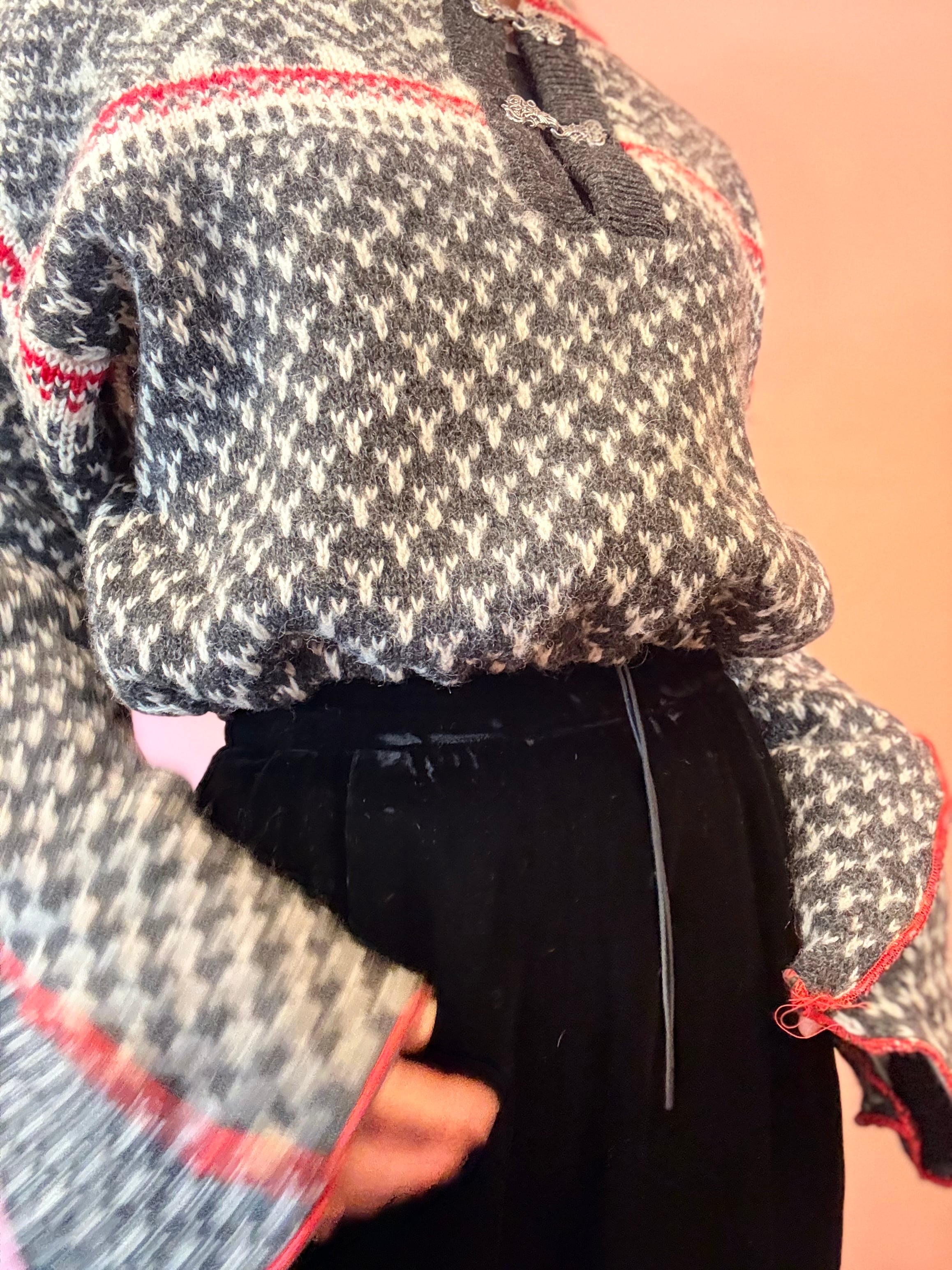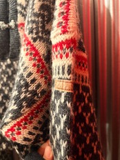 袖のステッチは、ボディのニットのカラーに合わせた赤が◎