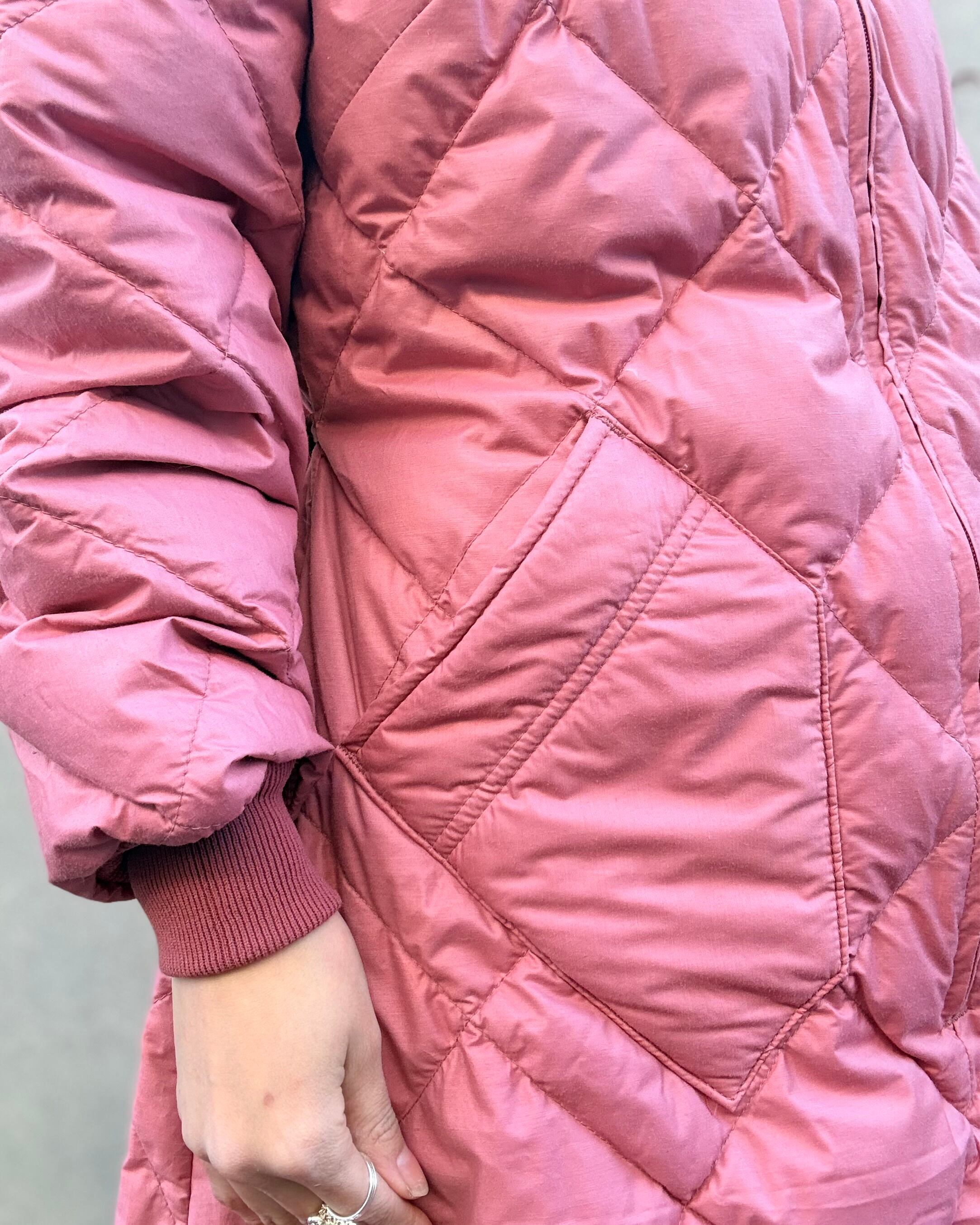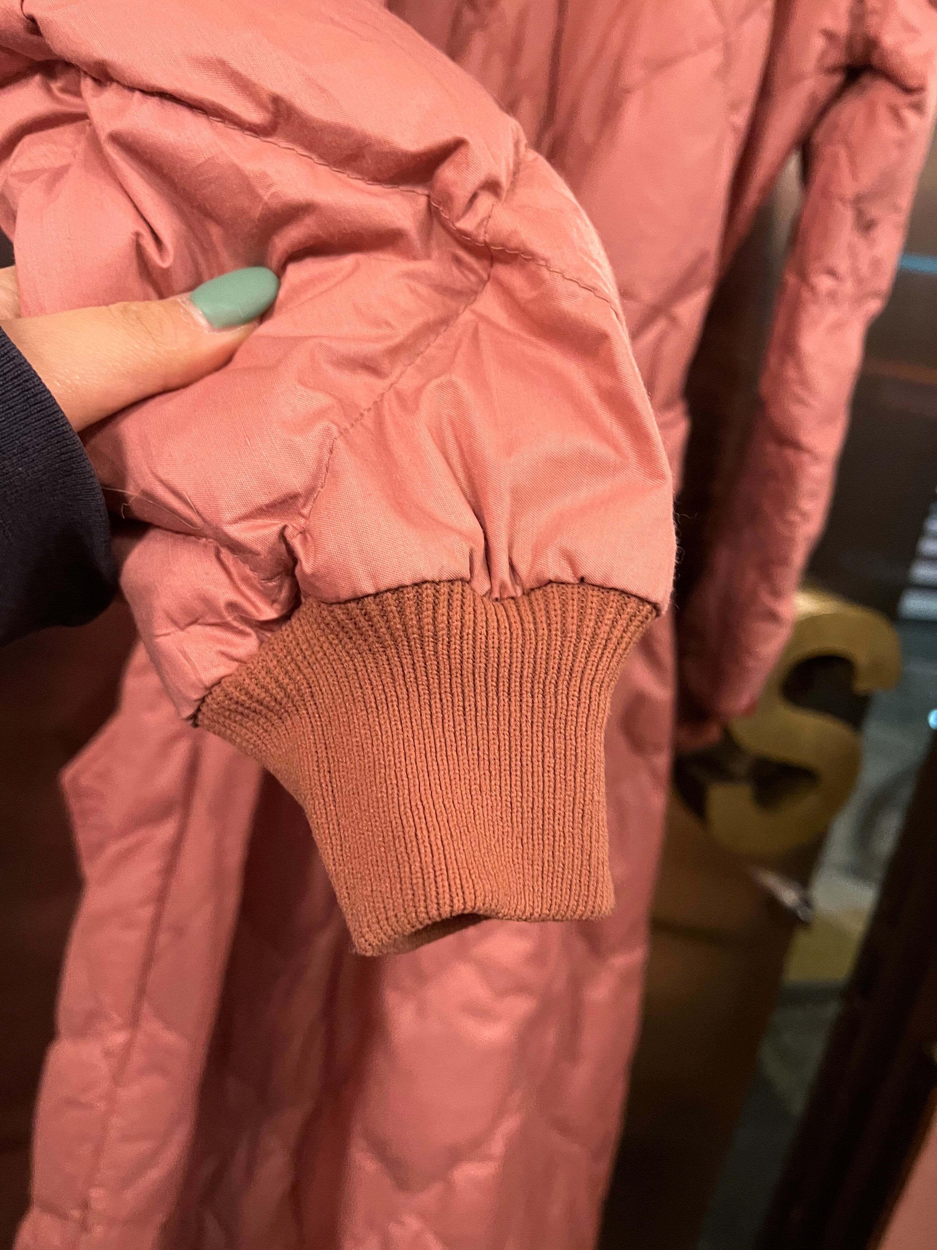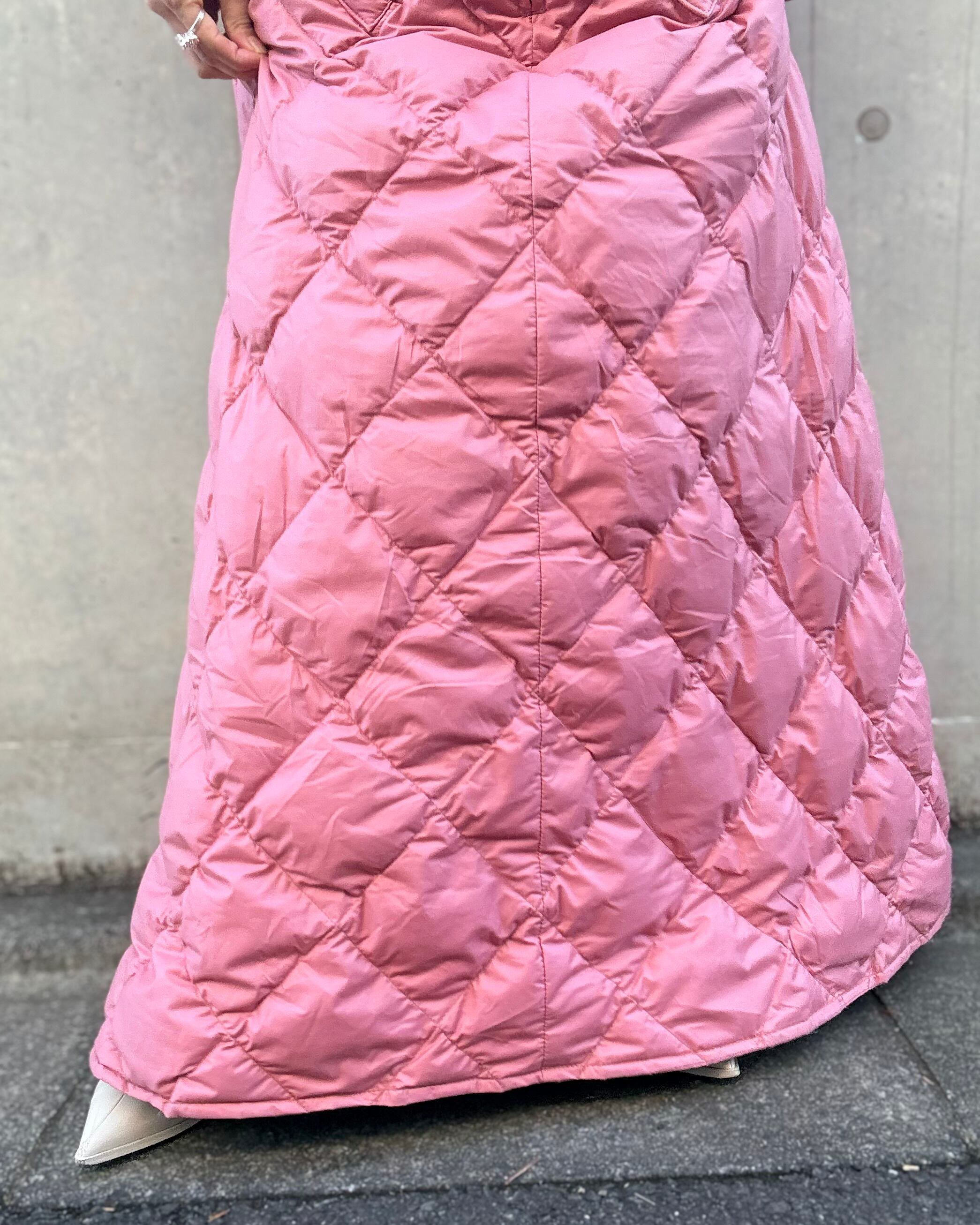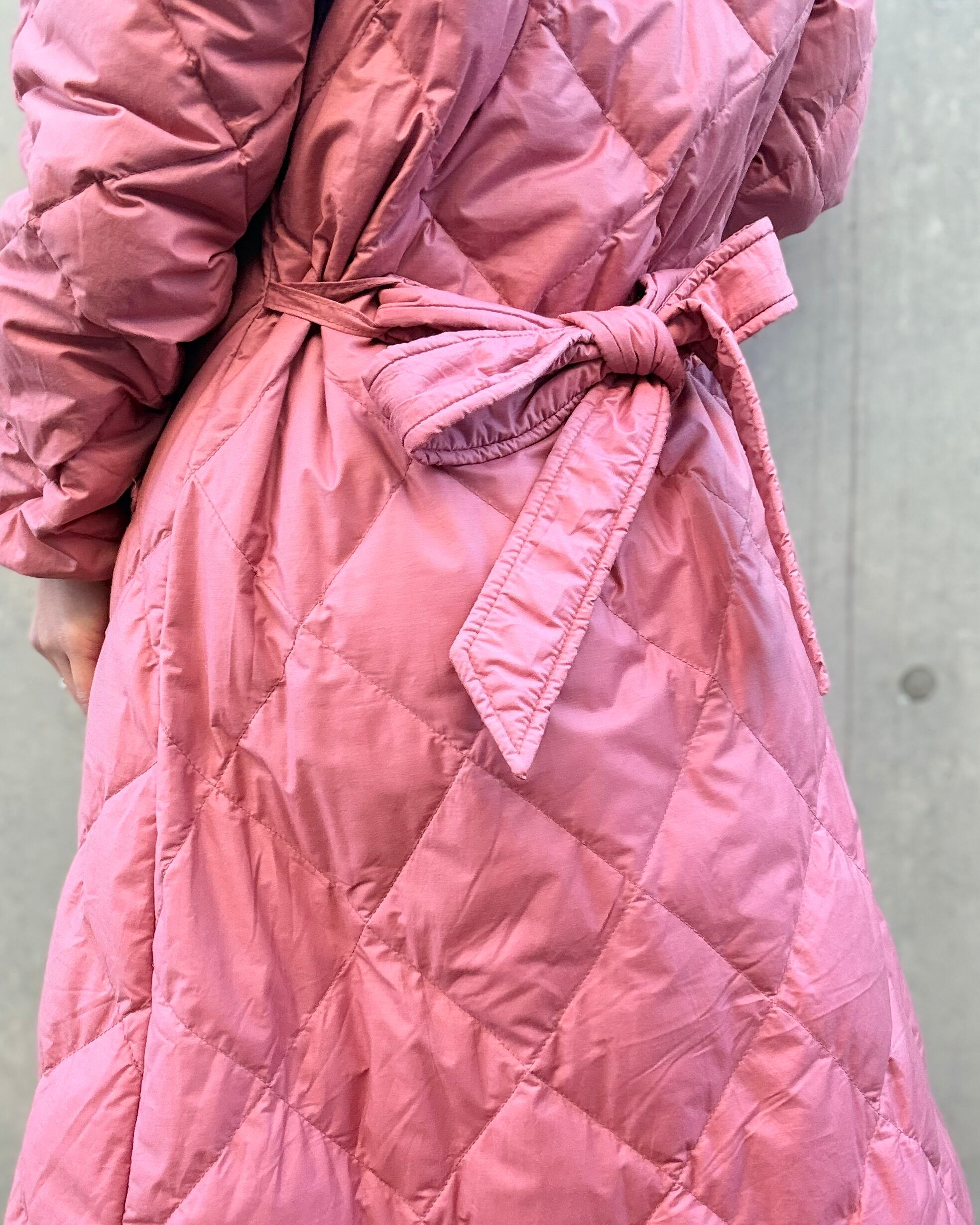 くすみピンクとフロントジップのデザインが甘くなりすぎず、1枚で決まる特別なアイテムです。