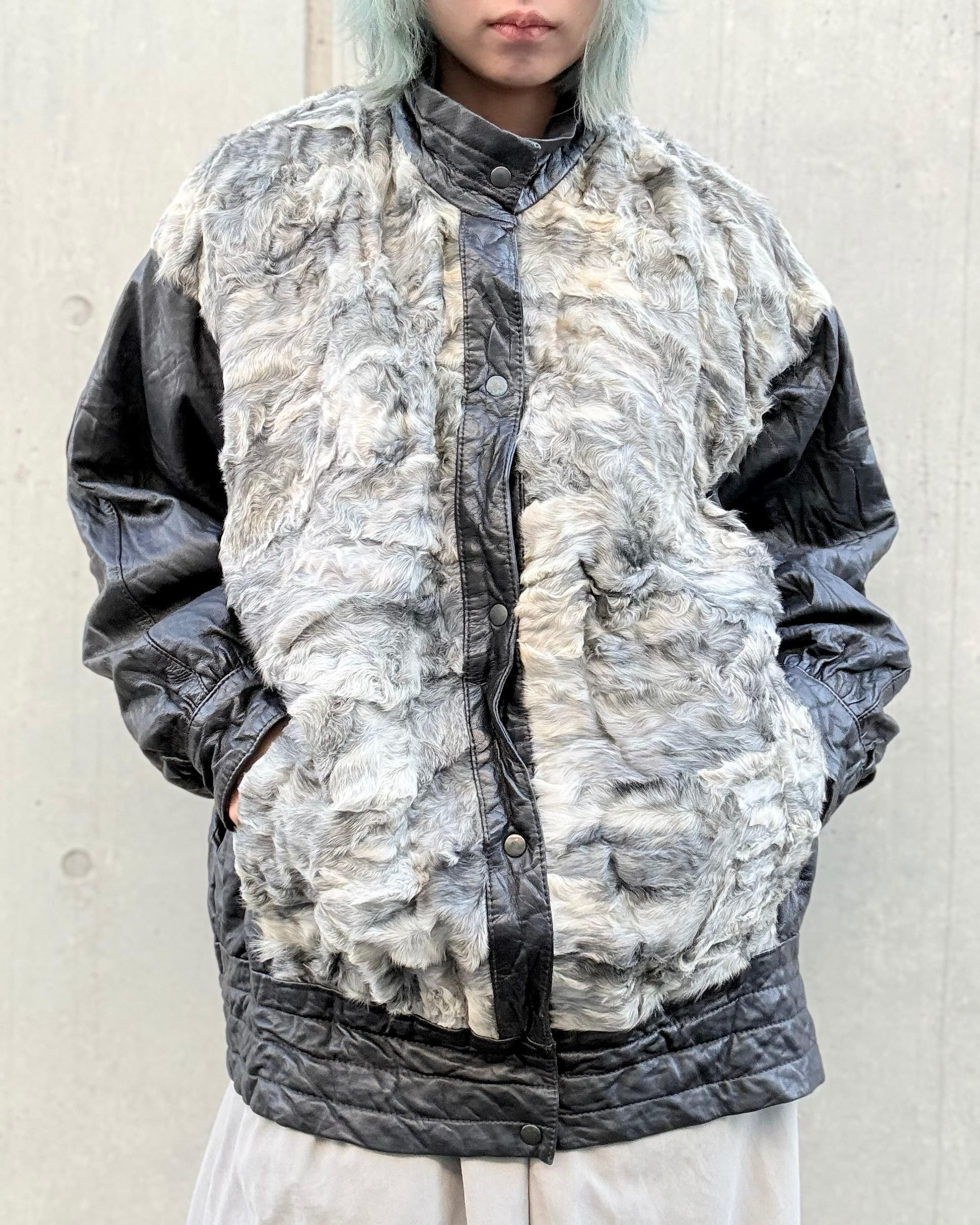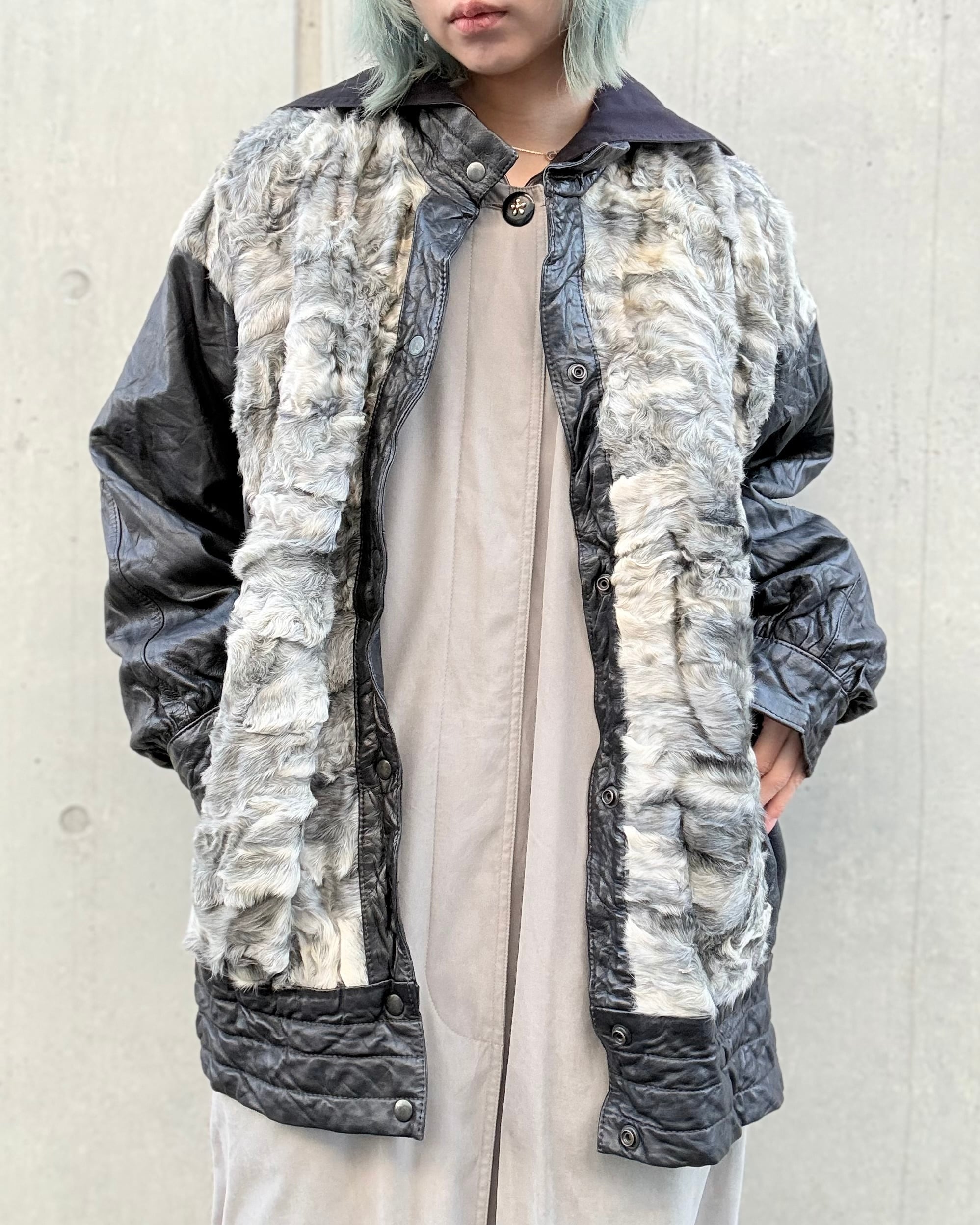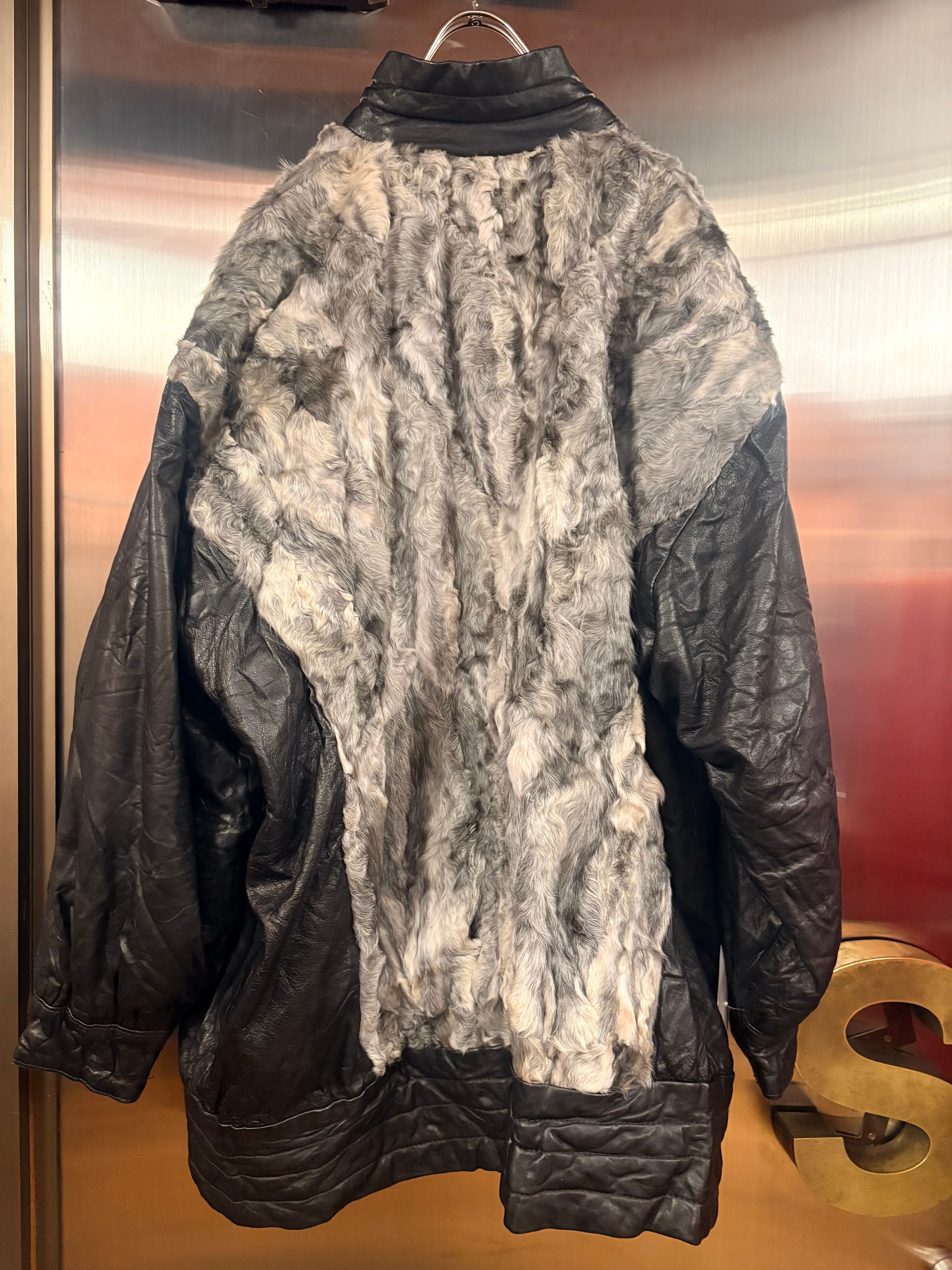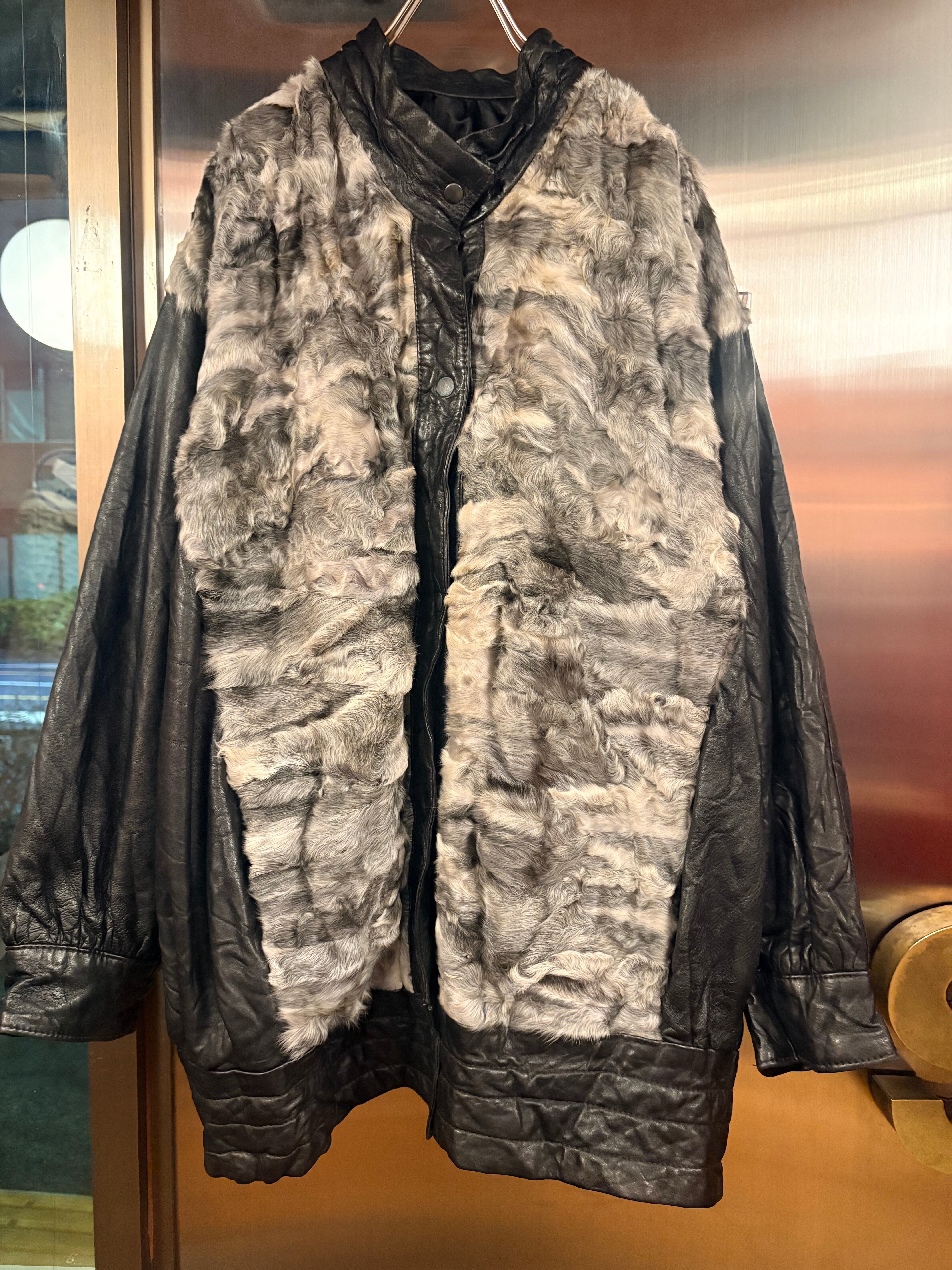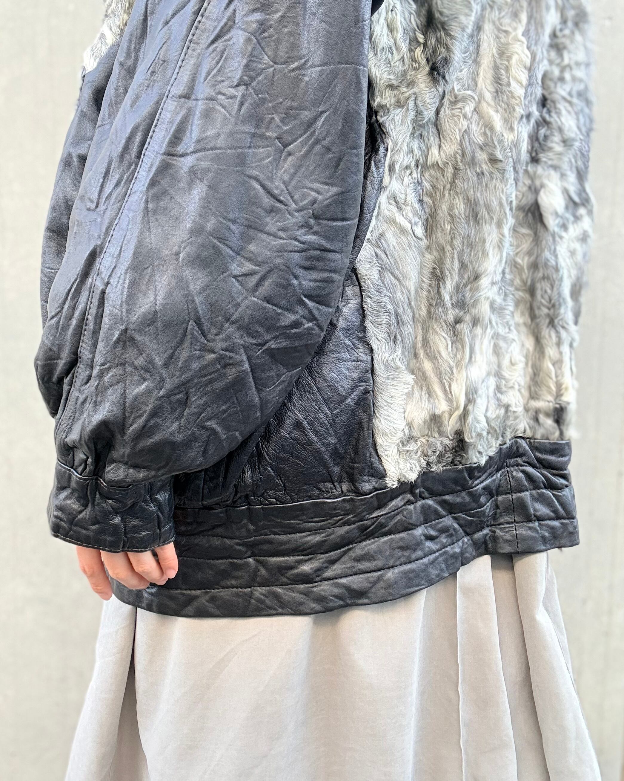 1980's euro leather×sheep fur jacket
