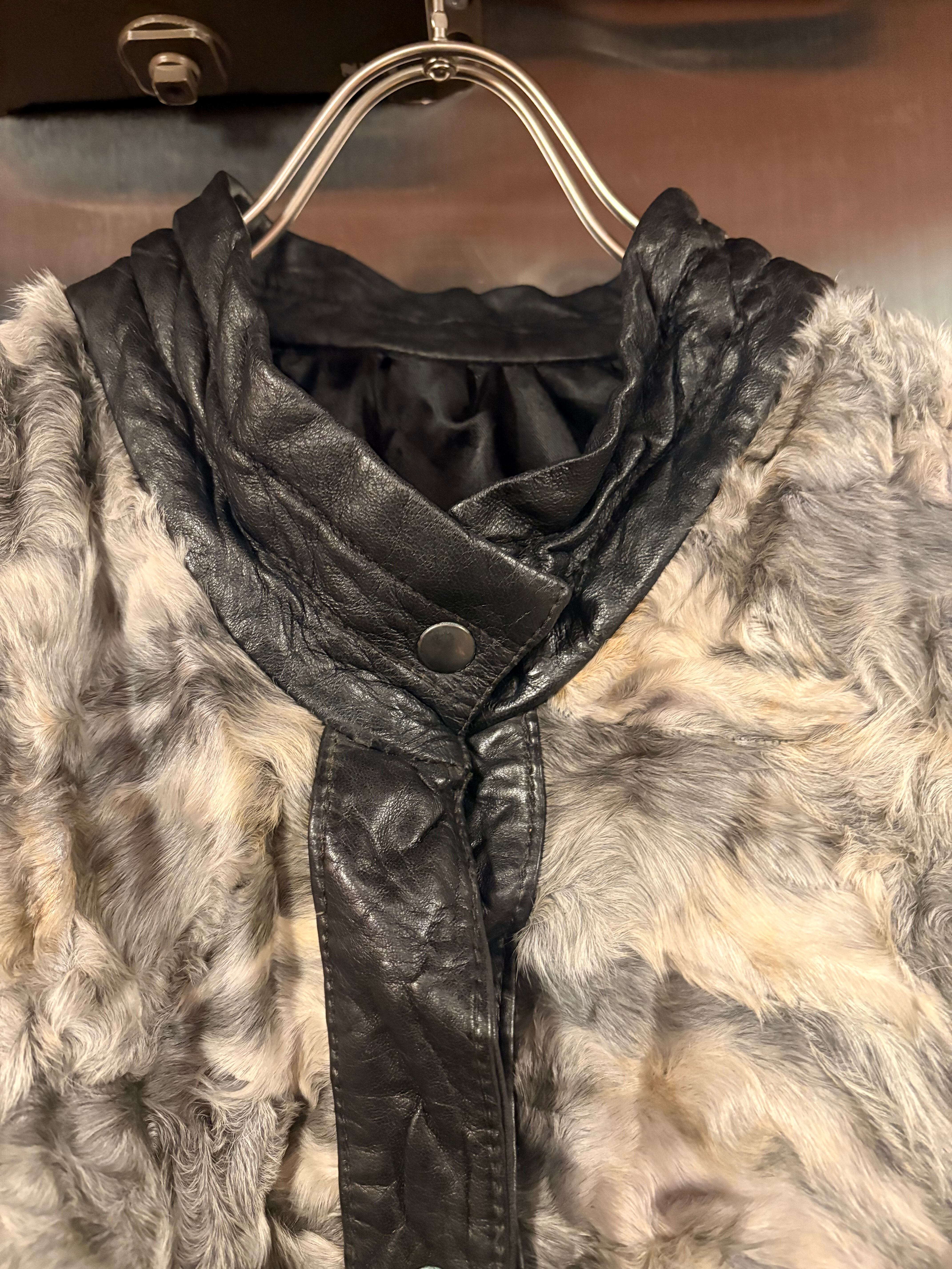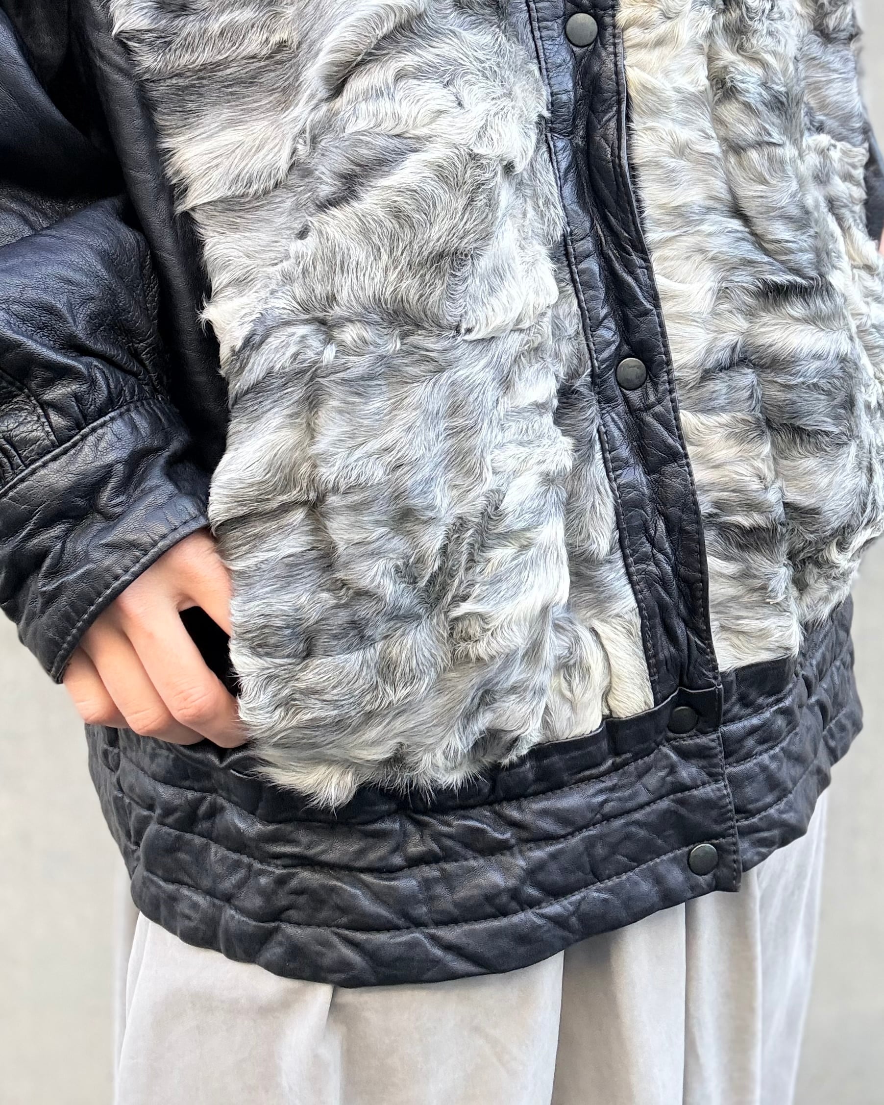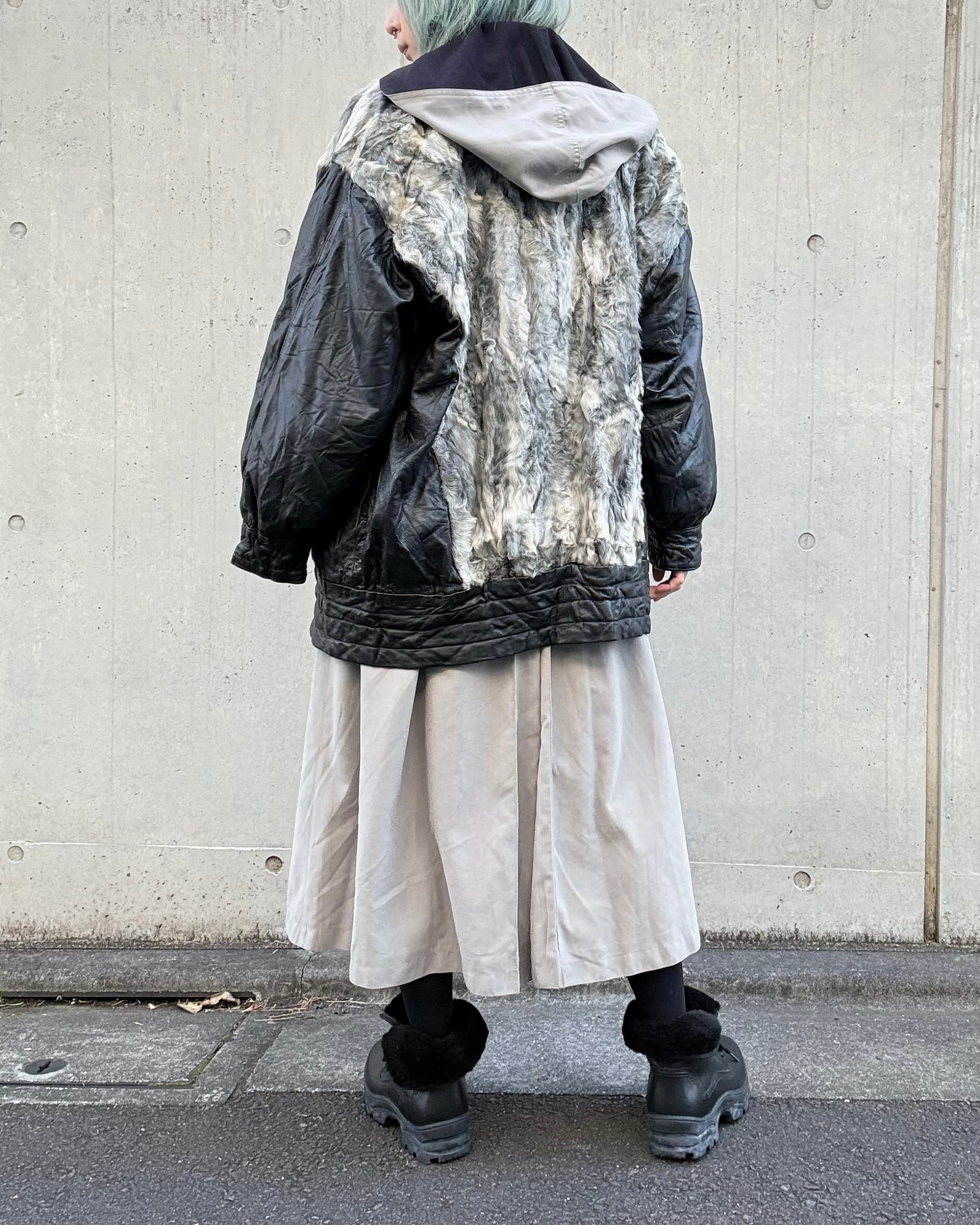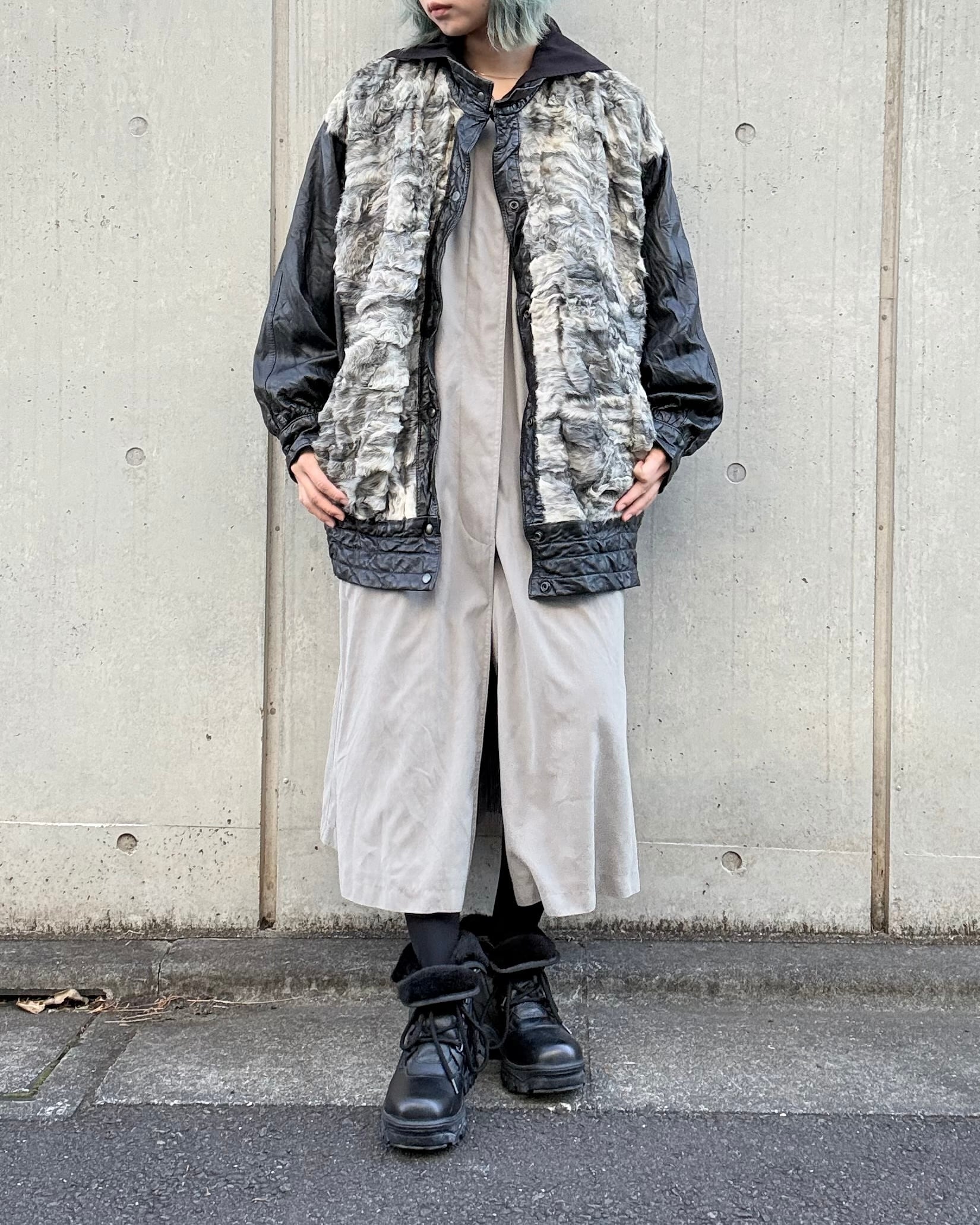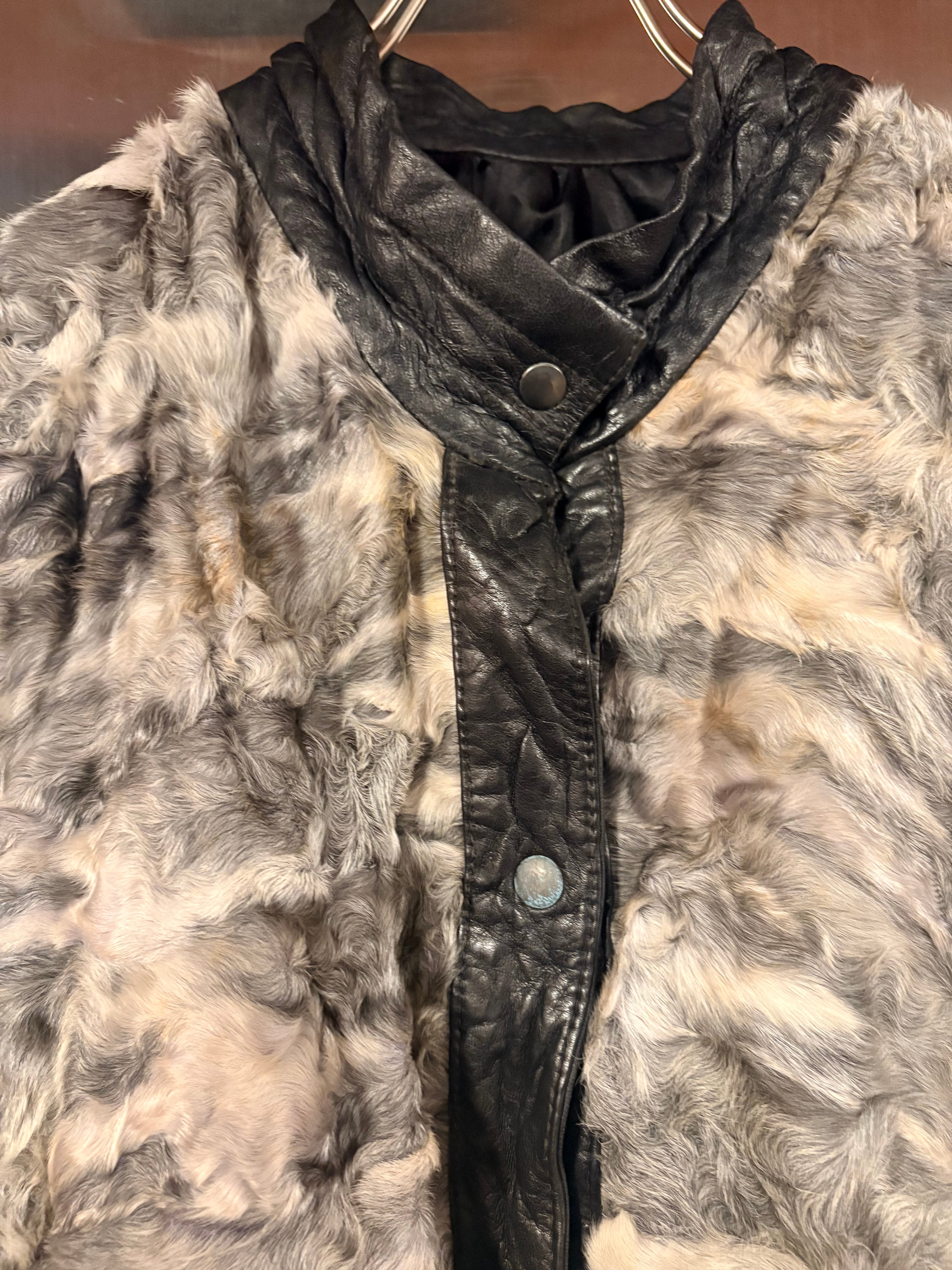 1980's euro leather×sheep fur jacket