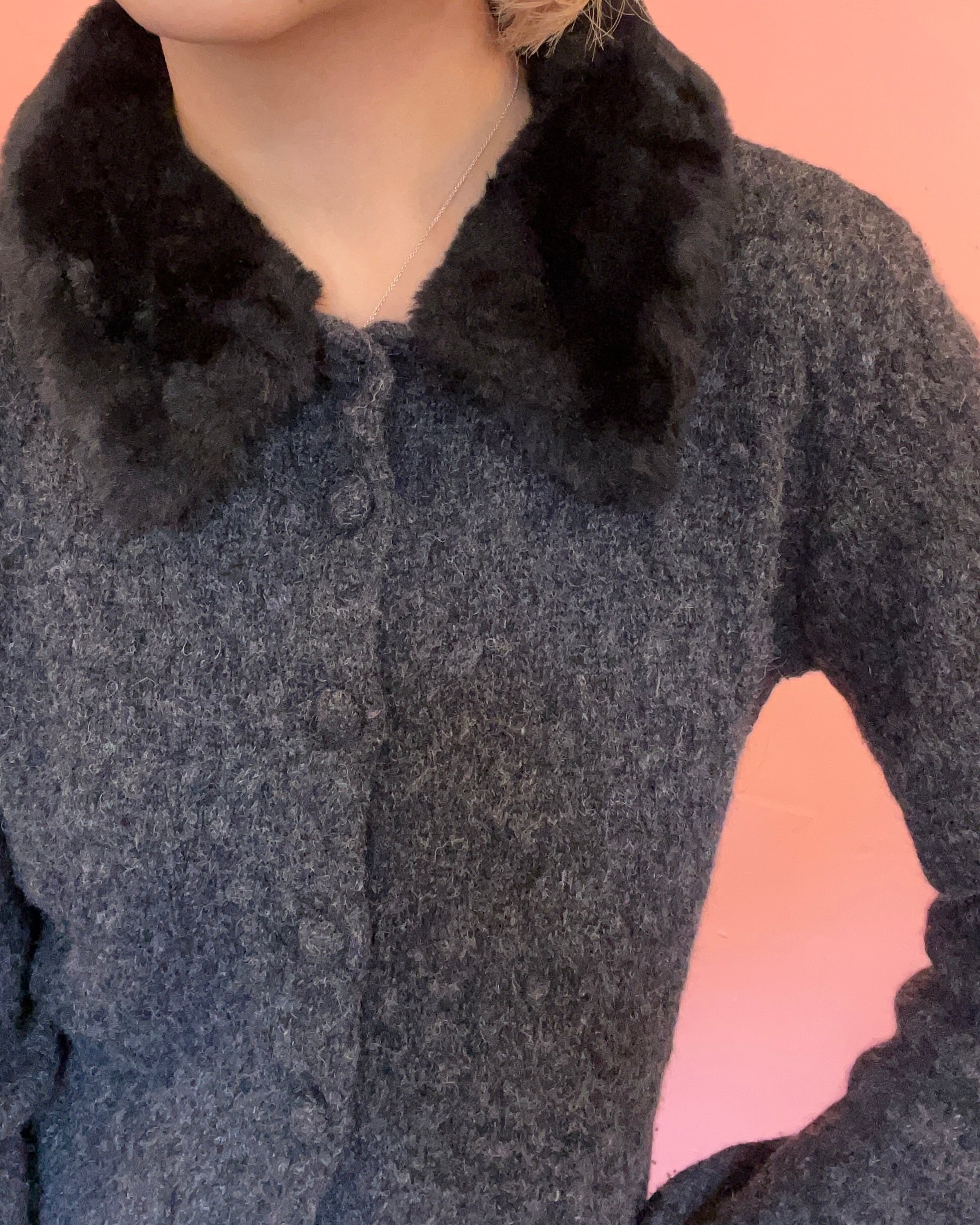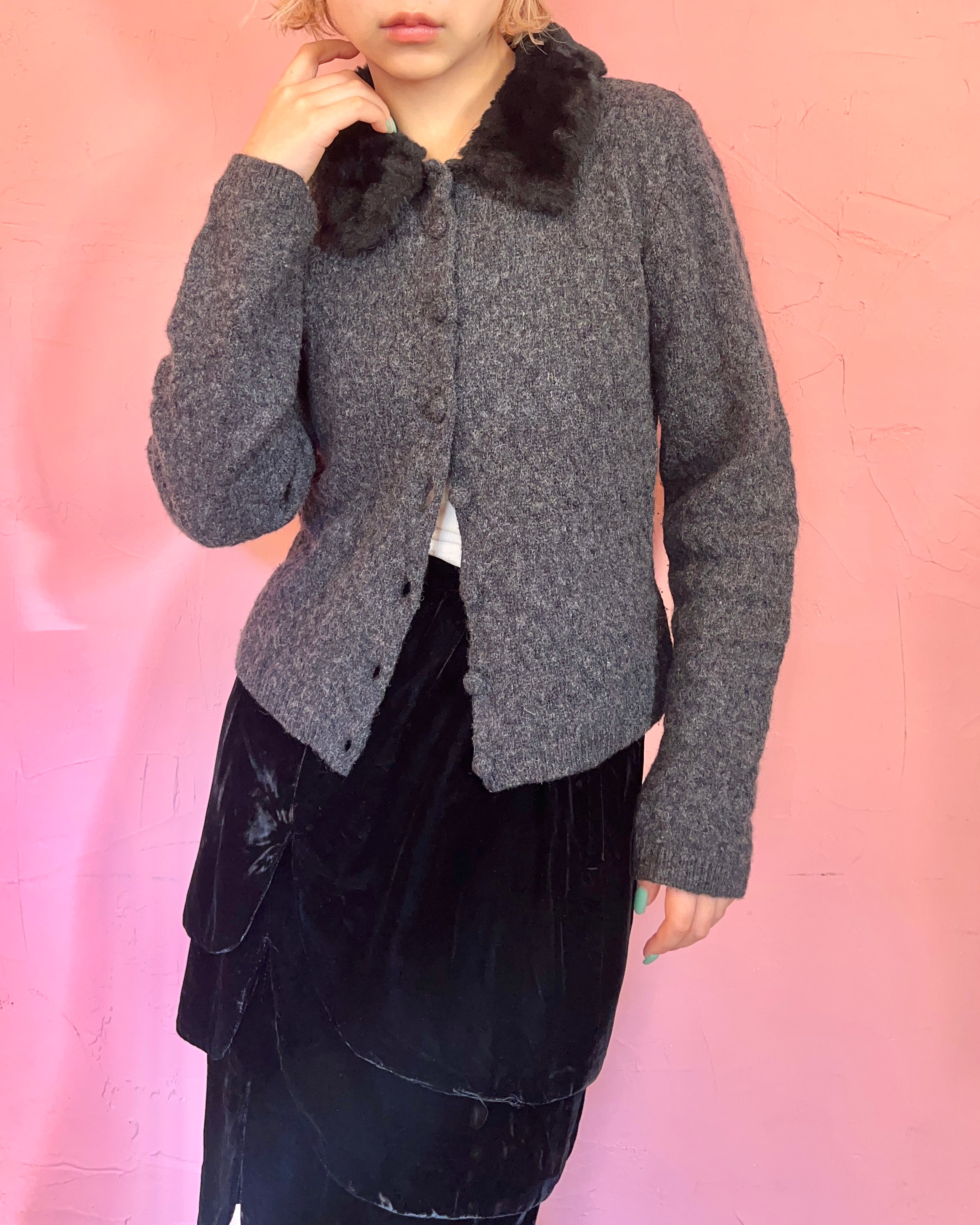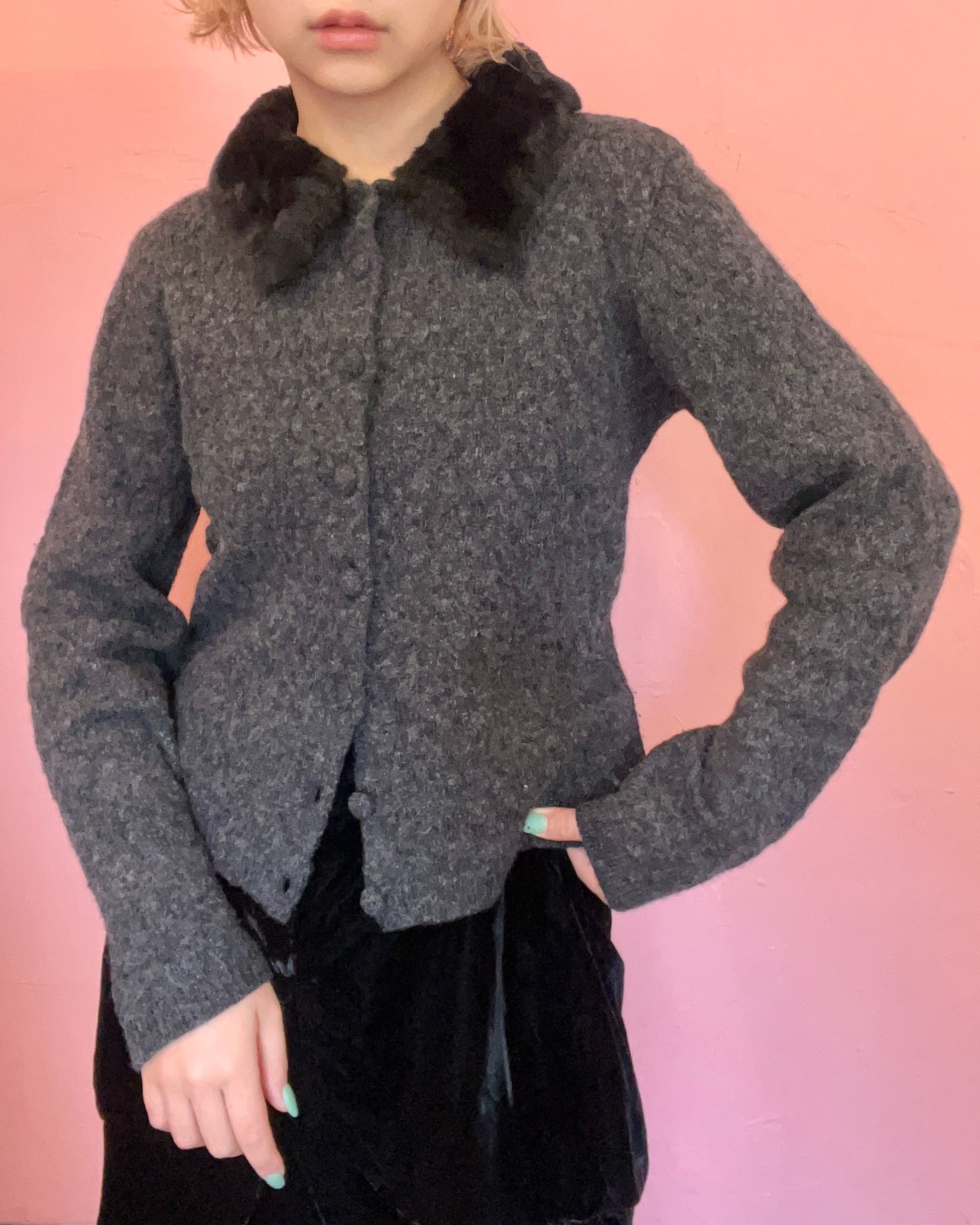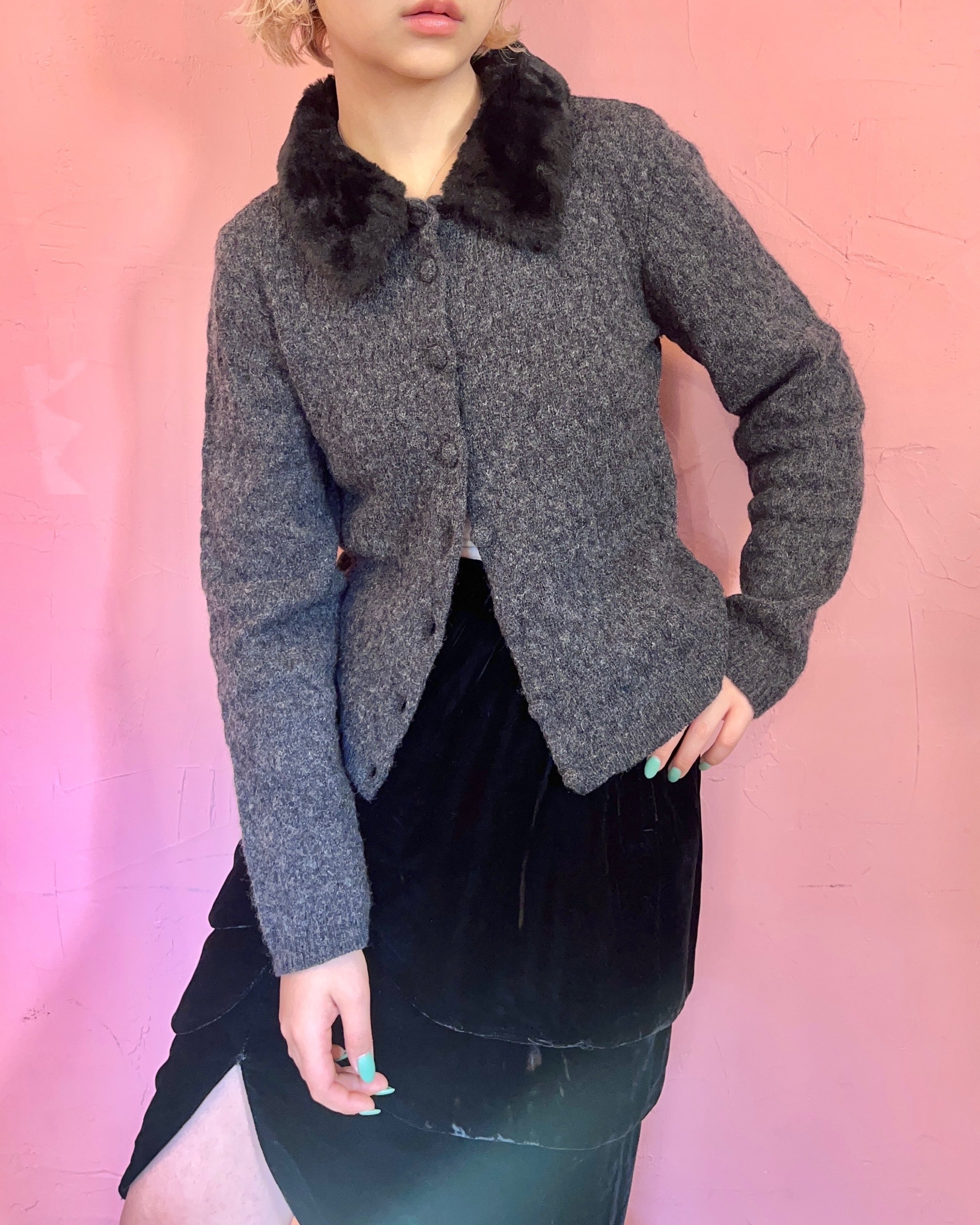 上品なファーカラー付きカーディガン