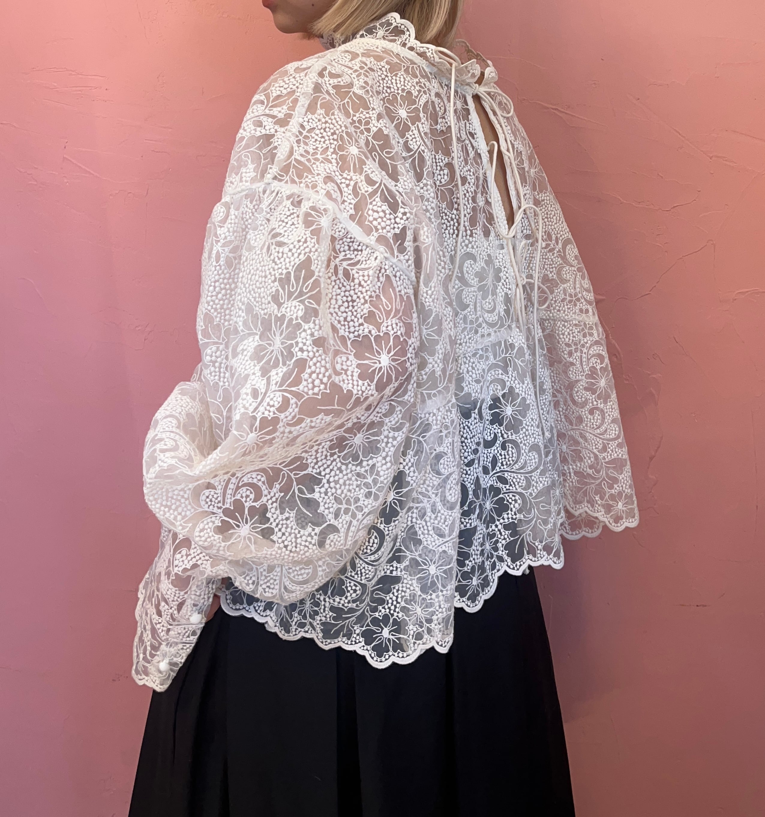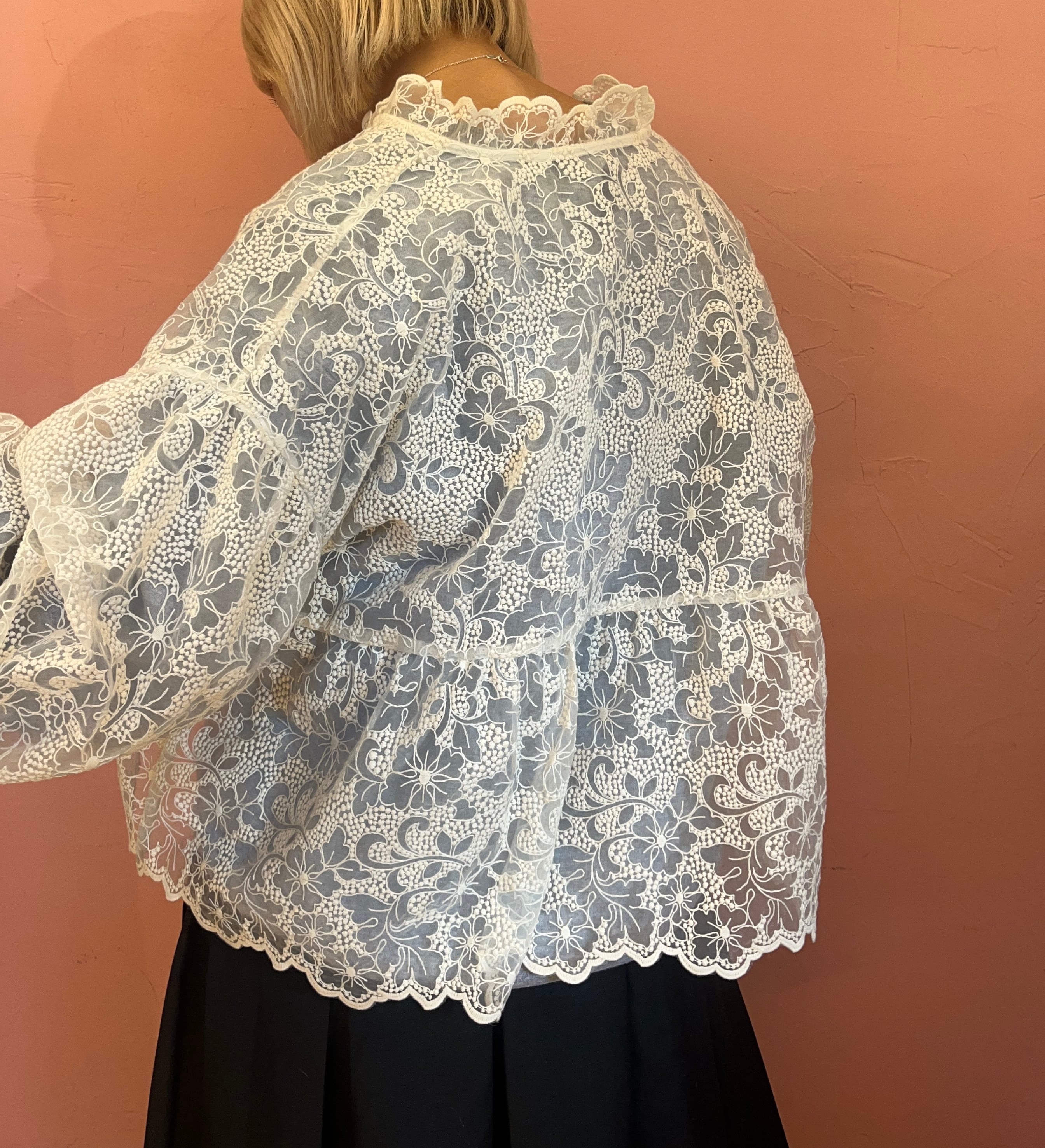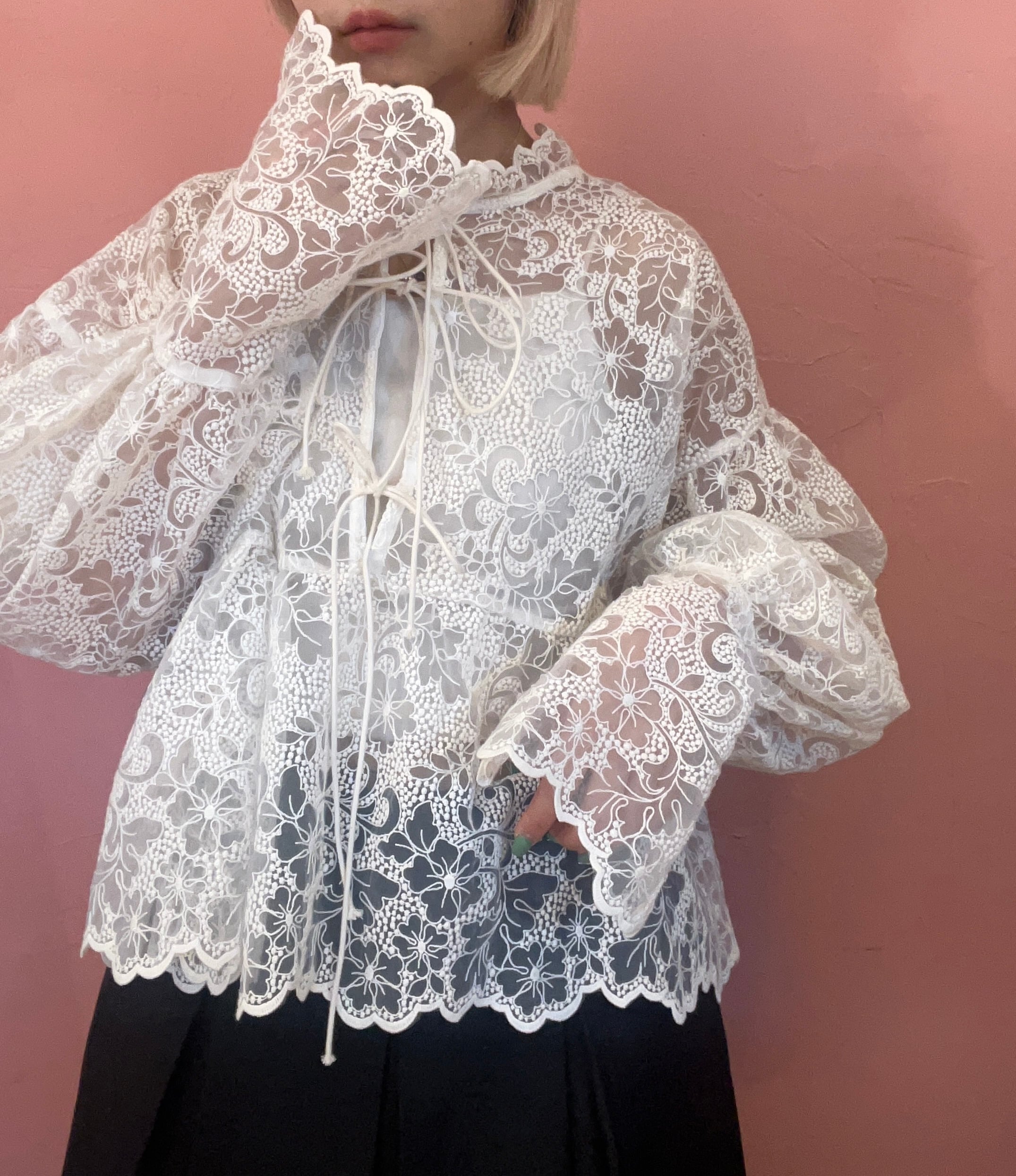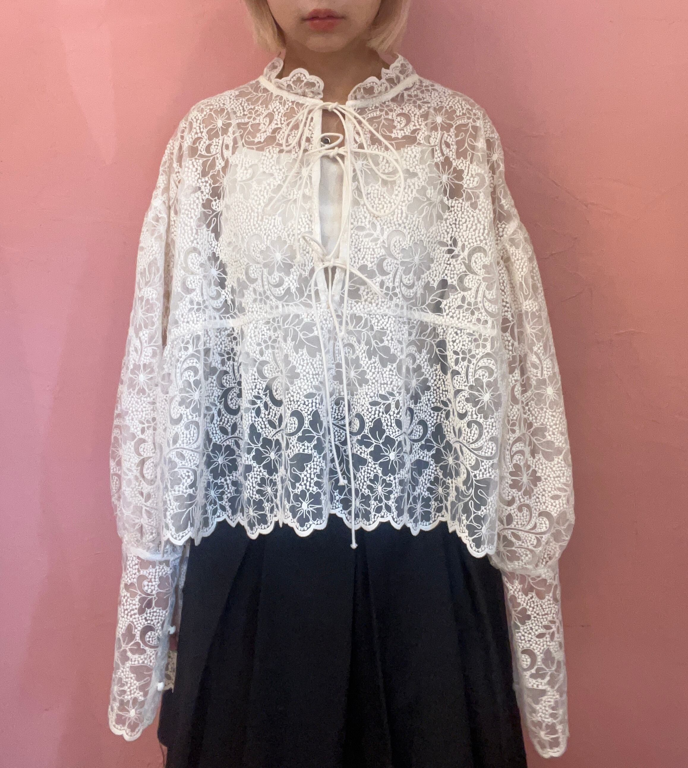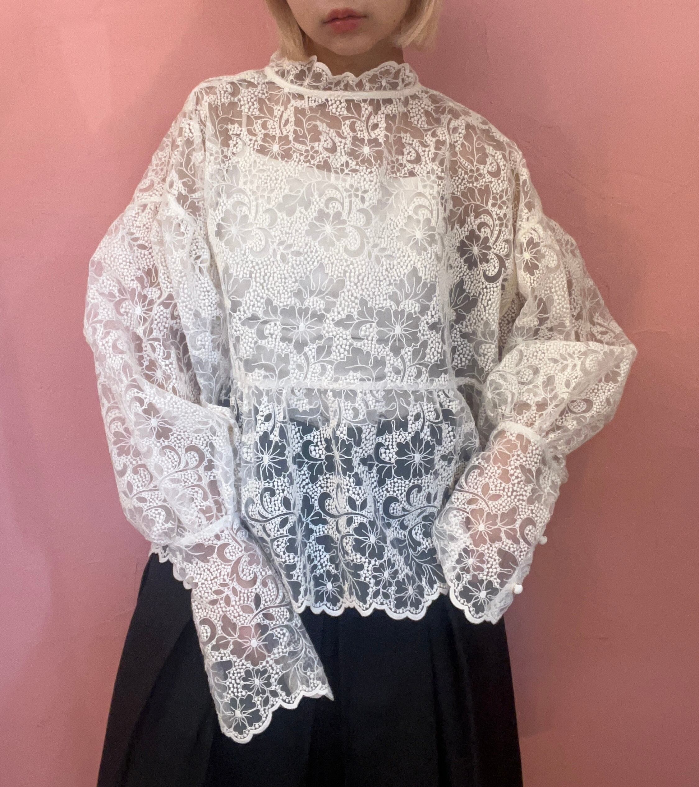 前後どちらでも使えるレースブラウス
