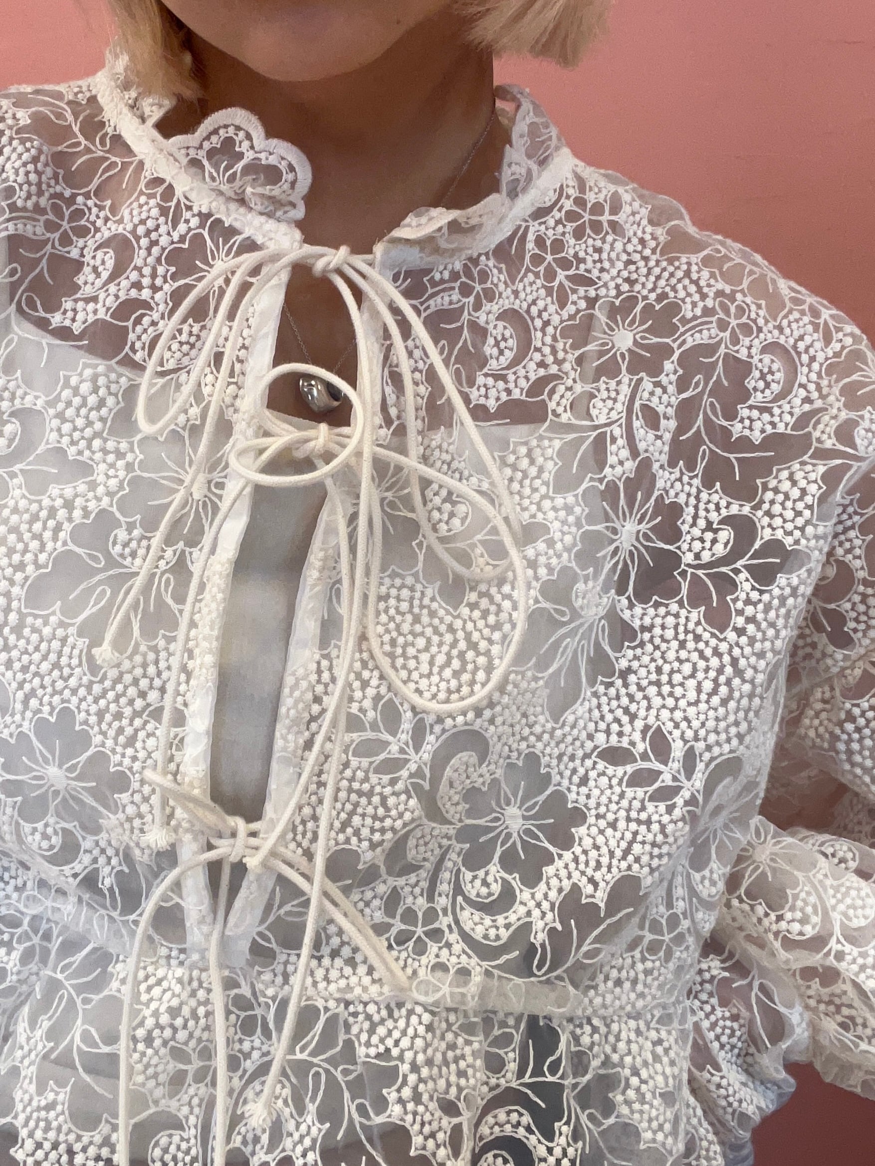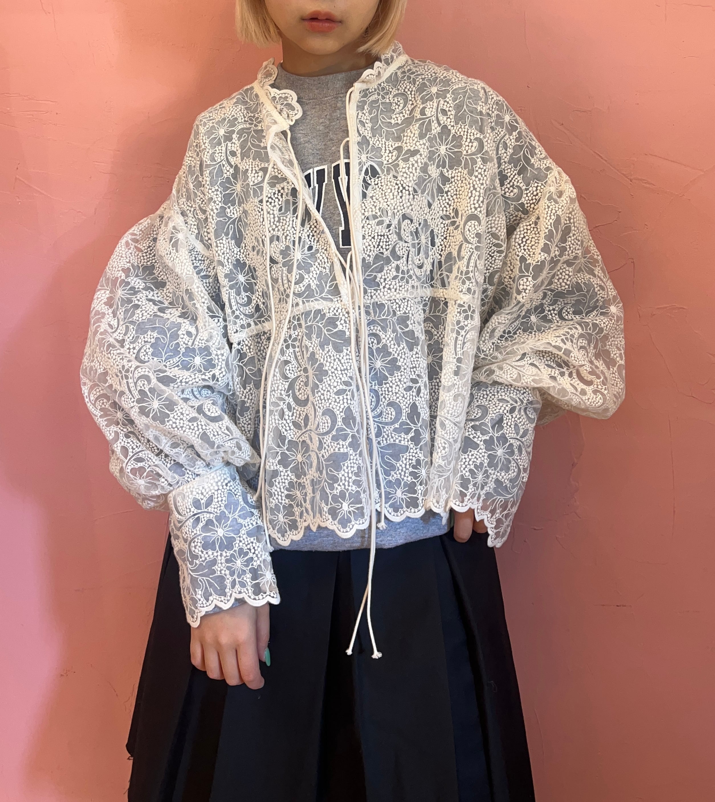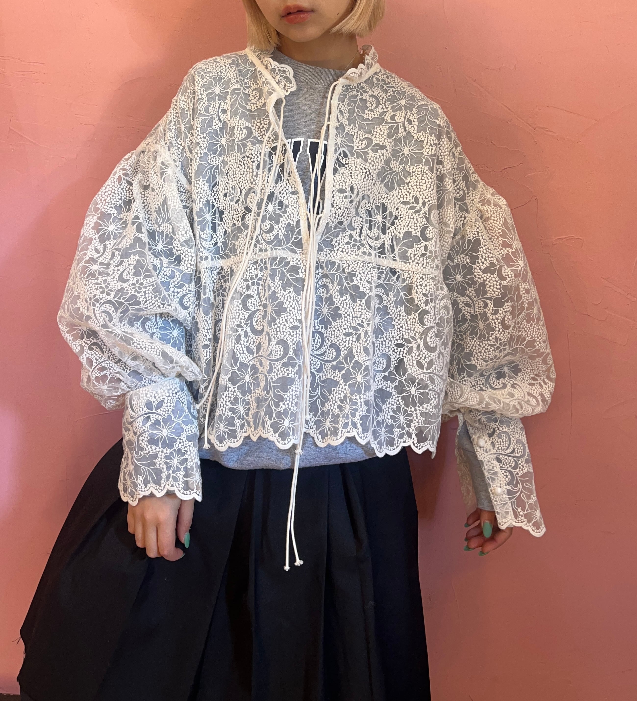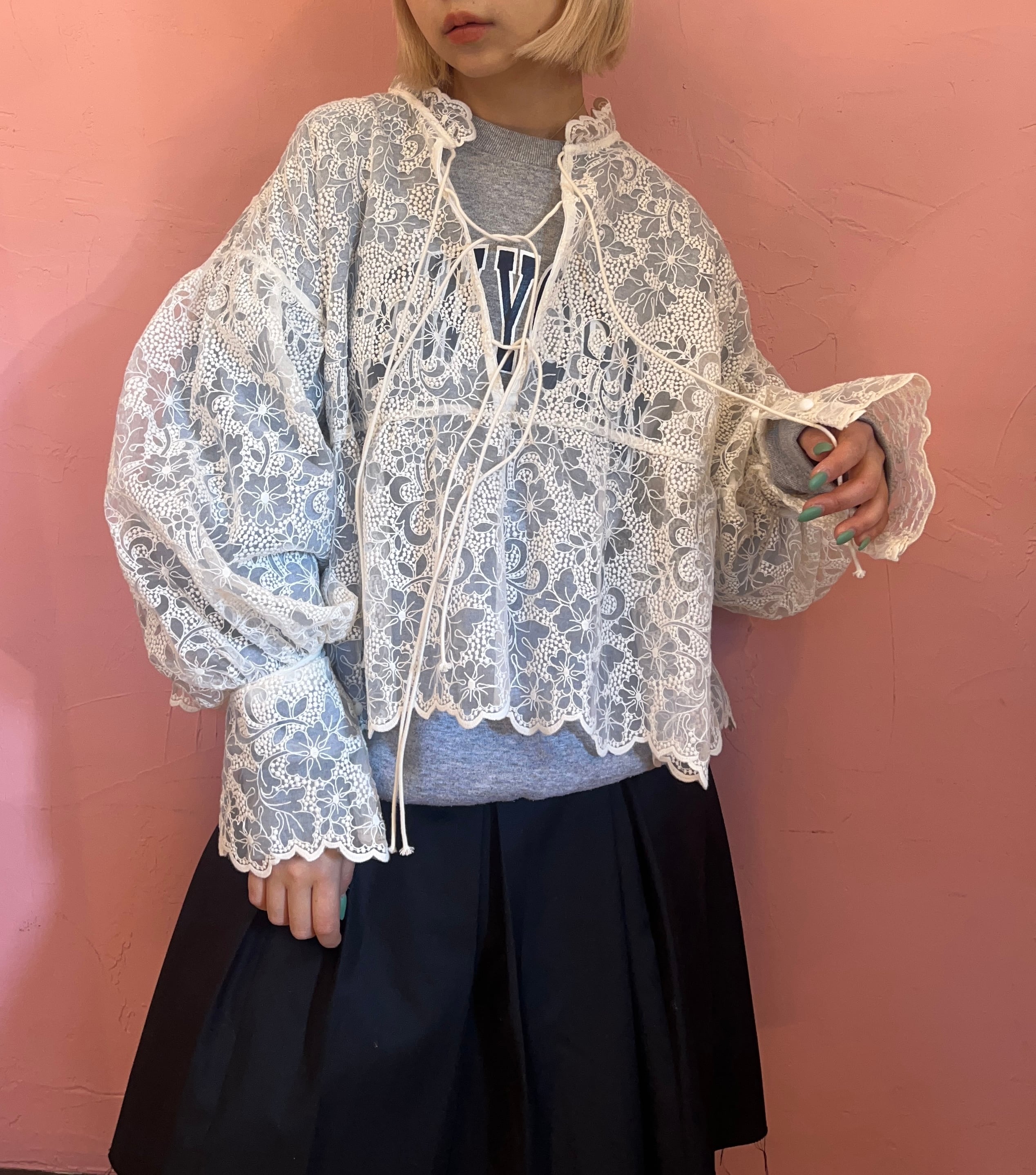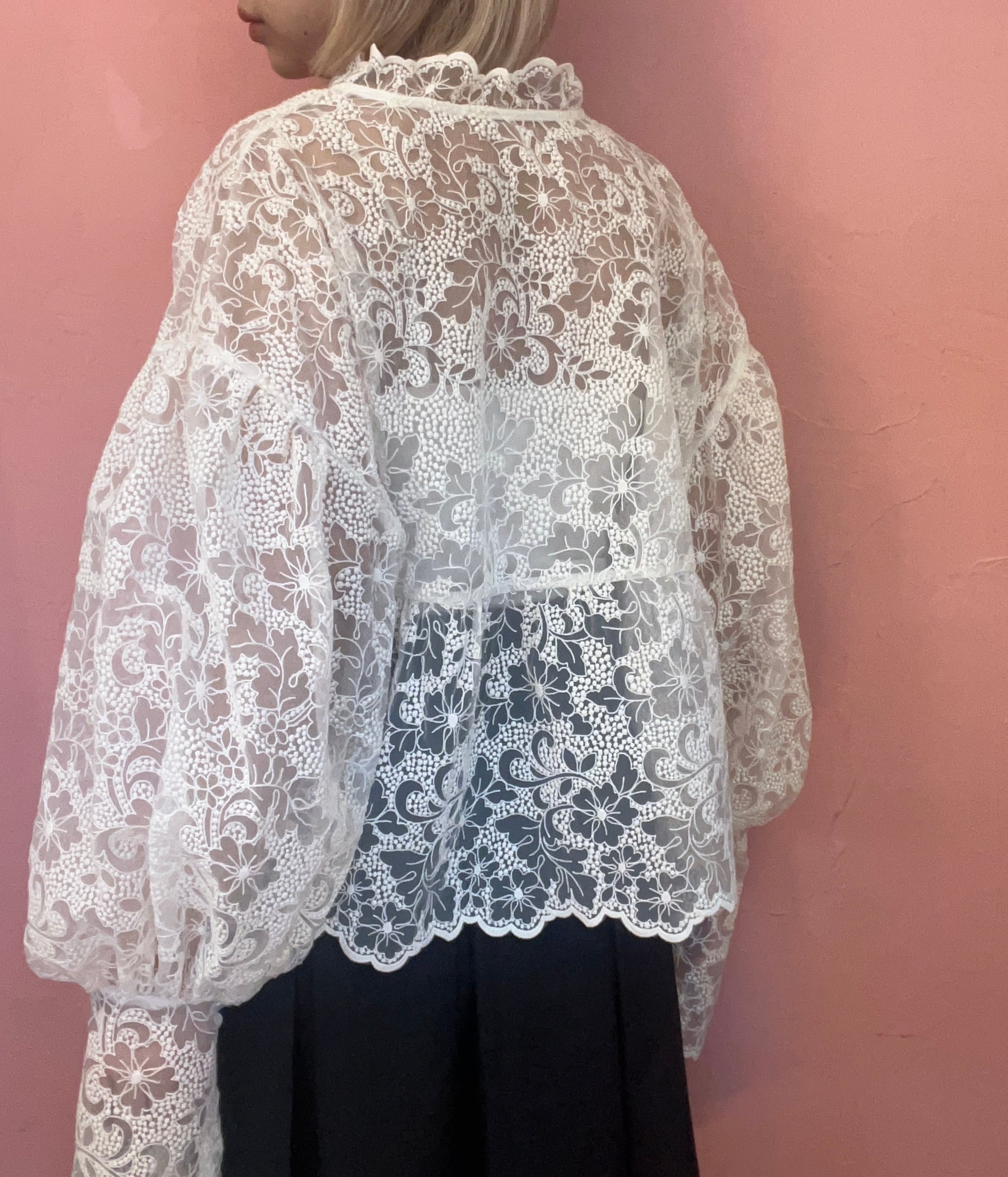 前後どちらでも使えるレースブラウス