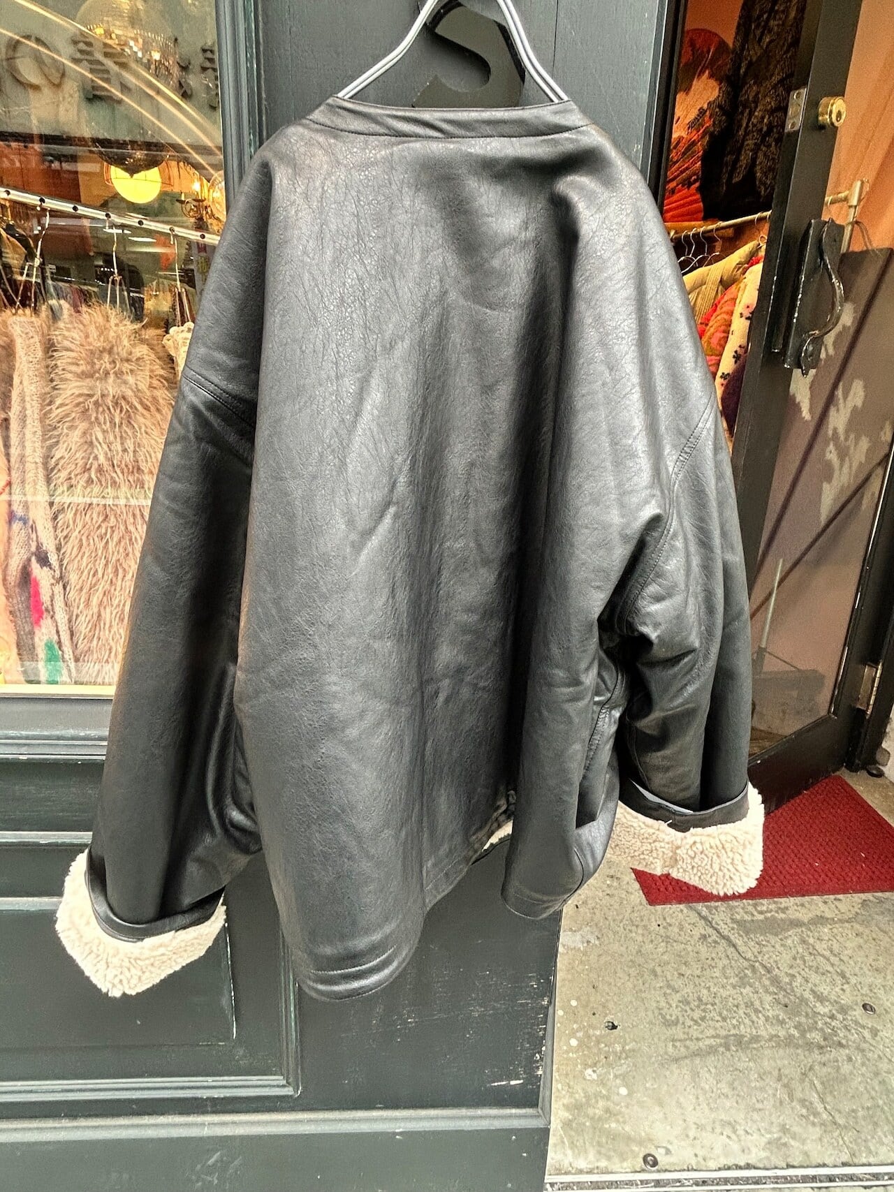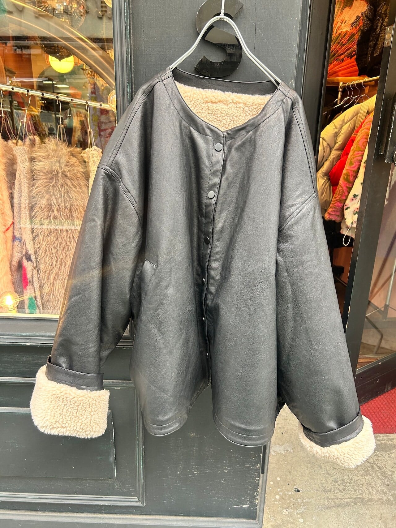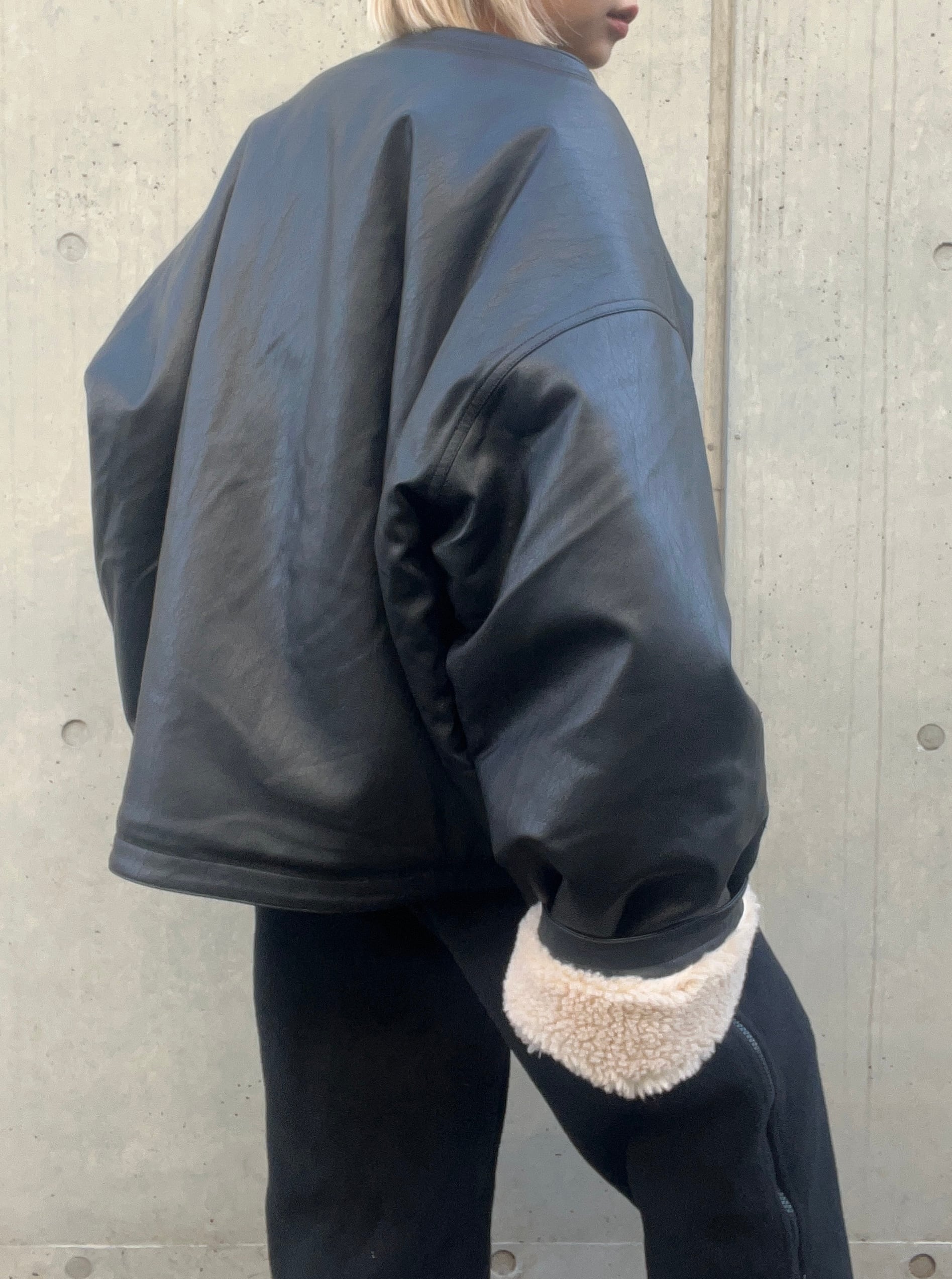 vegan leather boa jacket