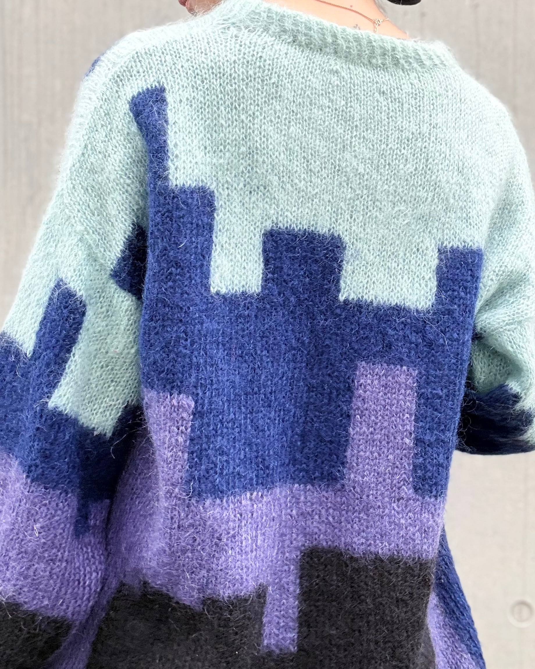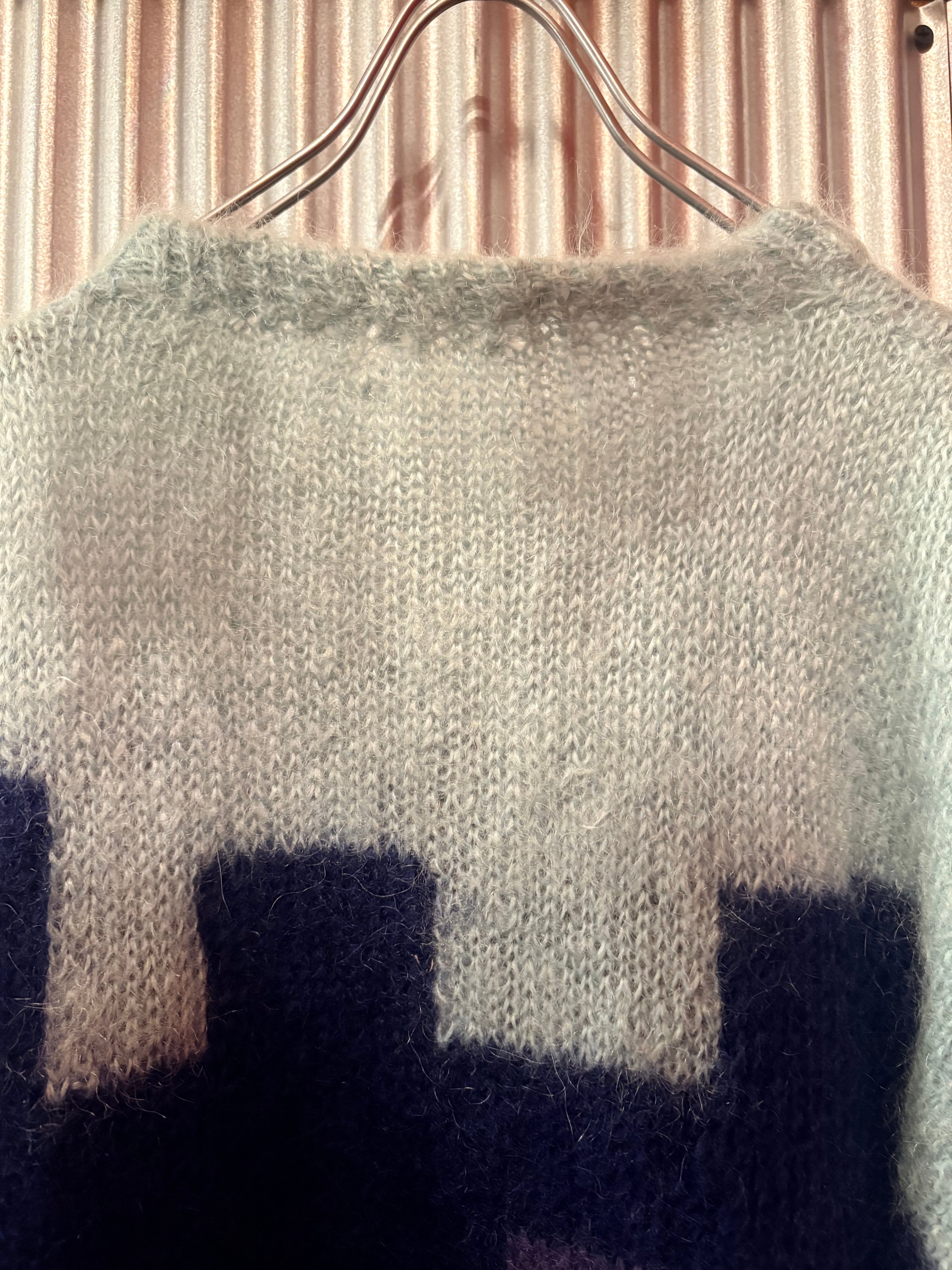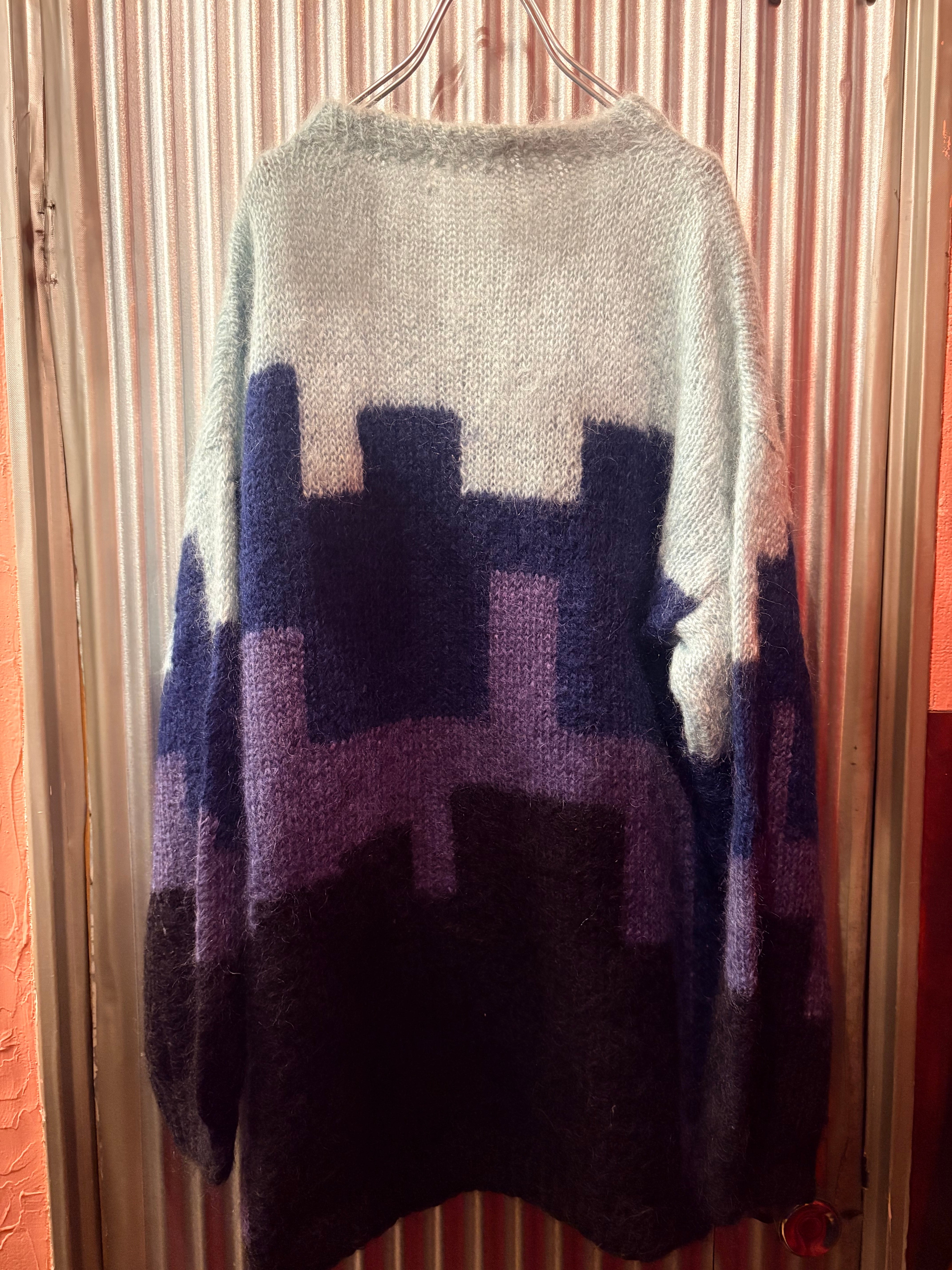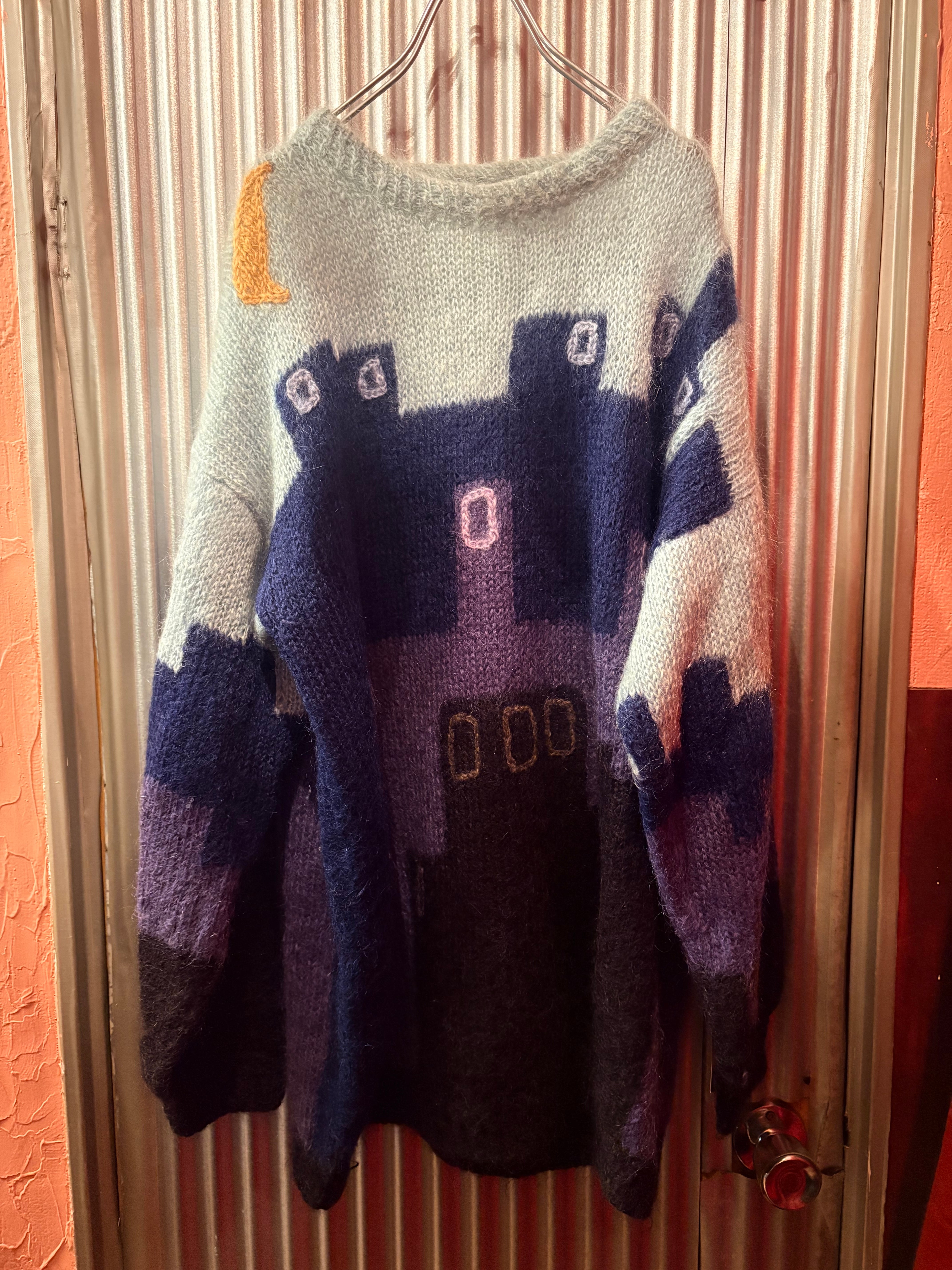 euro 1980's night view motif mohair sweater
