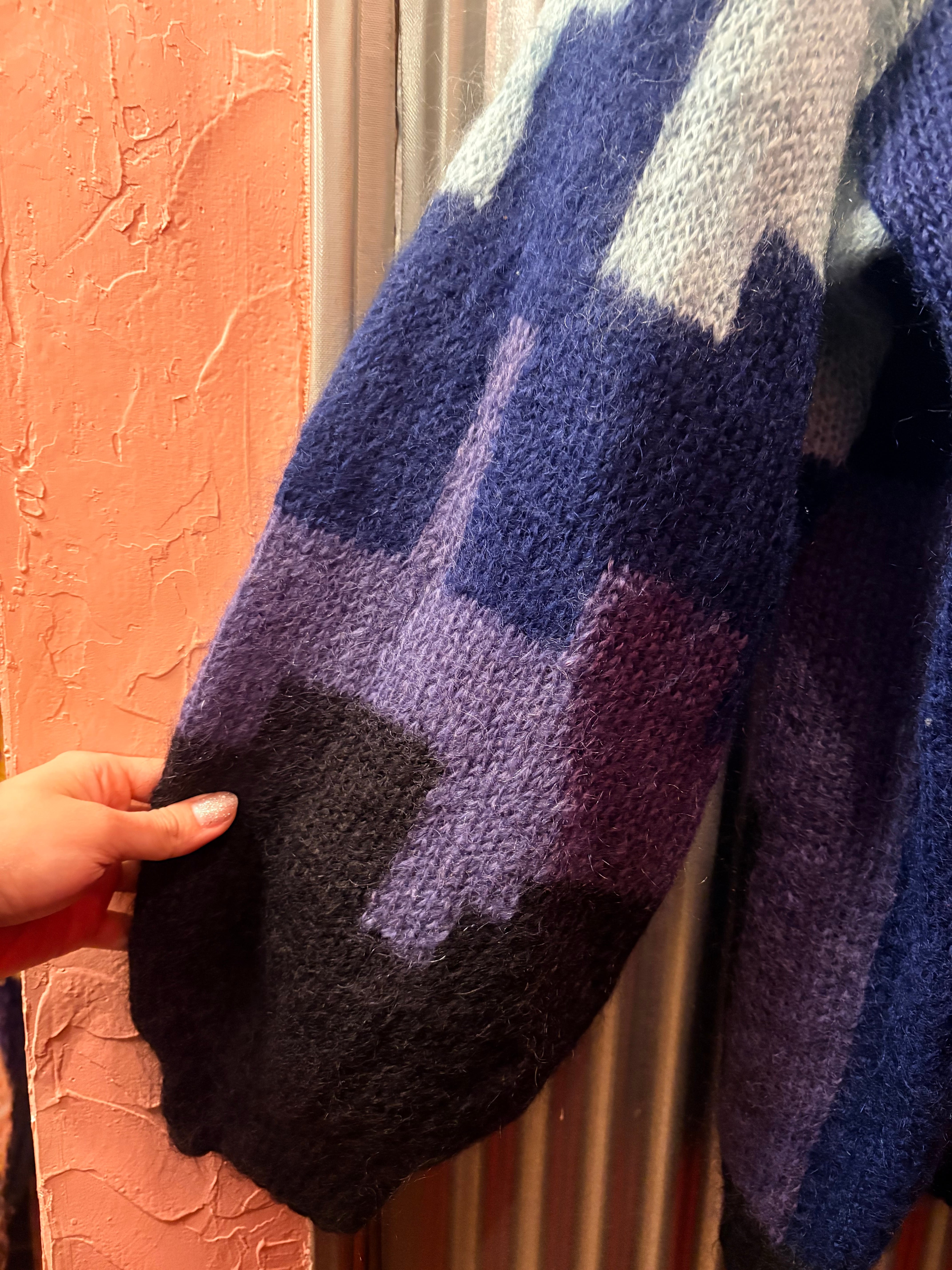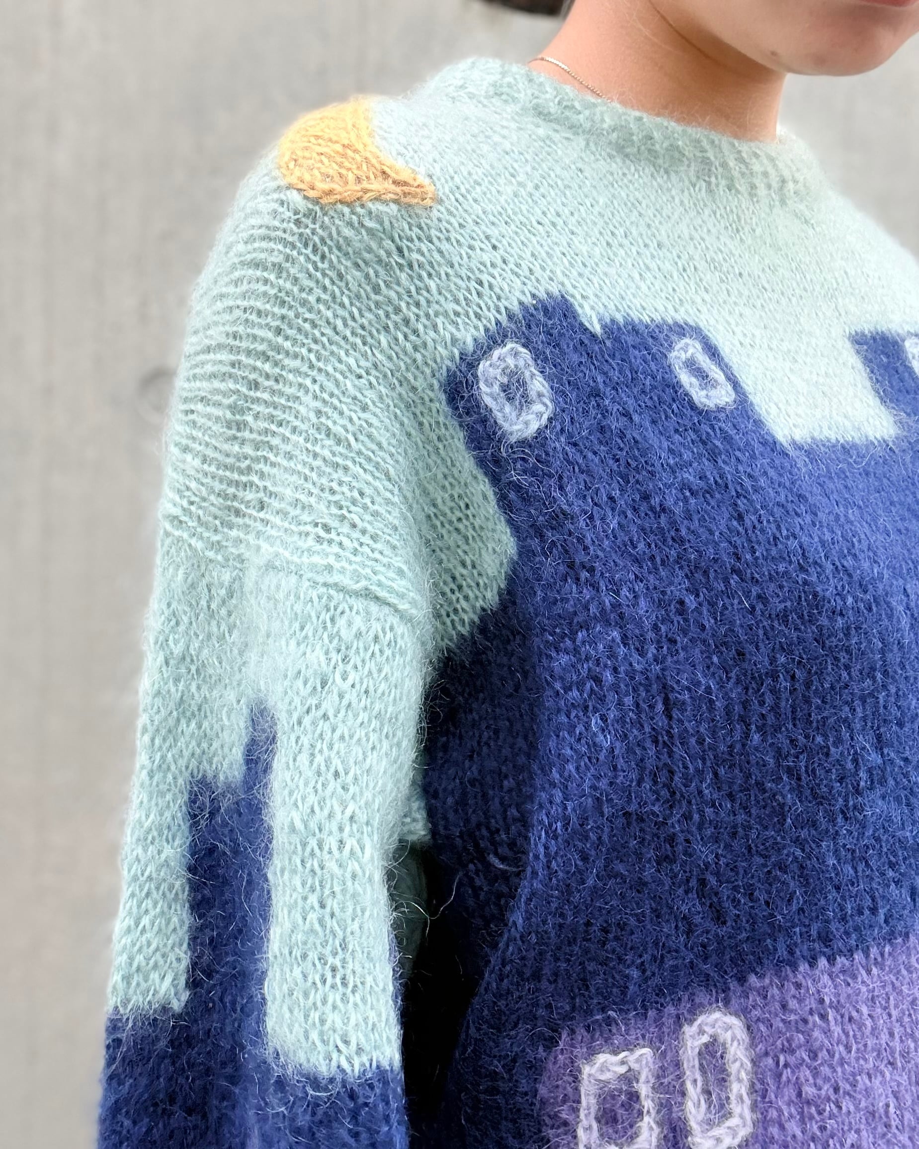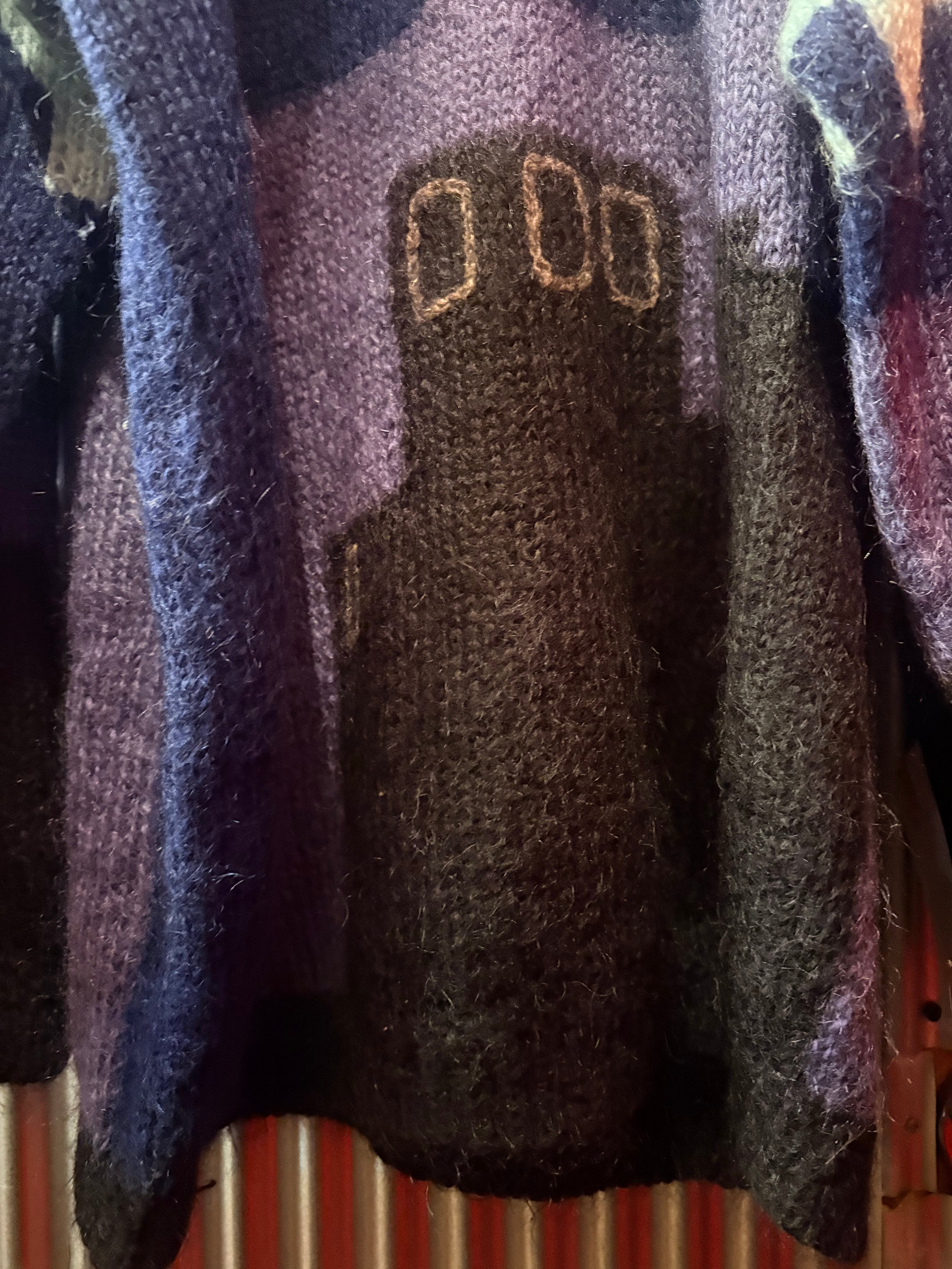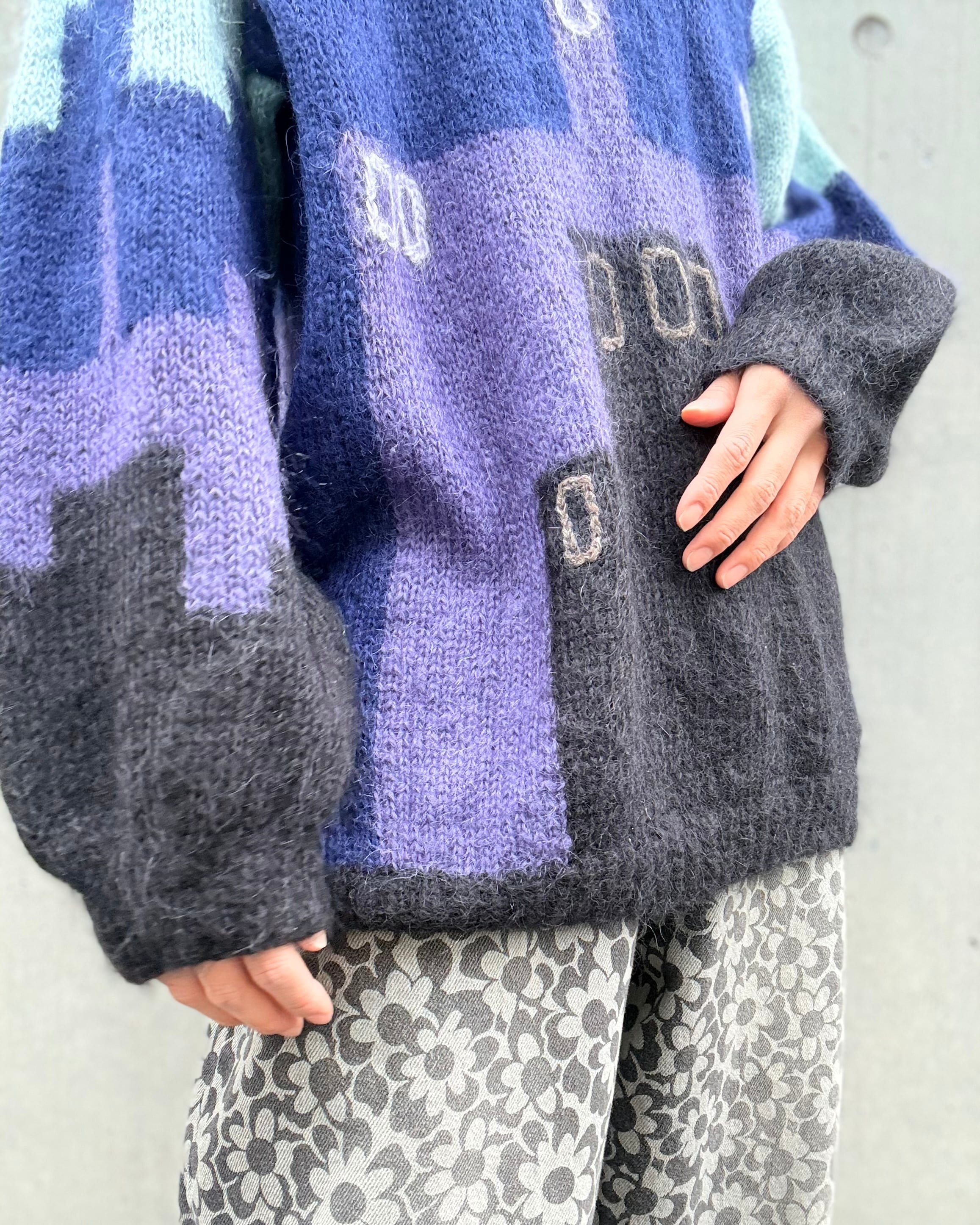 euro 1980's night view motif mohair sweater