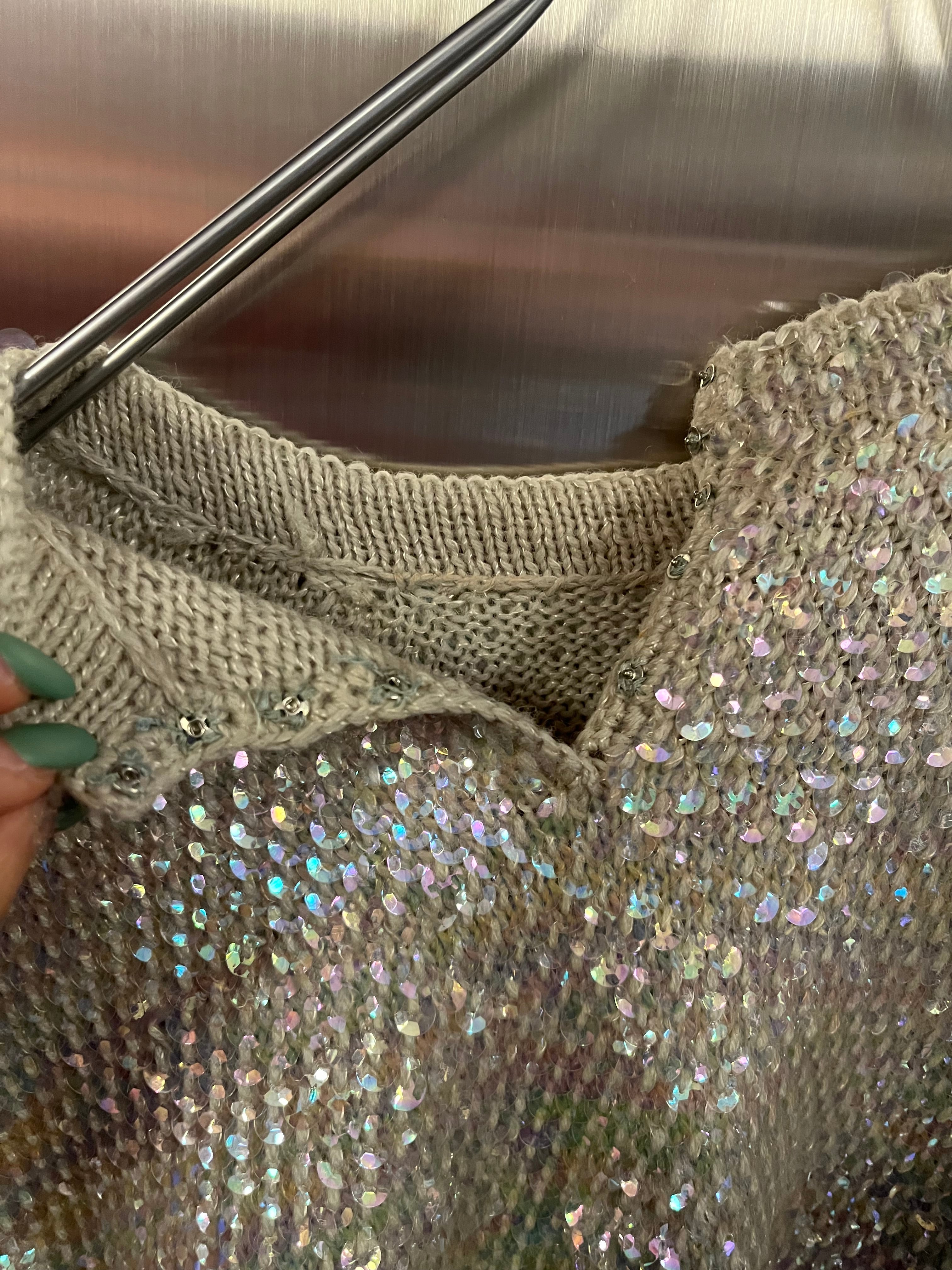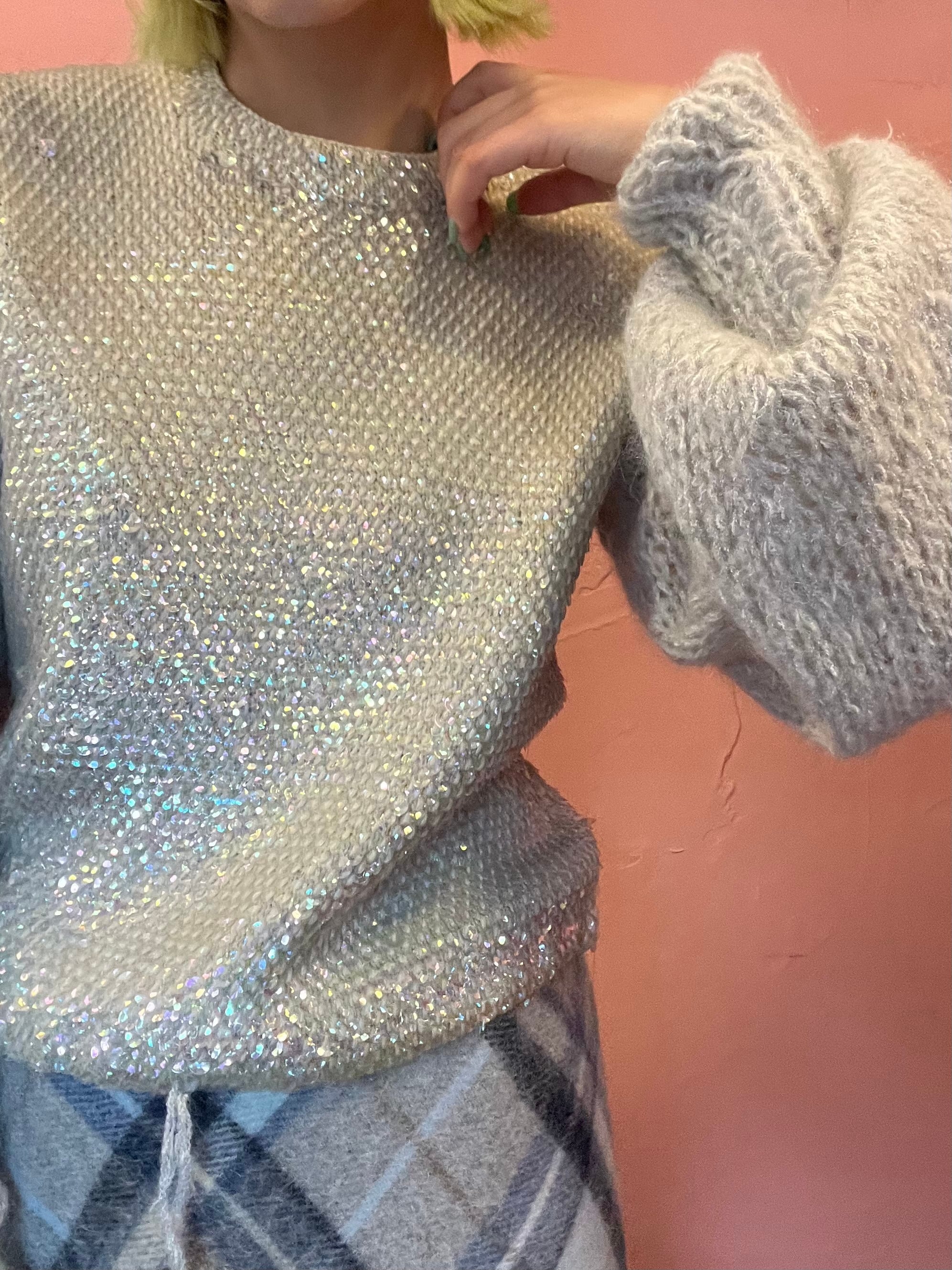 スパンコールをふんだんに使った贅沢なセーター