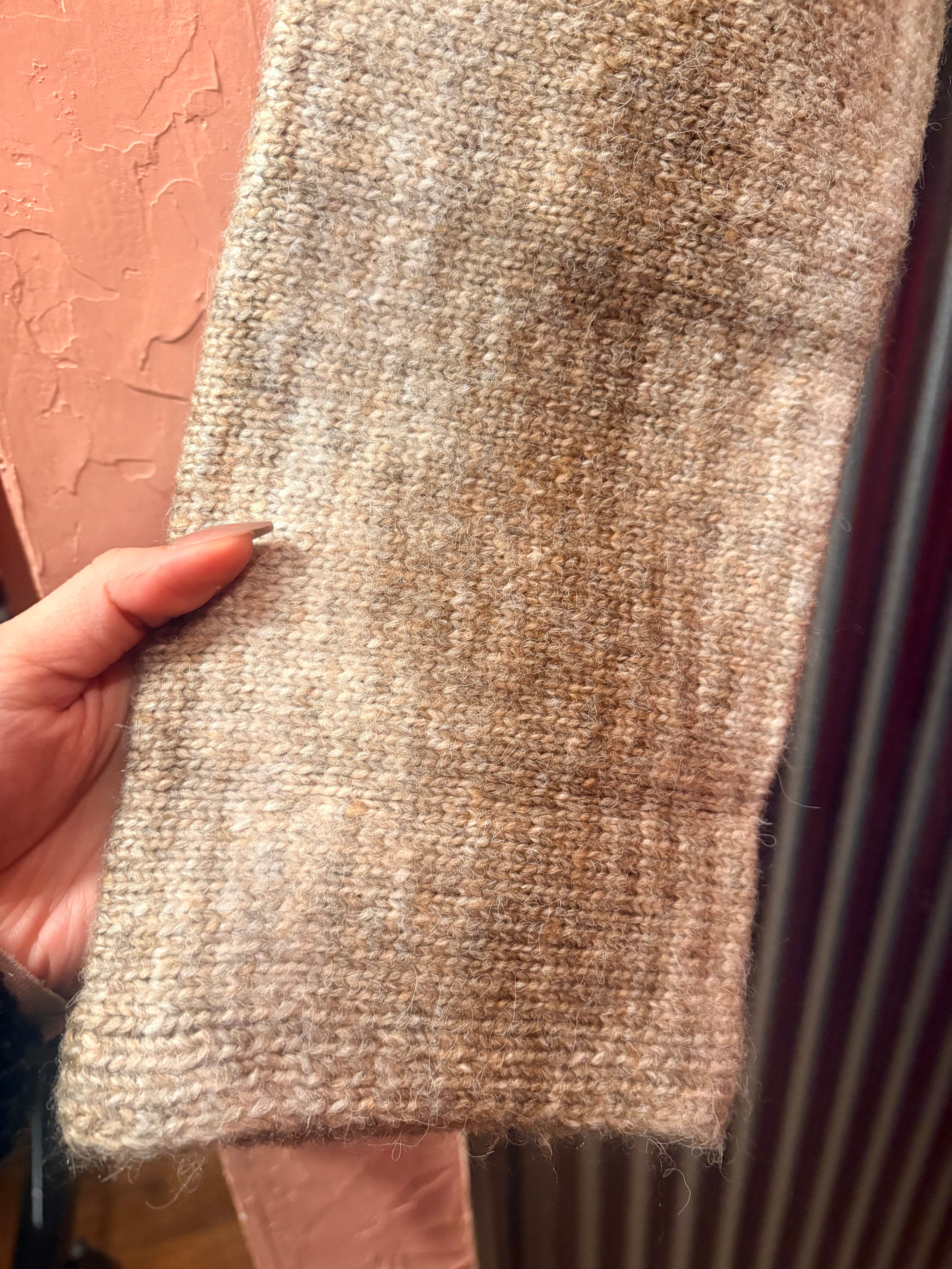 やさしいブラウンカラーとニュアンス感のある柄がかわいいセーター。