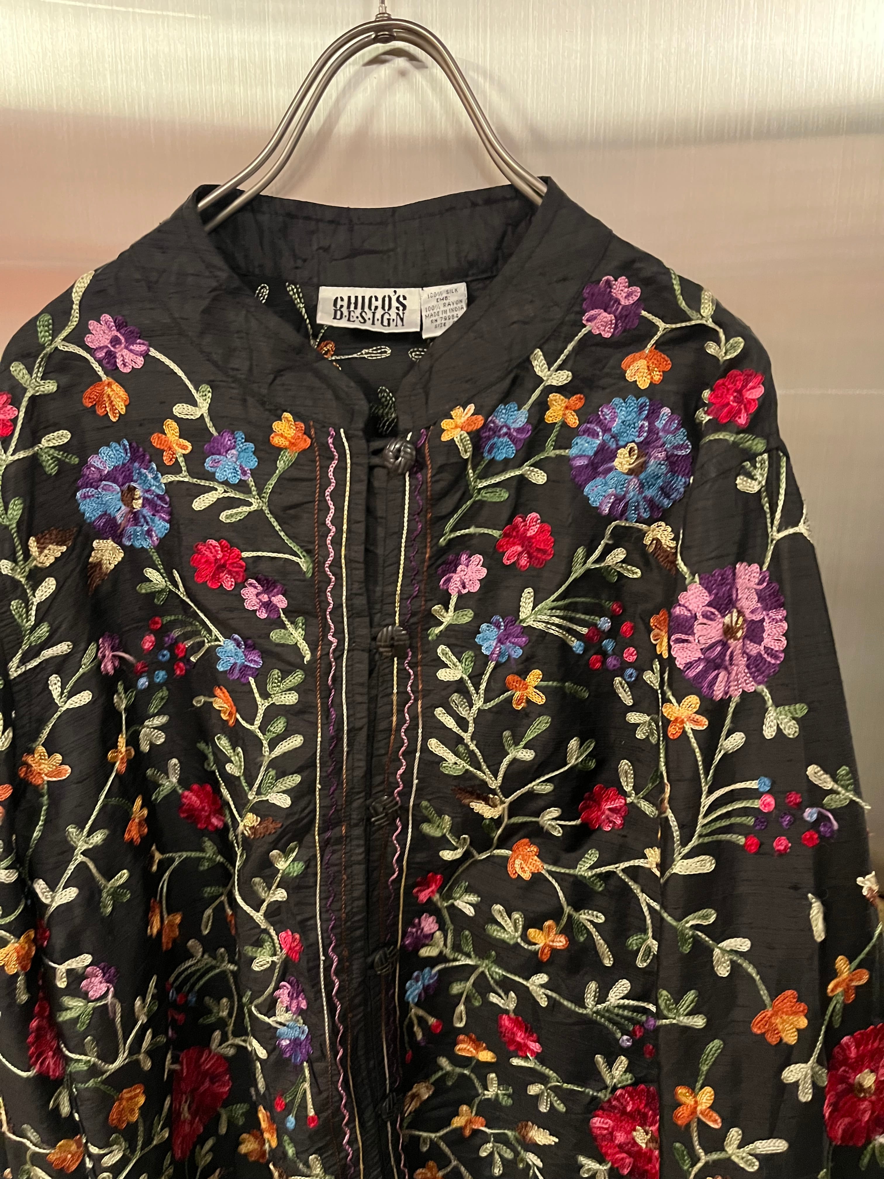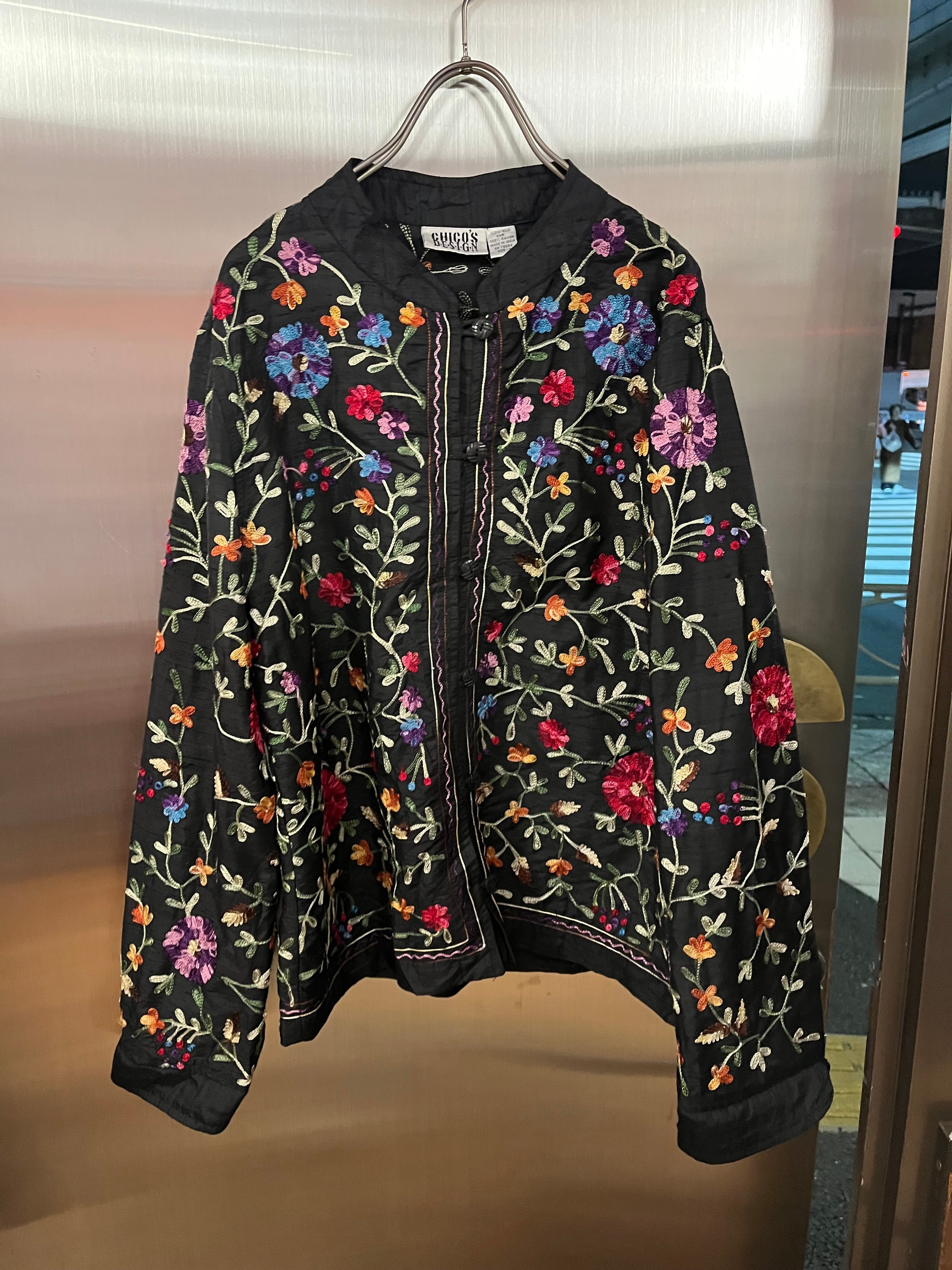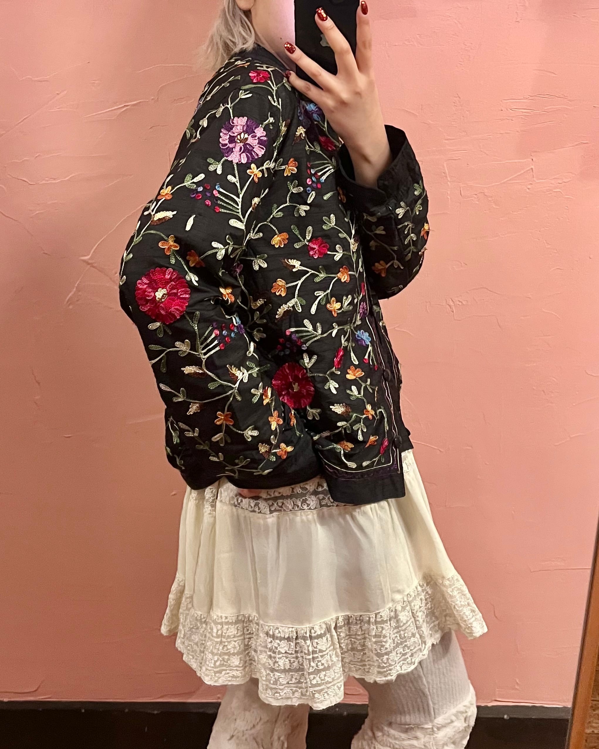 黒地にカラフルな刺繍が映える1枚です