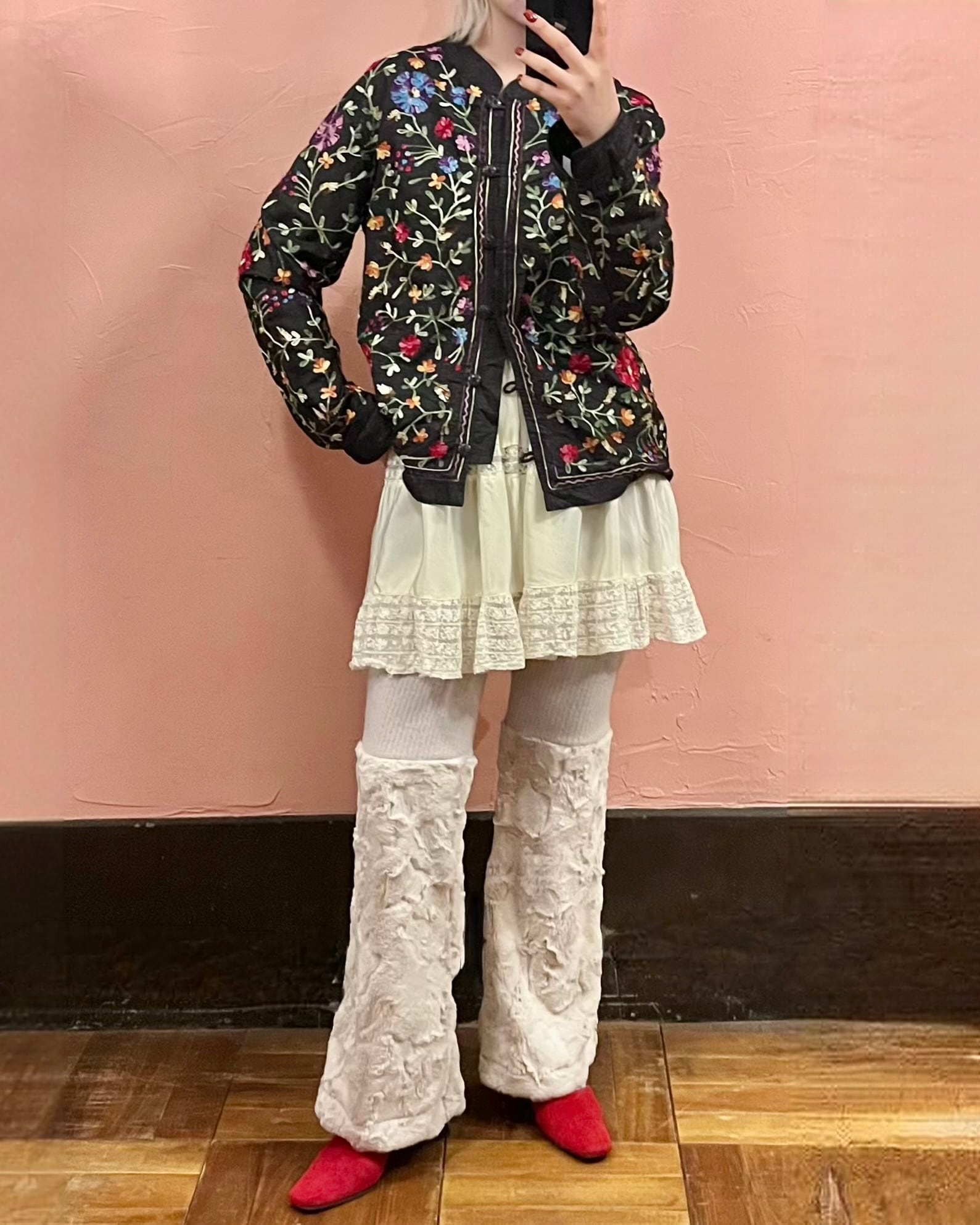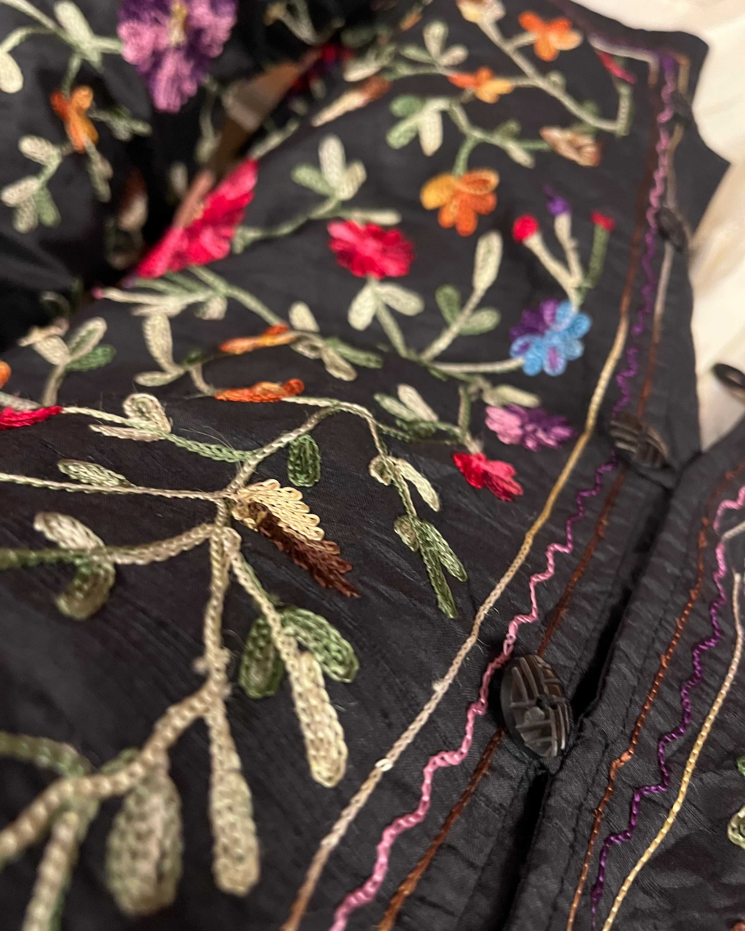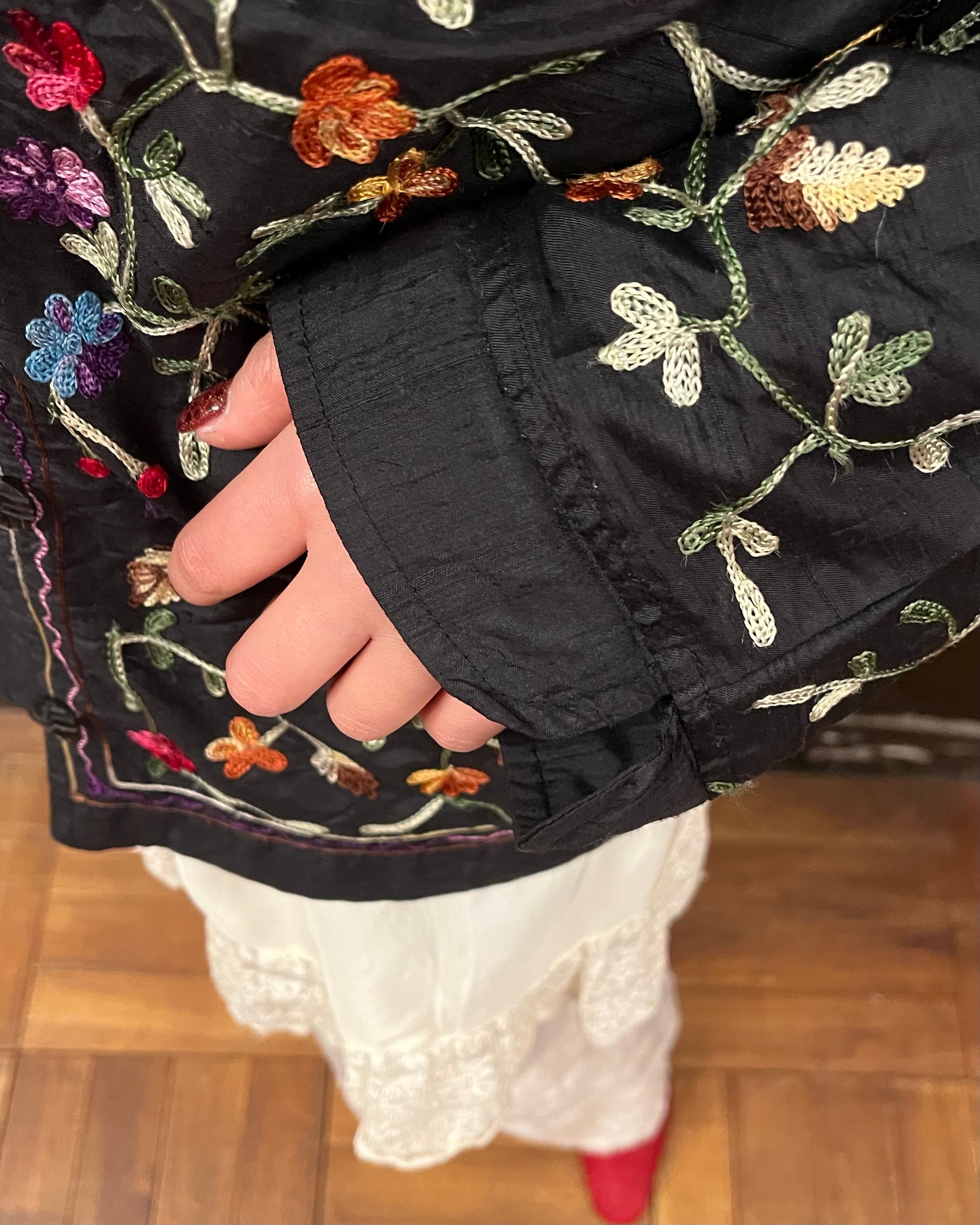 黒地にカラフルな刺繍が映える1枚です