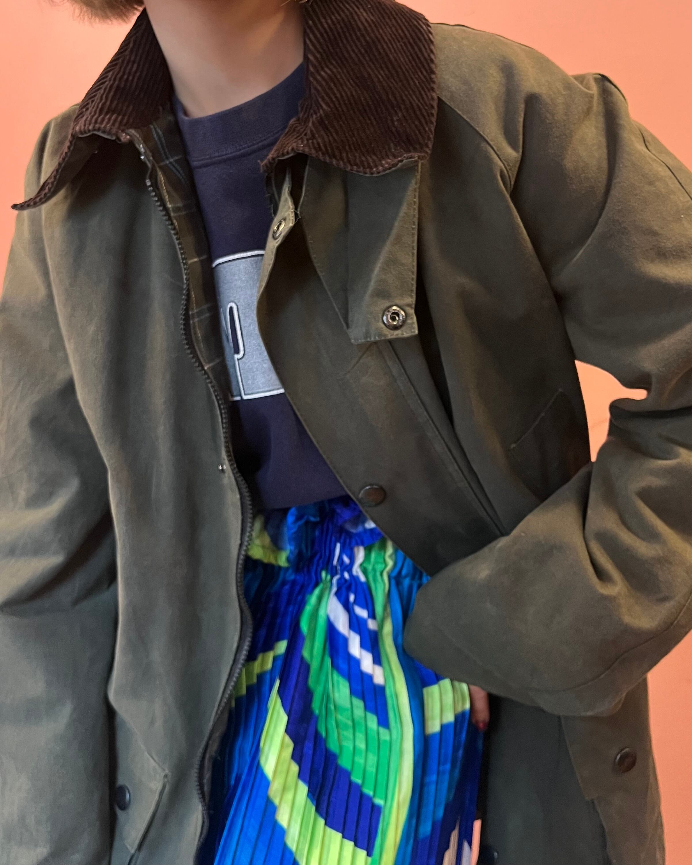 オイルド特有のしっとりした質感と、深みのあるカーキカラーが雰囲気のでる一枚です
