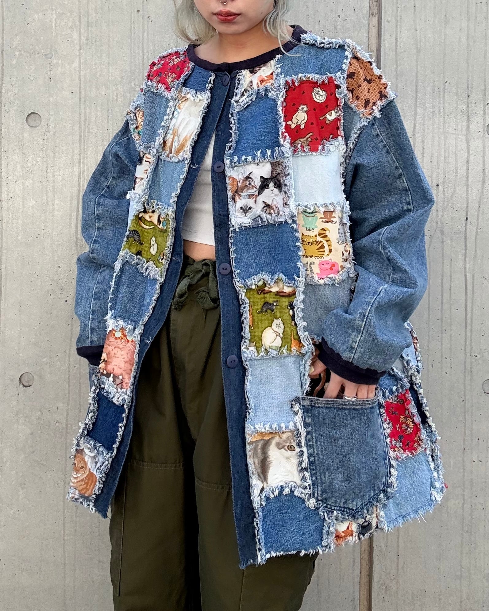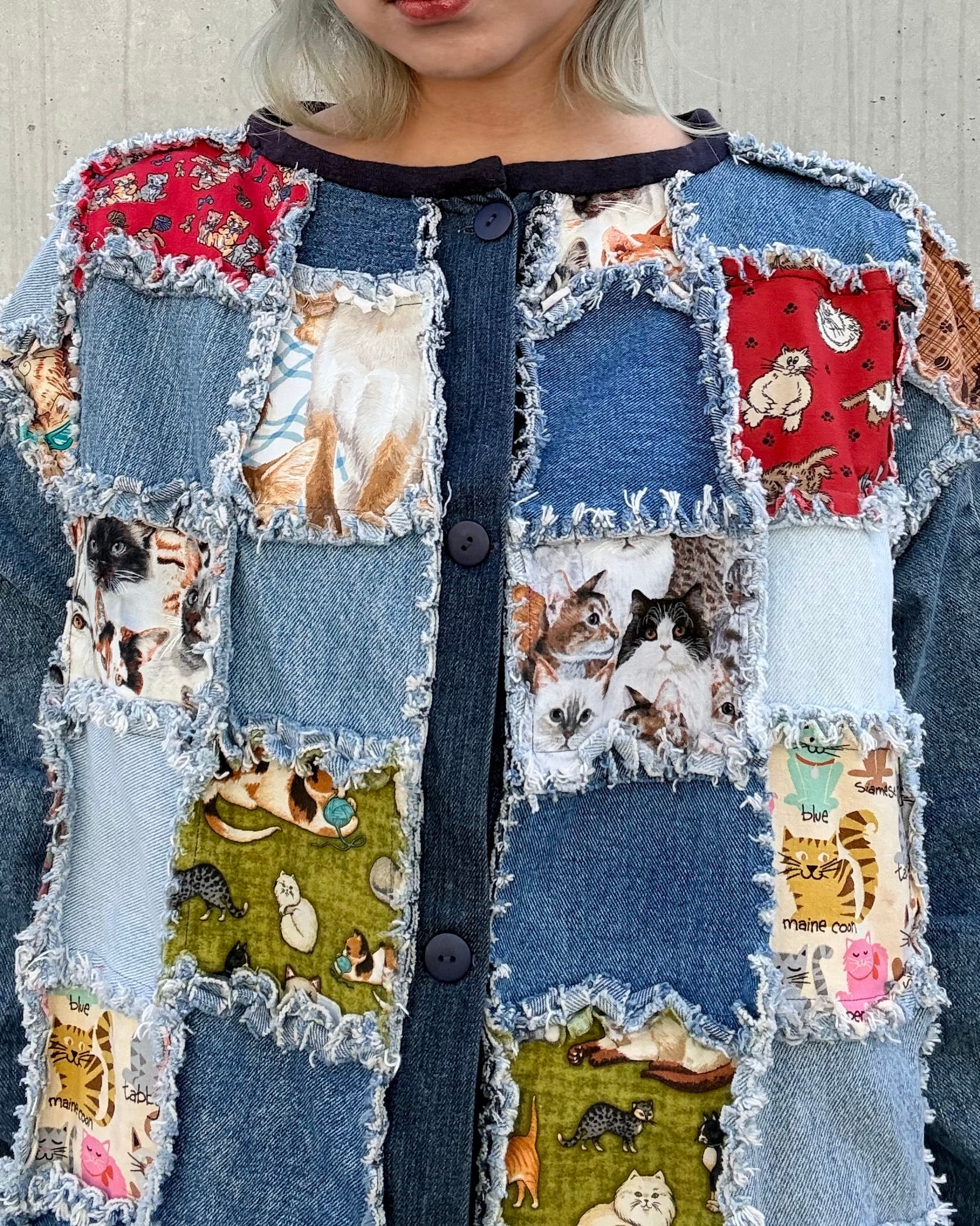 色々なねこ柄の素材が使用されている主役級アイテム☺︎リアルなイラストから落書きのようなものまで、目を引く柄がとてもかわいいです。