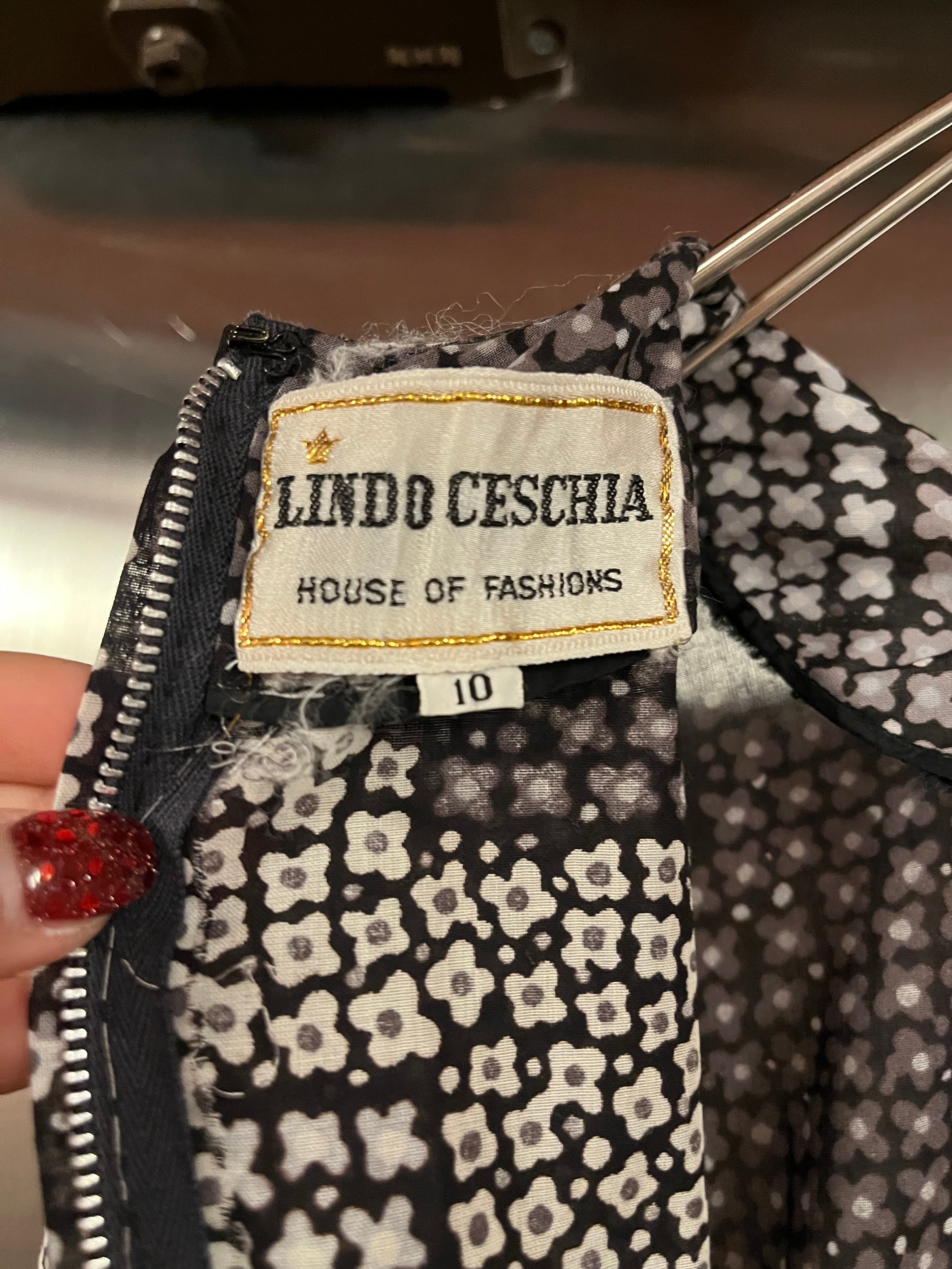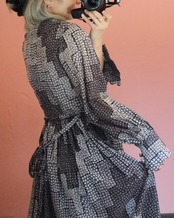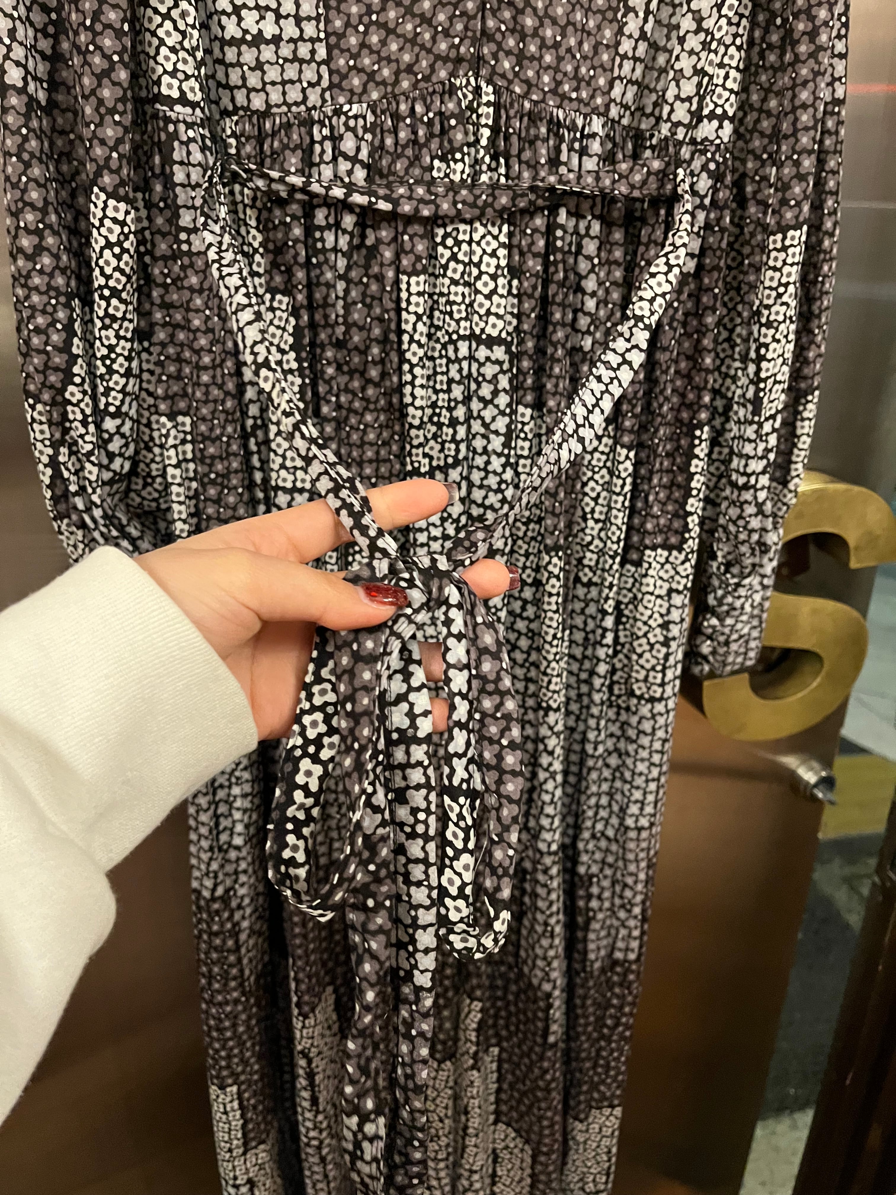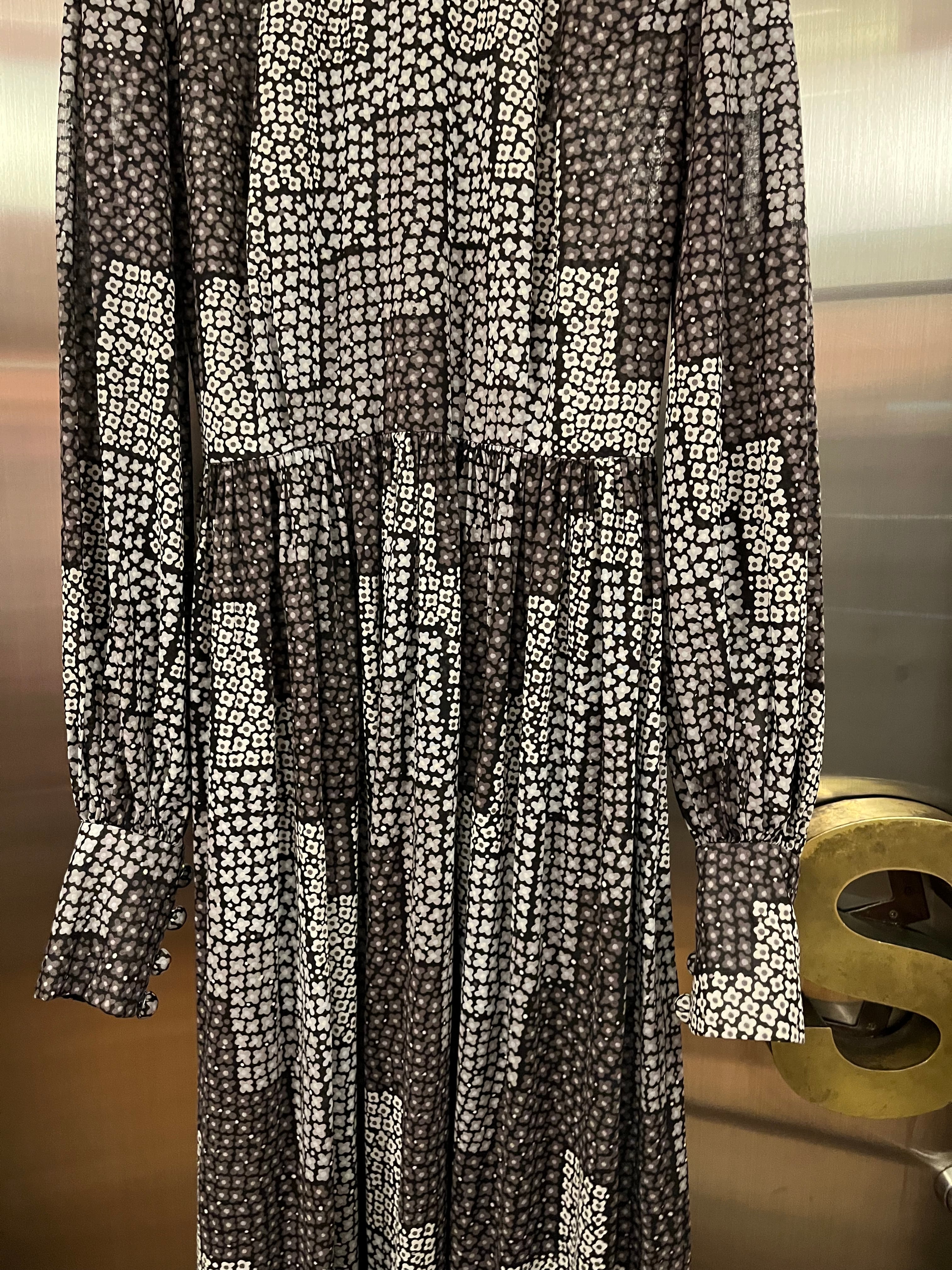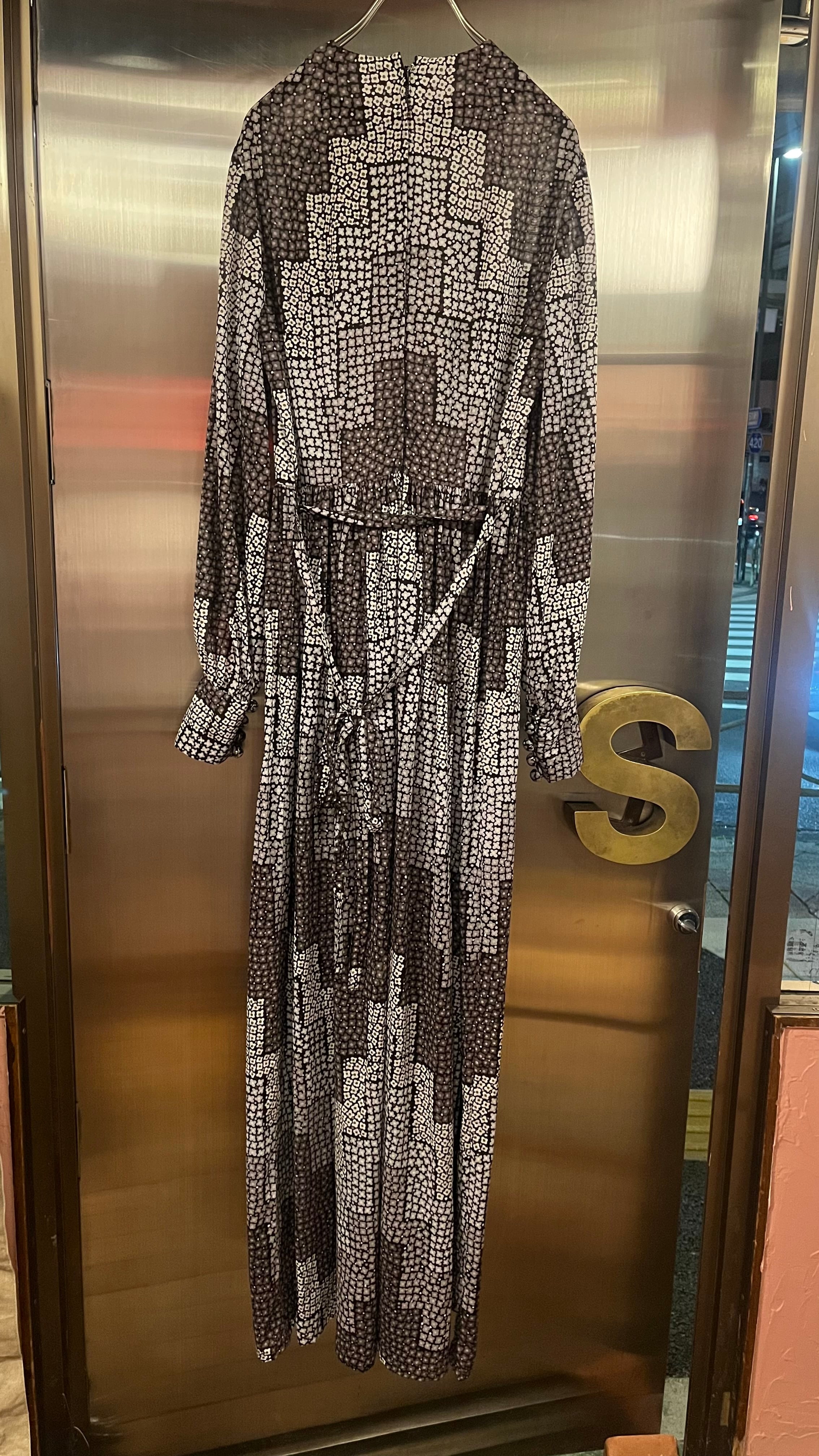 遠目でみるとジグザグとした柄に見えますが、近づくと小さなお花がぎっしりと詰まったかわいいワンピ