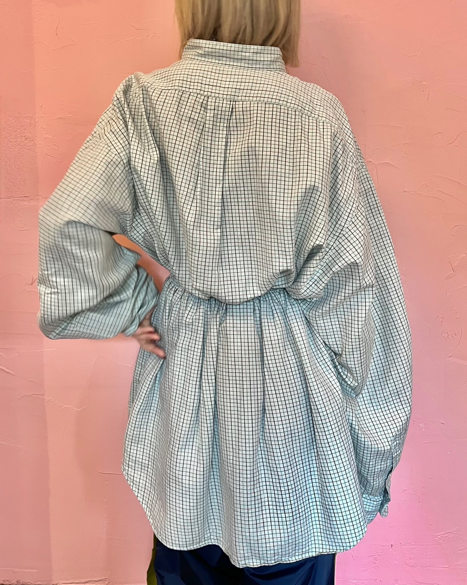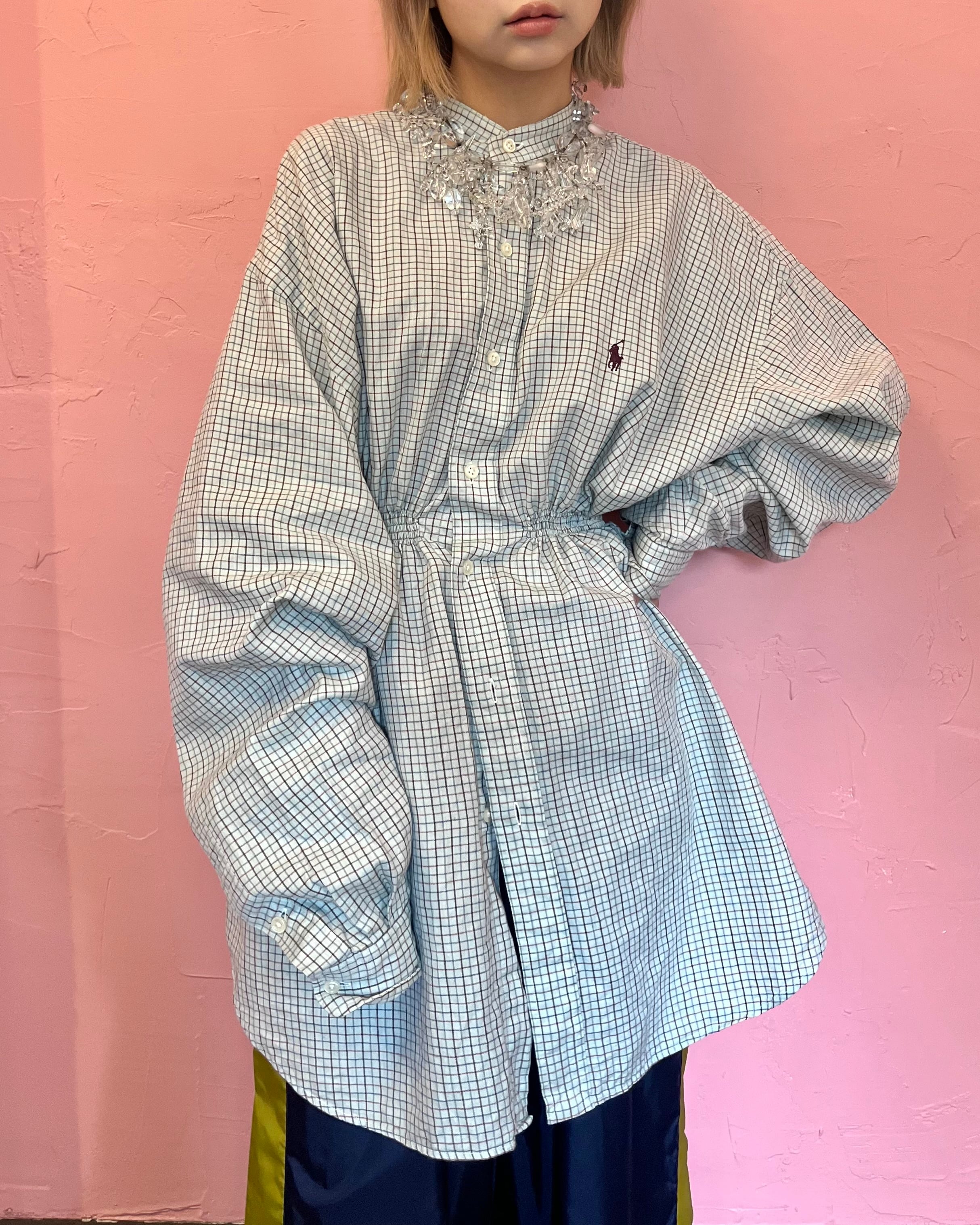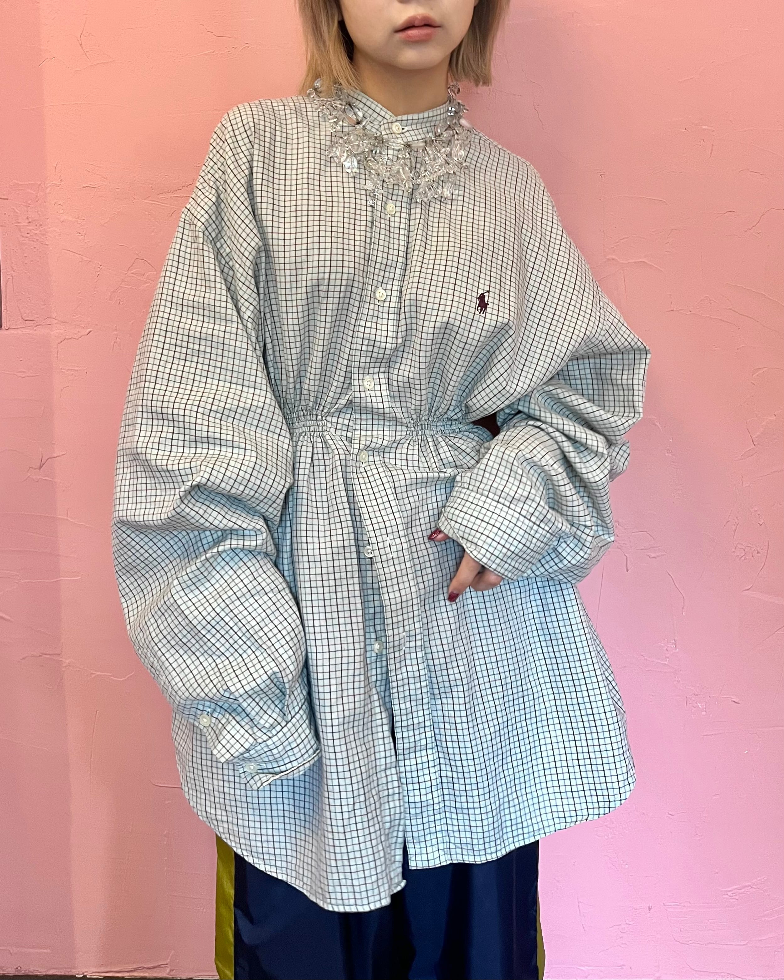 aanew stand collar shirring shirt
