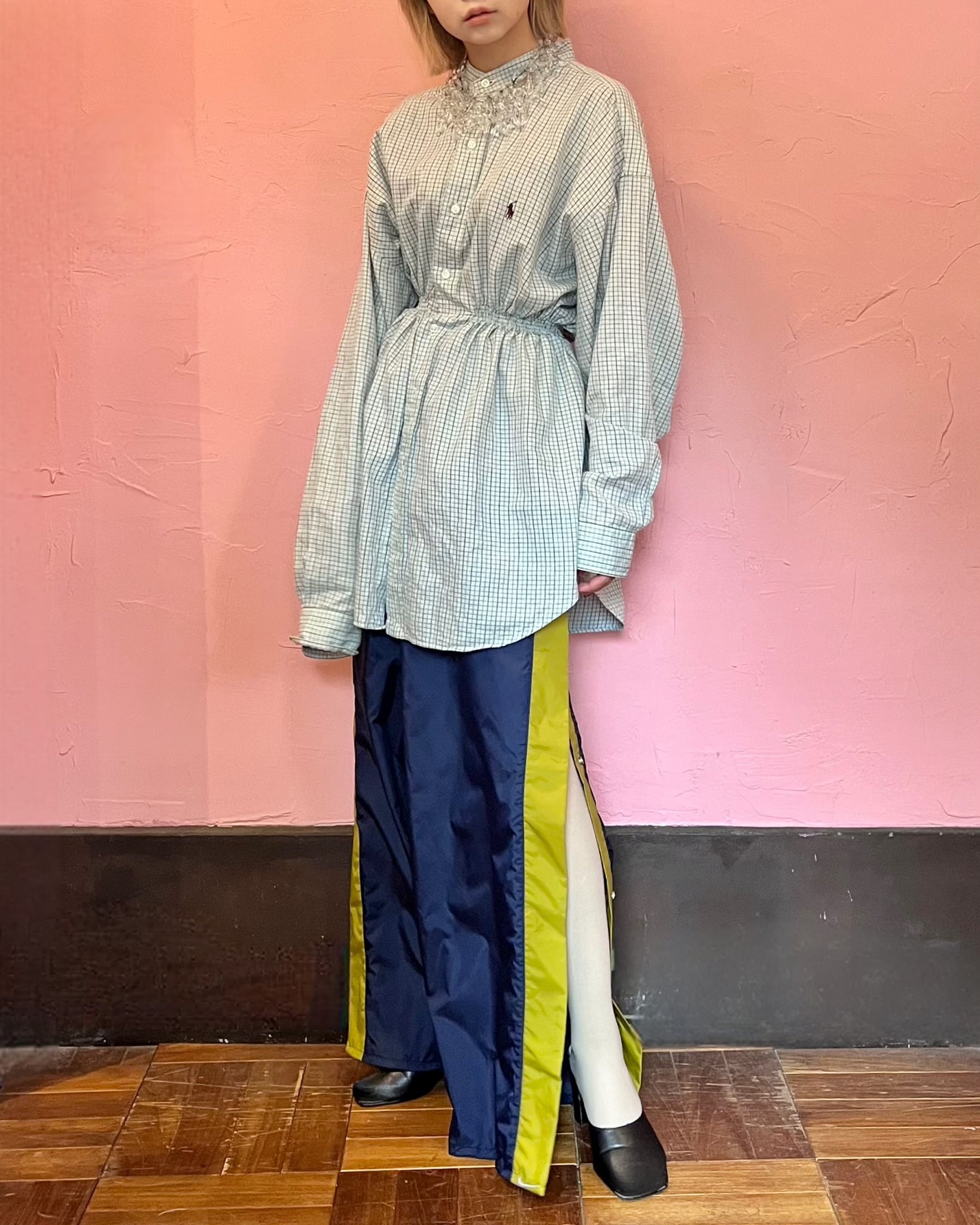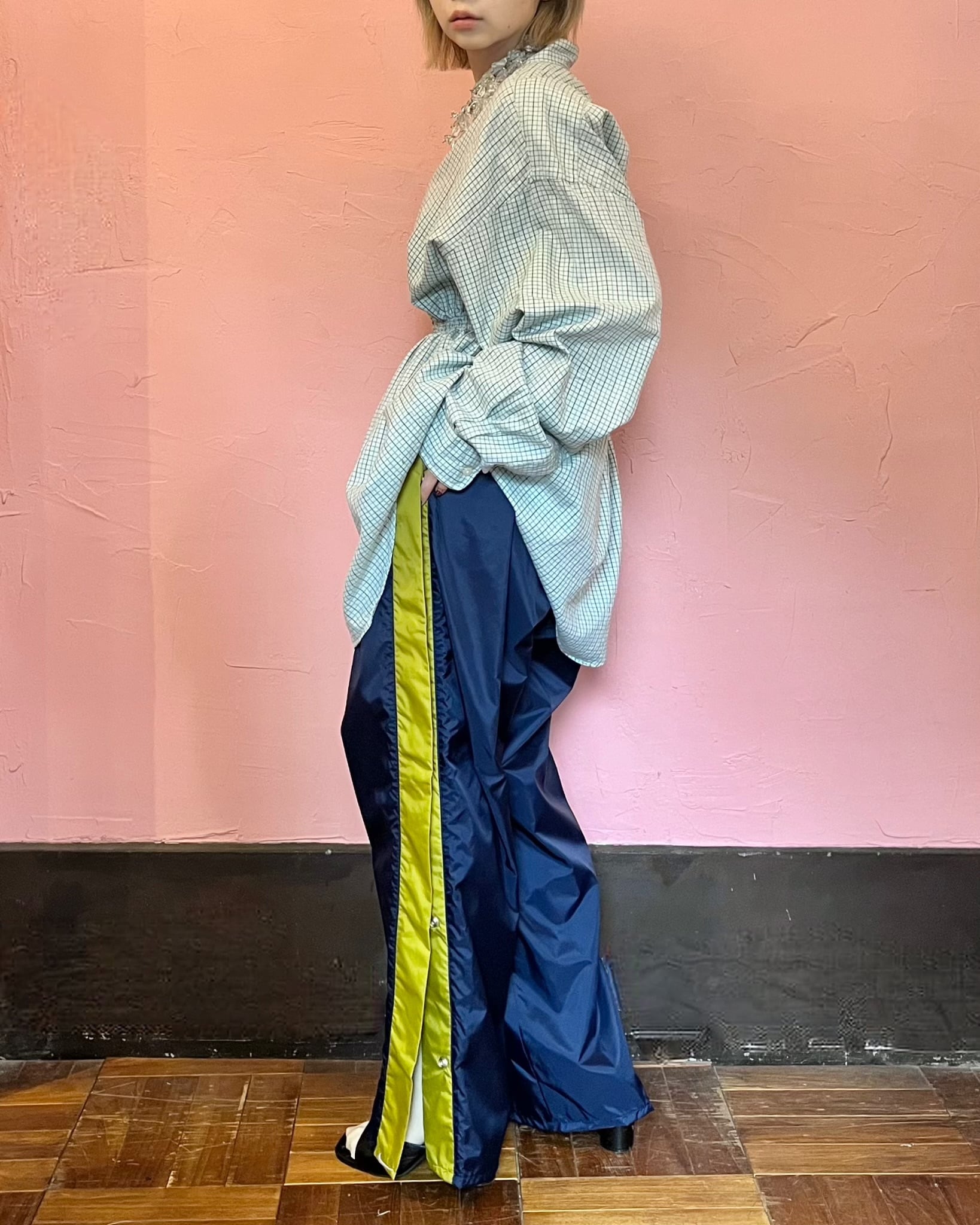 サイドのスナップは、全て開閉可能な個性的なデザイン。お好きな位置までスリットにしたりアレンジを楽しめるボトムです。